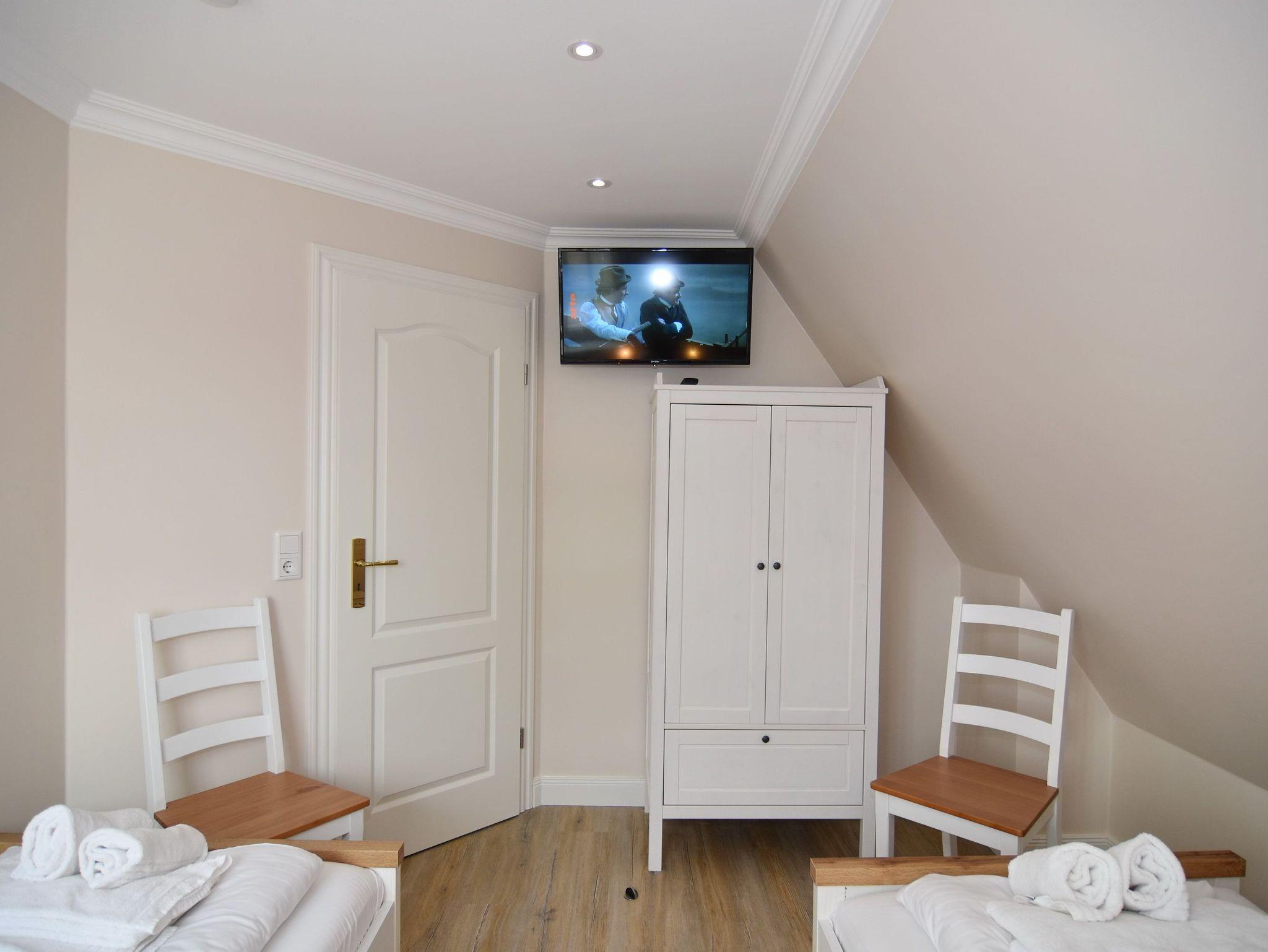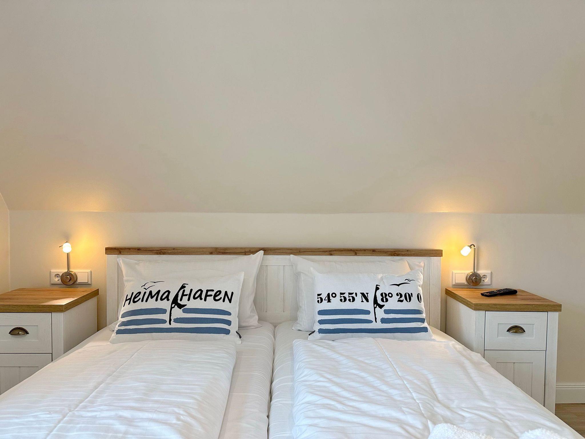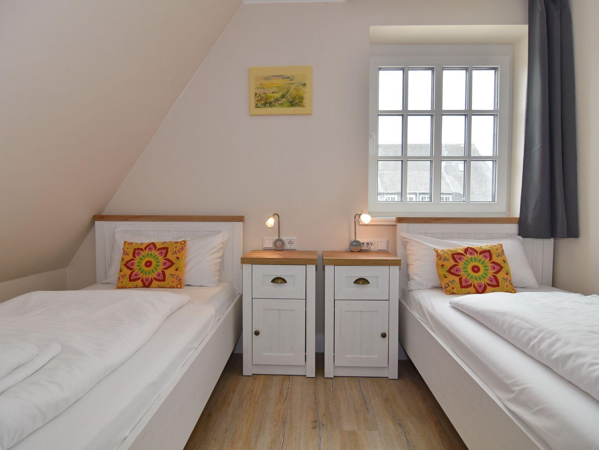 Großzügige Doppelhaushälfte in zentaler und strandnaher Lage Westerlands. EG: Wohnraum mit Essplatz, Sitzecke, TV, Kamin, offene Küche mit Kühlschrank, Backofen, Mikrowelle, Ceranfeld, Geschirrspüler, Kühlschrank und Gefrierschrank. Garten mit Südterrasse und Terrassenmöbeln. Gäste-WC, Heizungs-/Abstellraum mit Kinderreisebett (120x60, ohne Matratze und Bettzeug) und Kinderhochstuhl. OG: 2 Schlafzimmer mit Doppelbetten (180x200, 2 Matratzen), 1 Schlafzimmer mit 2 Einzelbetten (je 90x200). Alle Schlafzimmer mit Kleiderschrank und TV. Ein Bad ensuite mit großer bodentiefer Dusche, Waschmaschine und Trockner, ein Bad mit Wanne mit Duschvorrichtung, das vom Flur aus begehbar ist. Parkmöglichkeiten am Haus für maximal 2 Pkws. Fahrräder können derzeitig im Garten, später auch in der Garage abgestellt werden. Tierhaltung ist gestattet und muss kostenpflichtig angemeldet werden. Der Garten ist komplett eingezäunt. Rauchen im Objekt ist nicht gestattet.