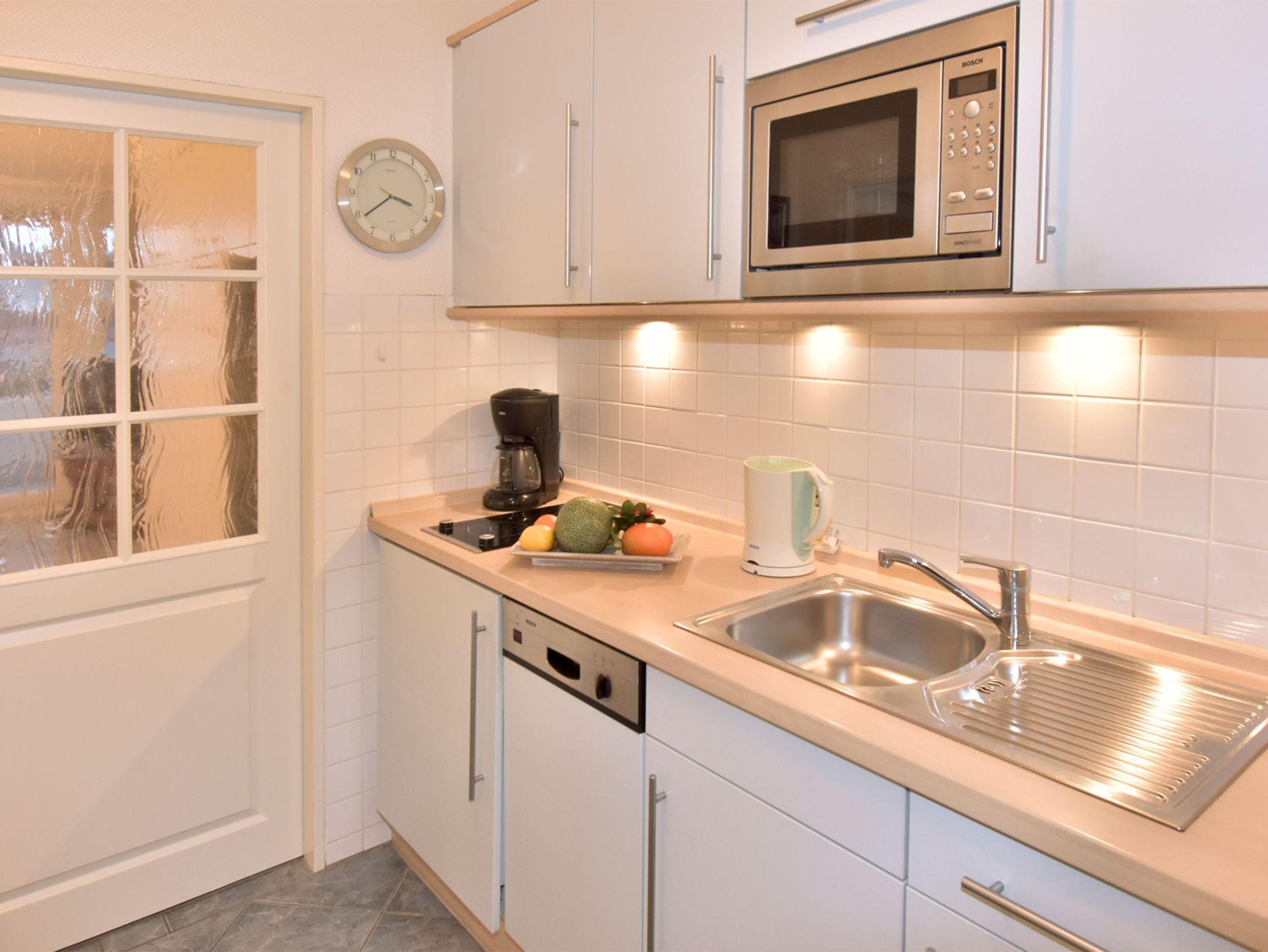 Die Küchenzeile hat einen Geschirrspüler, eine Mikrowelle (Grillfunktion), ein Ceranfeld mit 2 Kochfeldern und einen Kühlschrank mit 3* Gefrierfach. Kaffeemaschine, Wasserkocher und Toaster gehören zur Grundausstattung.