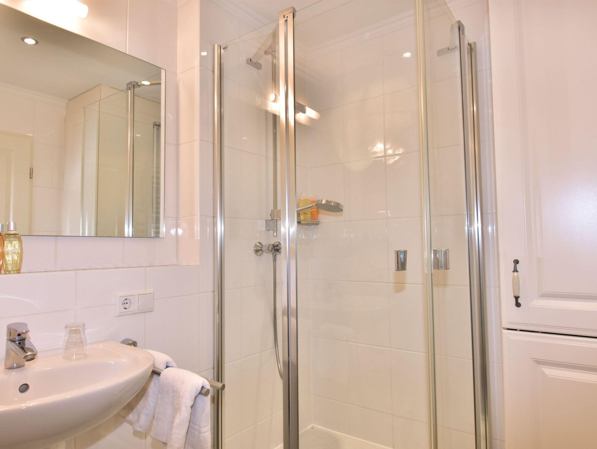 Im neuen Bad befinden sich eine Dusche, ein WC und ein Waschtisch.