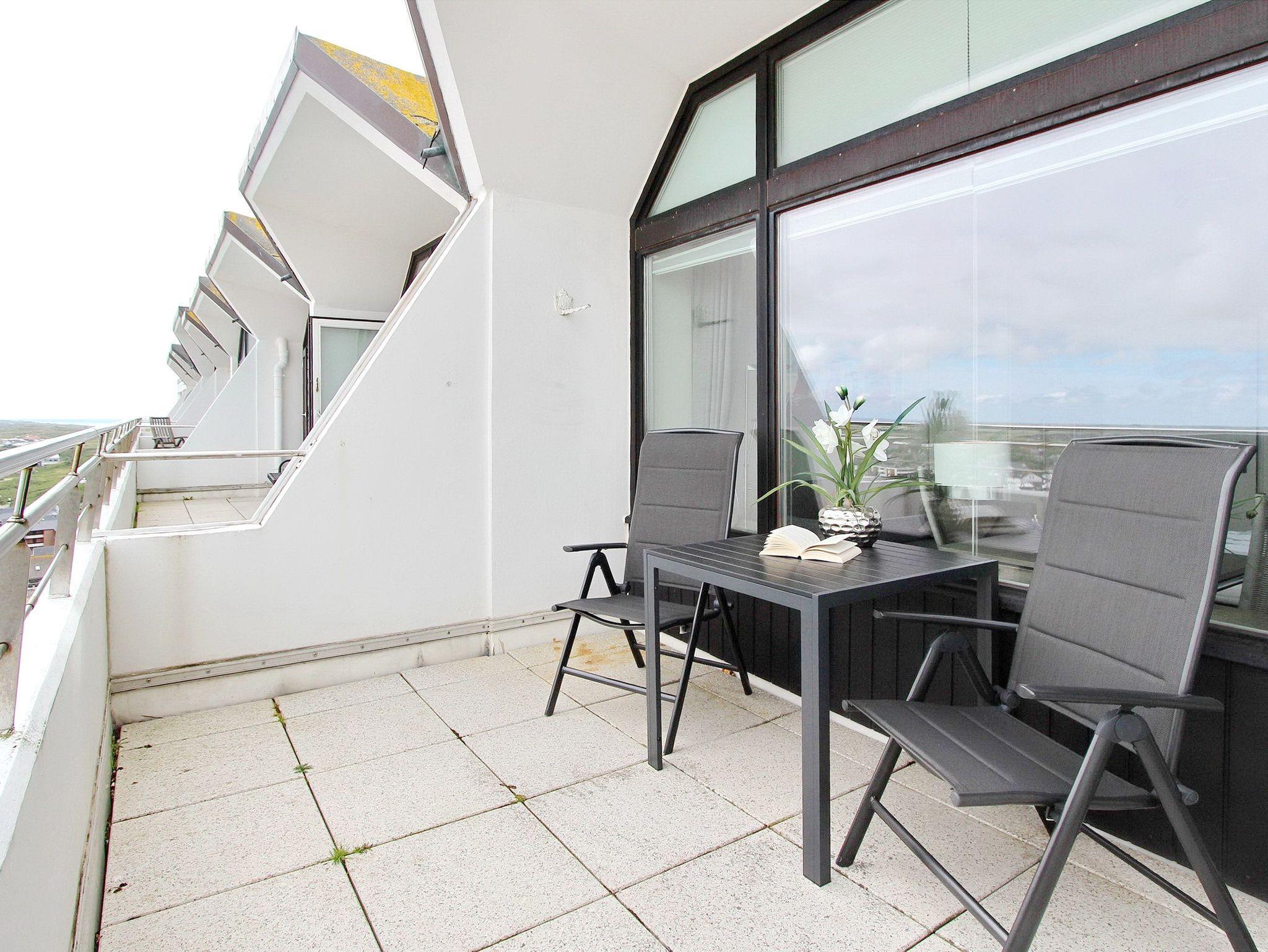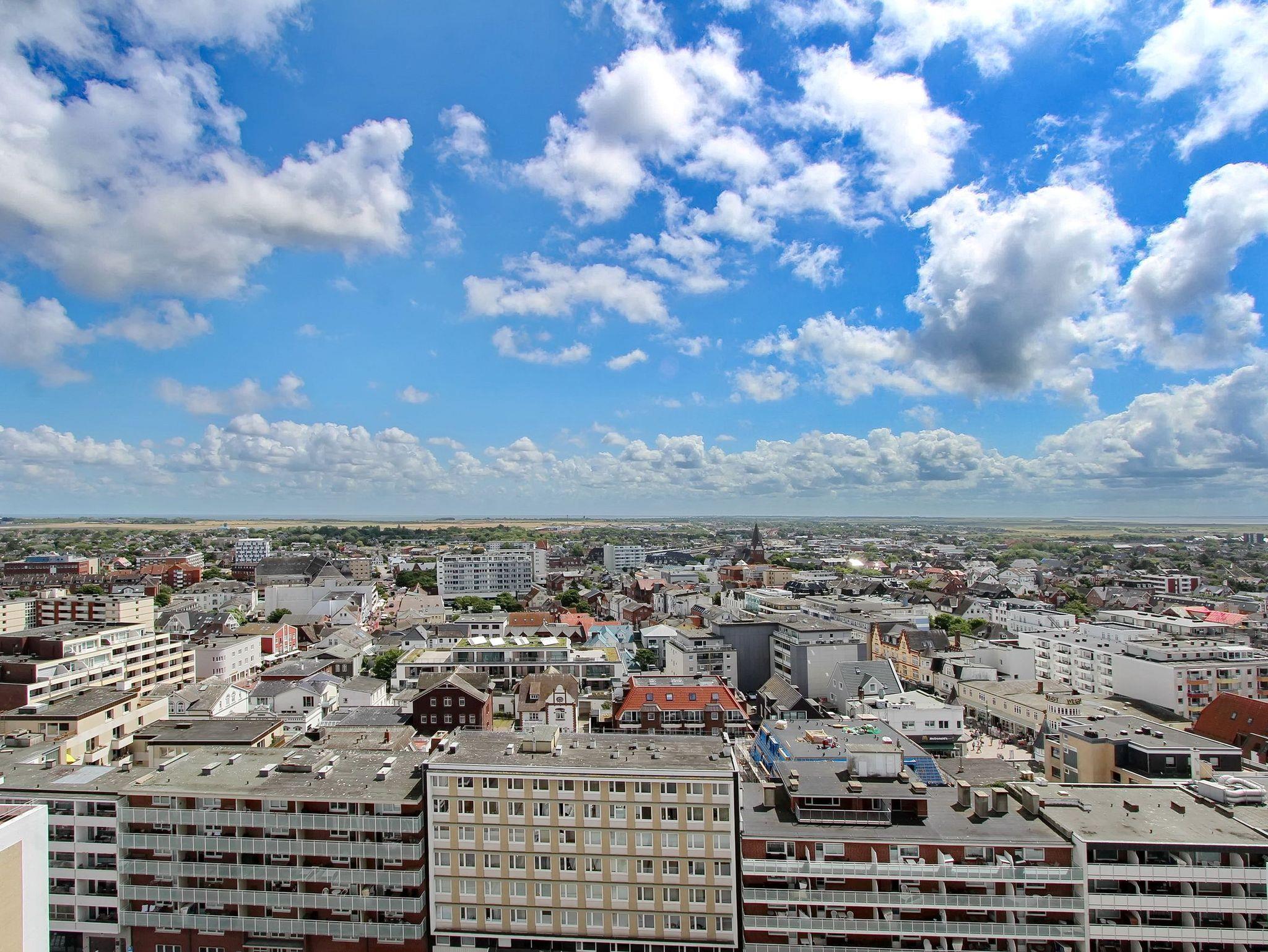 Wunderbare Penthousewohnung in der 14. Etage im Haus Metropol mit herrlichem Weitblick über die Insel und die Stadt. Der hell und freundlich, im Frühjahr 2020 neu eingerichtete Wohn-/Schlafraum, verfügt über ein feststehendes Boxspringbett für allerhöchsten Schlafkomfort. Auf der Ostdachterrasse gibt es eine gemütliche Rattanlounge, die bei Sonnenschein zum verweilen einlädt. Sollte es draußen zu frisch sein, gibt es drinnen am Fenster einen Essplatz mit 2 Stühlen. Im Wohnraum und Flur wurde Designfussboden verlegt. Das Badezimmer hat eine Dusche. Im Flur gibt es eine Küchenzeile, mit 2 Platten Cerankochfeld, Geschirrspüler und Mikrowelle, in der sie kleine Mahlzeiten zubereiten können. Eine zusätzliche Nespresso-Kapselmaschine ist vorhanden und selbst einen Eierkocher gibt es. Stilvolldecken Sie den Tisch mit Geschirr von Thomas Trend. Eine Bluetoothanlage der Marke Sony mit Radio und CD Player, ein großer Flachbildfernseher von Samsung und ein DVD Player gehören zur technischen Ausstattung. Eine Smartphone Ladestation ist ebenfalls vorhanden. Der freie WLAN Hotspot (WEG Haus Metropol - Passwortfrei - ohne Gewähr) steht ihnen kostenfrei zur Verfügung. Diese Nichtraucherwohnung ist nur über eine Treppe erreichbar, da der Aufzug in der 13. Etage endet. Wohnungsgröße: ca. 30 m².