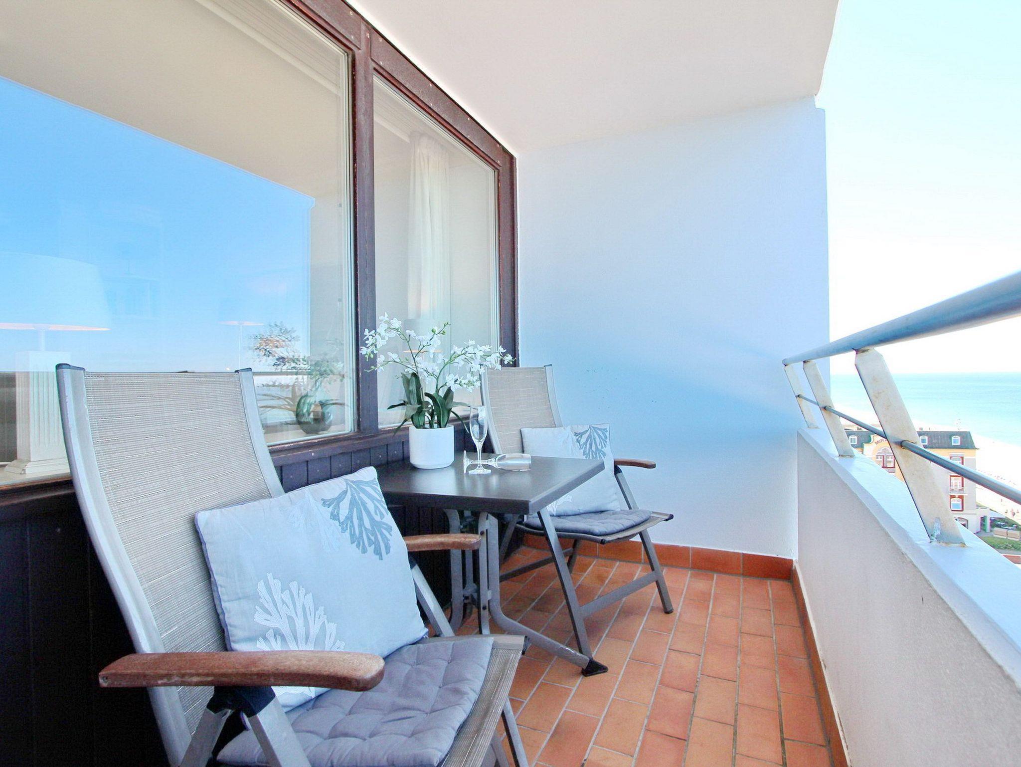 Die traumhafte Lage dieser Einzimmerwohnung in der 9. Etage im Haus Metropol wird sie begeistern. Sie haben einen herrlichen Blick über den Strand und die Nordsee. Der kombinierte Wohn-/Schlafraum mit vorgelagertem Westbalkon (Balkonmöbel und Auflagen sind vorhanden) verfügt über Fliesenboden, ein Doppelschrankbett, einen Essplatz mit 2 Stühlen und 2 gemütlichen Ledersesseln. Das Badezimmer hat eine Dusche, einen beheizten Handtuchtrockner und einen Kosmetikspiegel. In der Einbauküche mit Ceranfeld, Spülmaschine und Mikrowelle im Flur können Sie sich selbst verpflegen. Zur technischen Ausstattung gehört: ein Flachbildfernseher, ein CD Player und ein Radio. Ein freies WLAN Netzwerk (WEG Haus Metropol - Passwortfrei - ohne Gewähr) steht ihnen kostenfrei zur Verfügung. Wohnungsgröße dieser Nichtraucherwohnung: ca. 34 m².