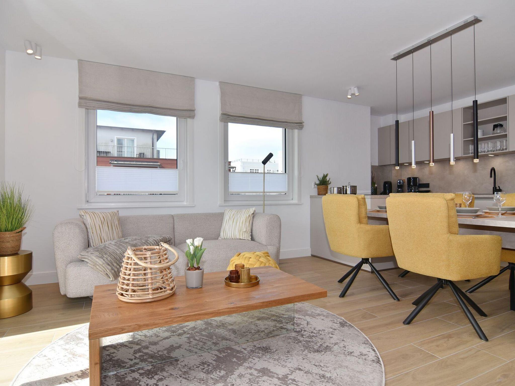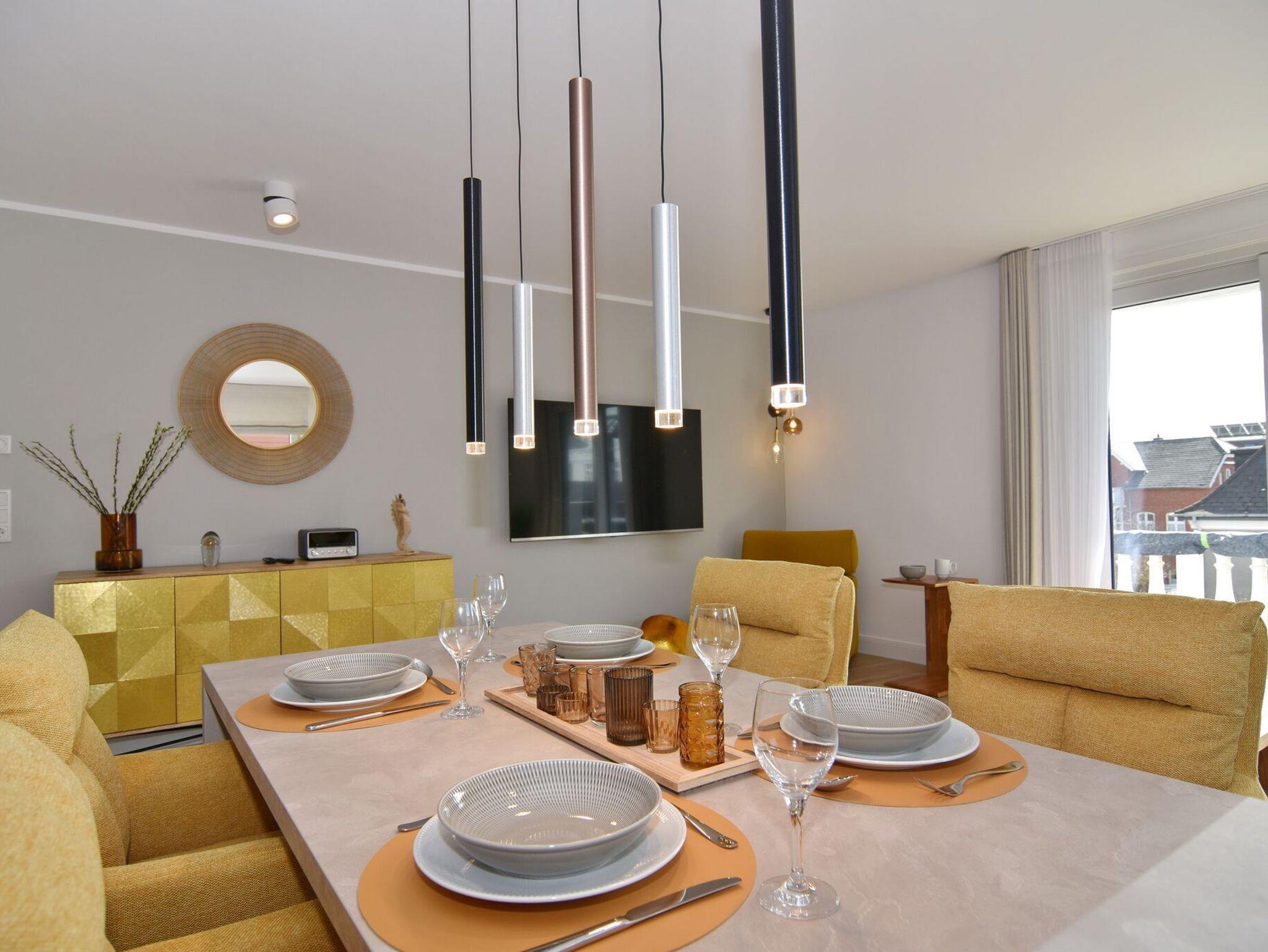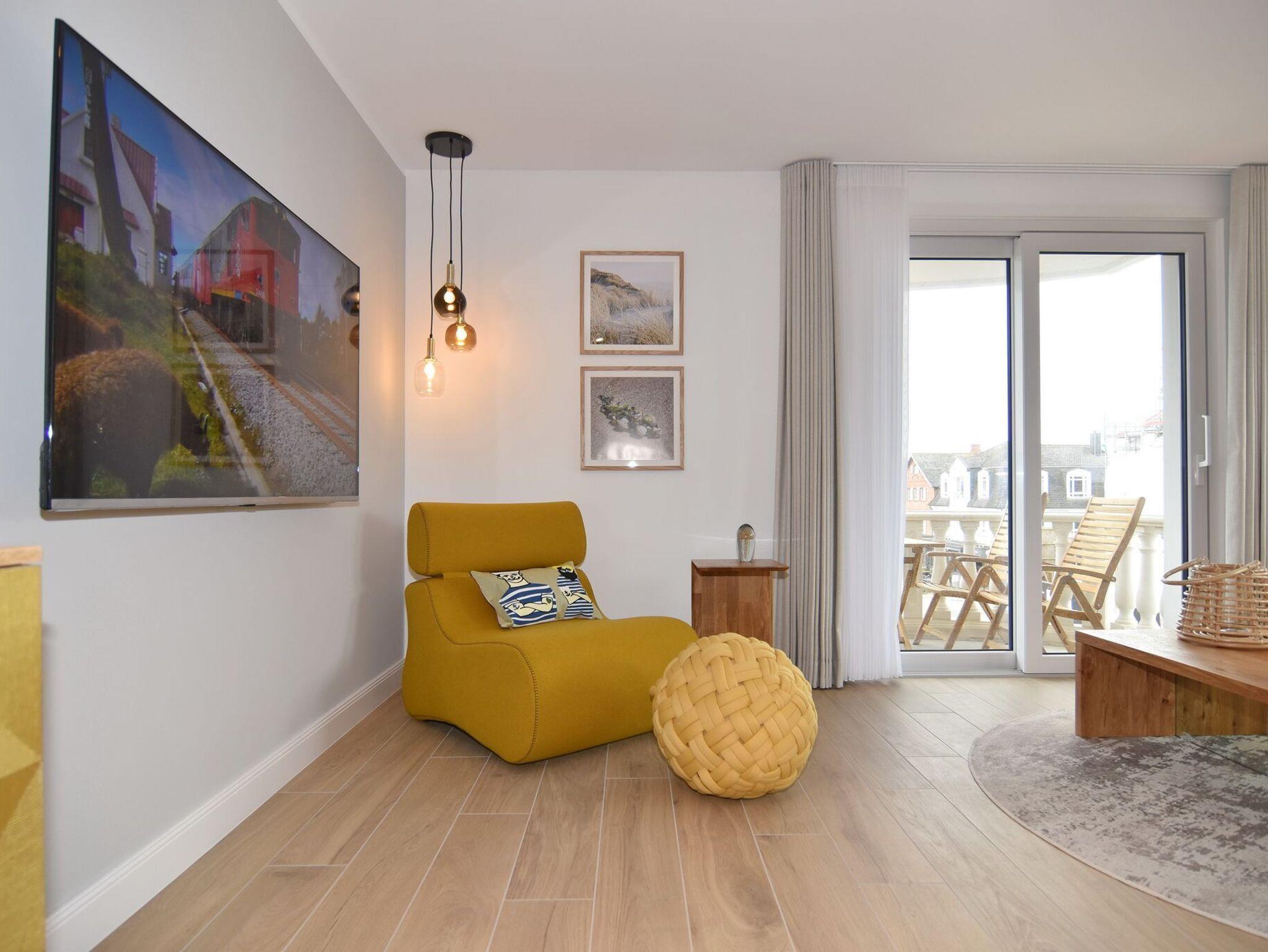 Die hochwertige 3-Zimmer-Wohnung im 2. OG mit ca. 81 qm ist für maximal 4 Personen. Vom geräumigen Flur mit Garderobe gelangen Sie in das Wohnzimmer mit offener Küche und möblierten Südbalkon. Die hochwertige Küche bietet neben Bora Induktionsherd auch Geschirrspüler, Tiefkühlschrank und Backofen mit integrierter Mikrowelle. Beide Schlafräume bieten mit Boxspringbetten (180x200 und 200x200) der Marke FBF hochwertigen Schlafkomfort und verfügen über Einbauschrank und TV (1 Kinderbett ist in beiden Schlafzimmern zubuchbar). Die Wohnung verfügt über 2 moderne Duschbäder mit Haar- und Handtuchtrockner. Die Wohnung ist mit großformatigen Fliesen ausgelegt und verfügt über Fußbodenheizung. Lediglich die Schlafräume sind mit Teppichware versehen. Internet (ohne Gewähr) und Smart-TV sind vorhanden.