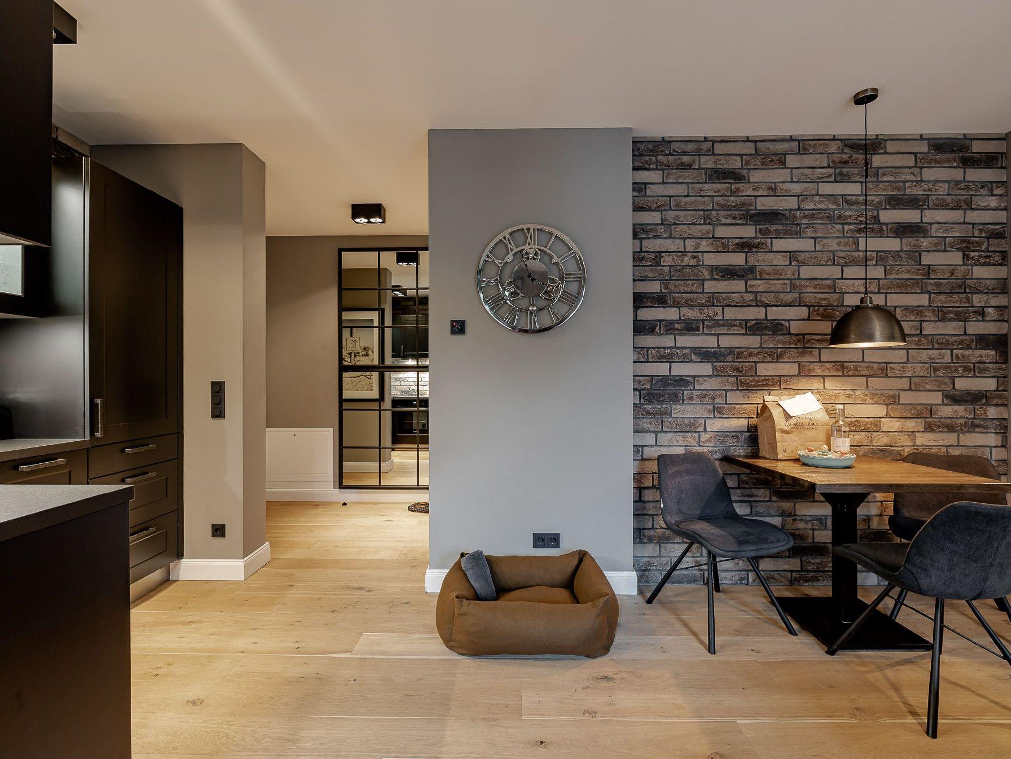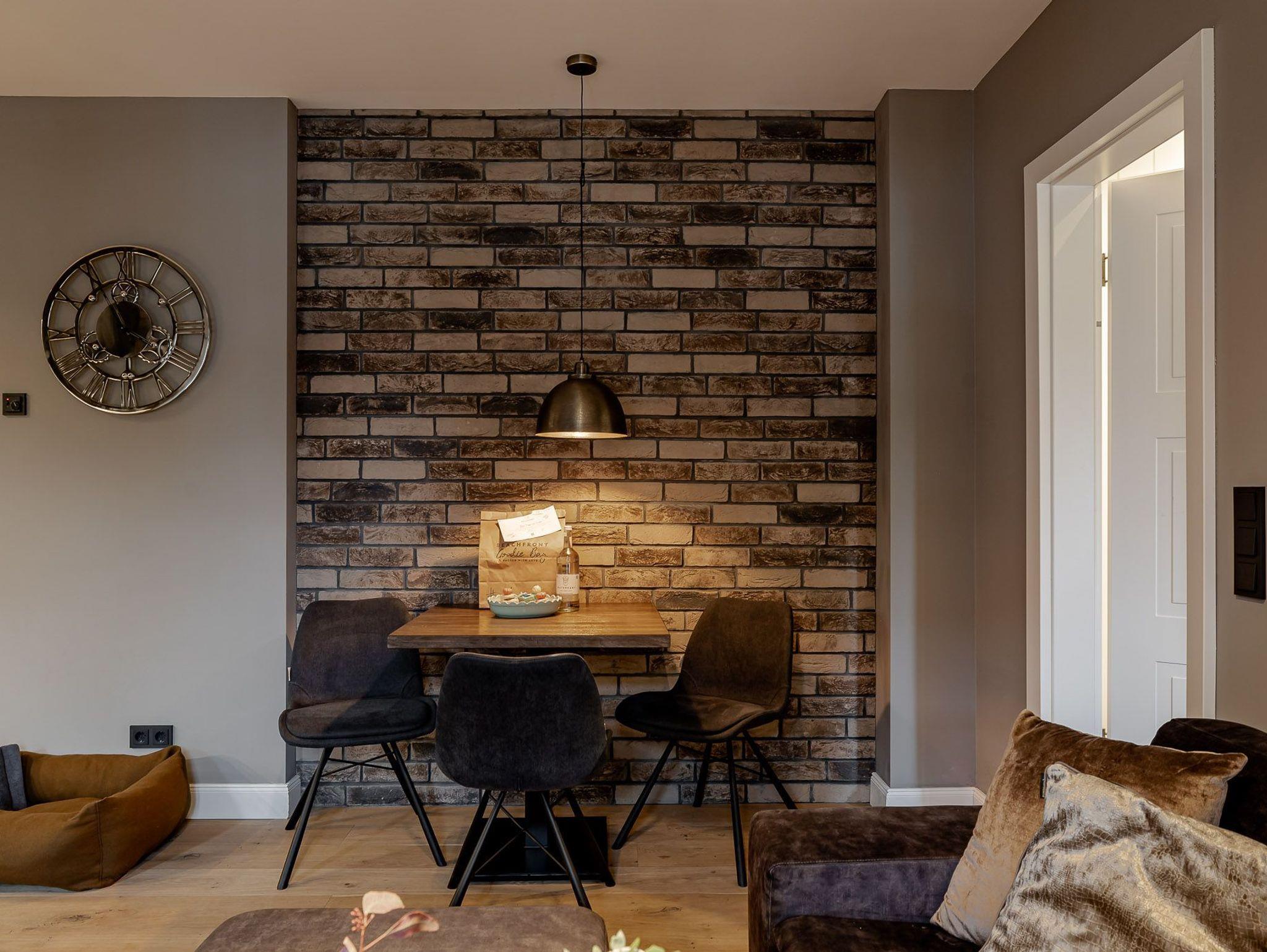 Das Apartment bietet Ihnen eine absolute Wohlfühlatmosphäre: hohe Decken, lichtdurchflutete Räume und eine stylische, moderne Ausstattung machen Ihren Aufenthalt zu etwas ganz Besonderem. Betreten Sie die Ferienwohnung, befinden Sie sich in dem großen und geräumigen Wohn- und Esszimmer inklusive eines Schlafsofas.