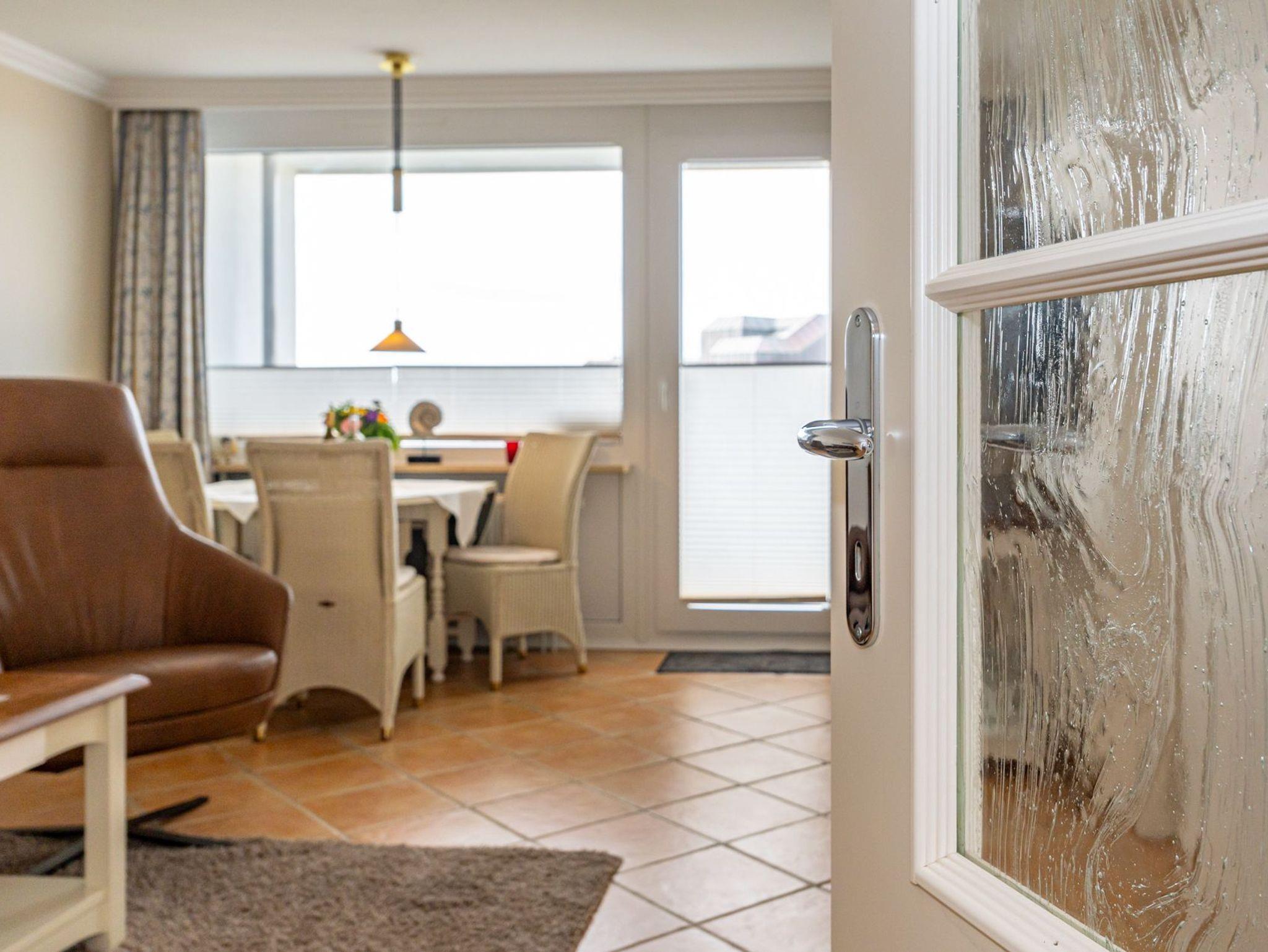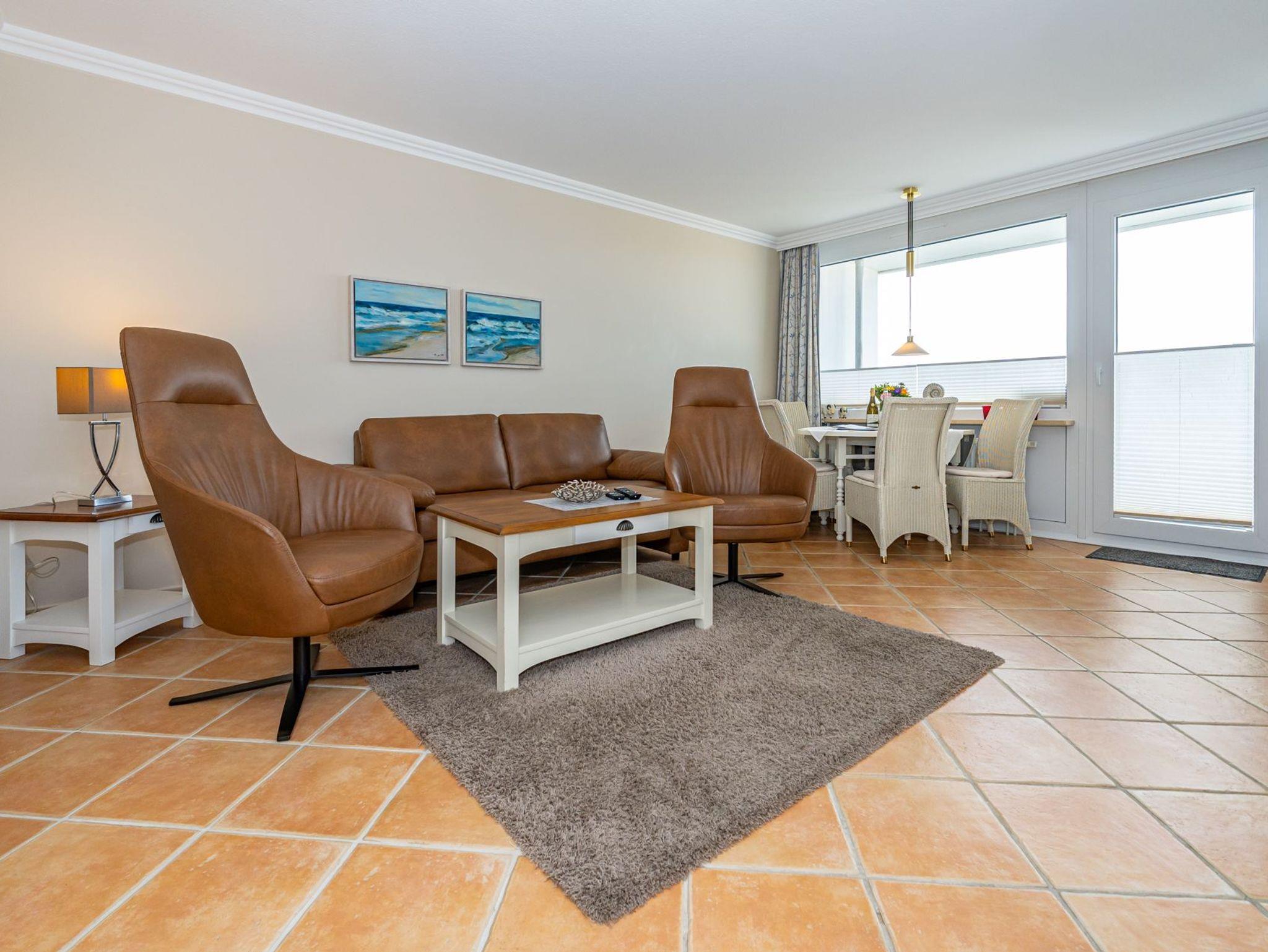 Gemütliche, großzügige 2,5-Zimmer-Nichtraucher-Ferienwohnung (ca. 60 qm) in der 3. Etage zur Seeseite mit zwei Westloggien (Nachmittagssonne, mit Balkonmöbeln und Auflagen) für max. 4 Personen.