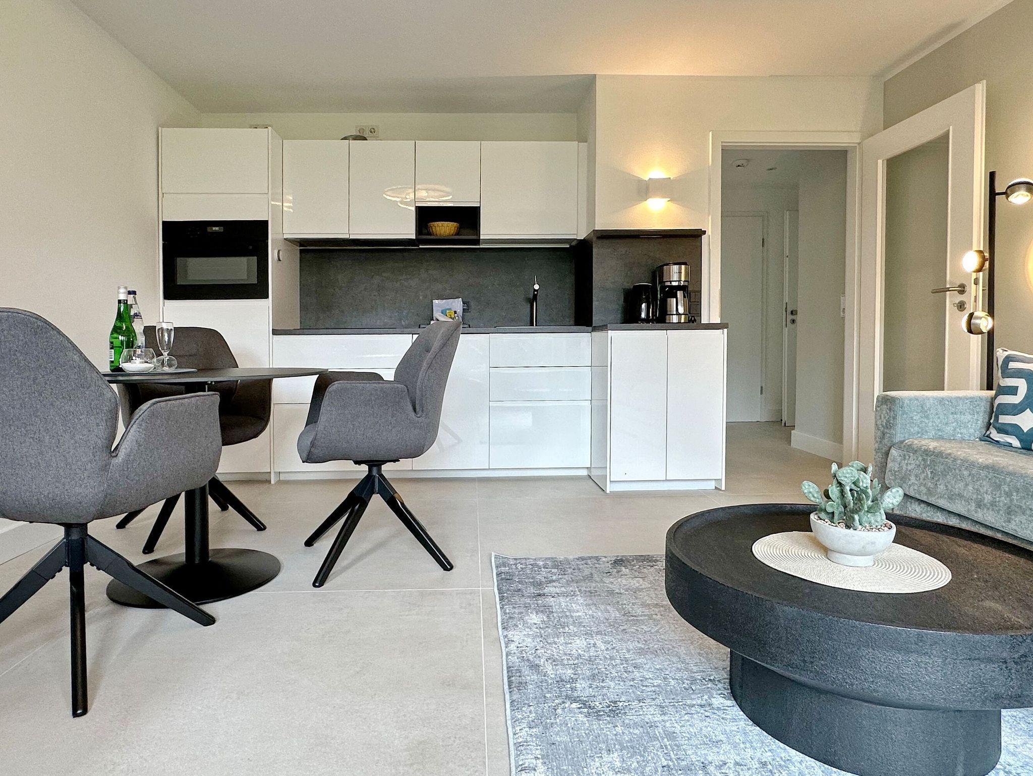 Geschmackvoll eingerichtete 2-Zimmer-Ferienwohnung im Haus Olympia 2 mit Südterrasse. Nichtraucherwohnung. Ca. 43m² im Erdgeschoß. Wohnzimmer mit Küchenzeile im mit Induktionsherd, Geschirrspüler und Mikrowelle mit Grillfunktion, Essplatz, Sitzgruppe, Flat-TV mit Radio, W-LAN ohne Gewähr, Schlafzimmer mit Doppelbett, Duschbad/WC, Flur. Unter Haus 4 befindet sich das Schwimmbad mit Finnischer Sauna. Unter Haus 2 befindet sich ein separater Wellnessbereich mit Dampfsauna, Finnischer Sauna und Ruhebereich. Eine Waschküche mit Gemeinschaftswaschmaschine/Trockner ist vorhanden. Offenes W-LAN-Netzwerk steht zur Verfügung (ohne Gewähr). Bettwäsche und Handtücher sind zur Anreise aufgezogen. Ein Garagenstellplatz kann kostenpflichtig gebucht werden!