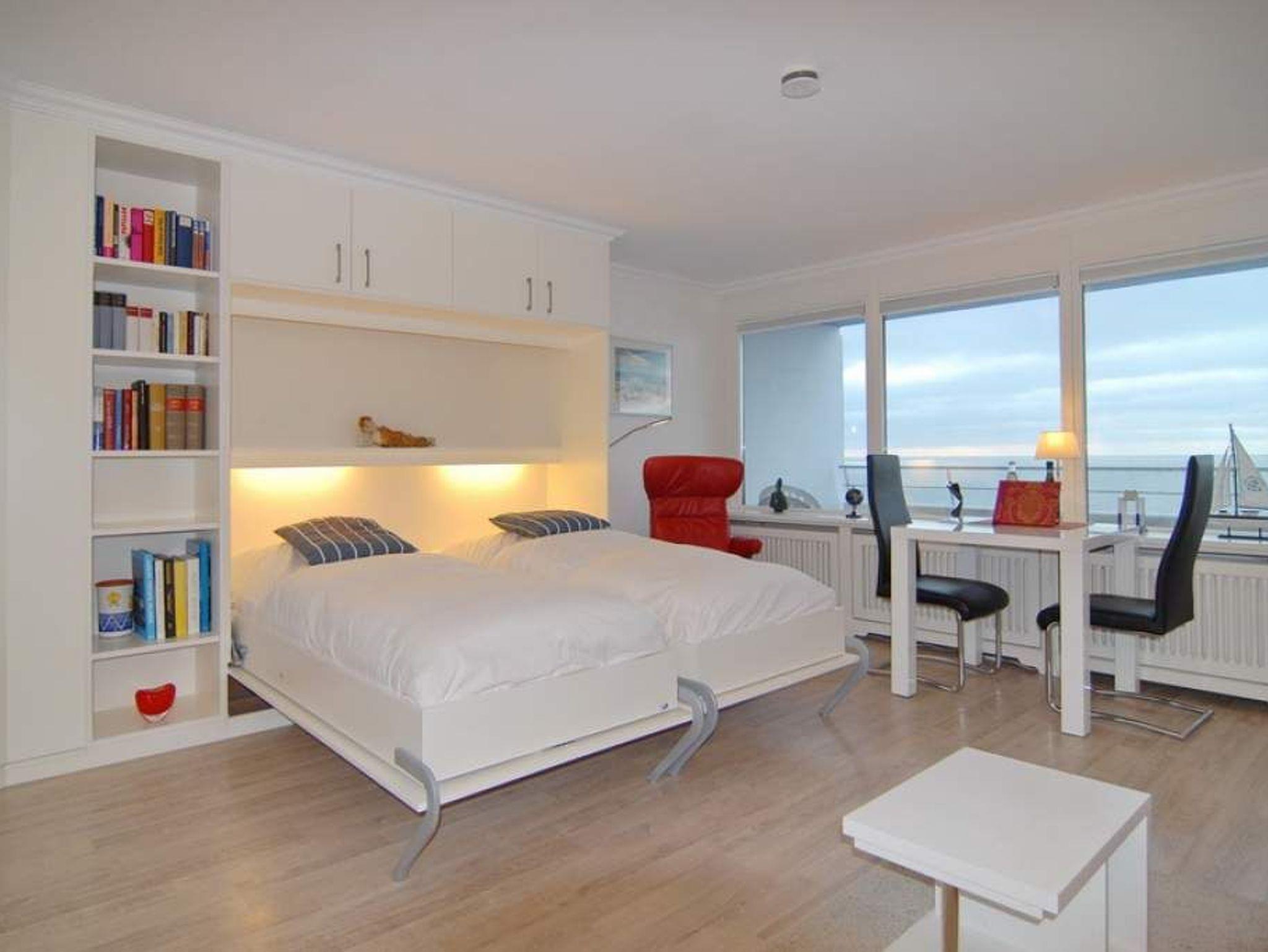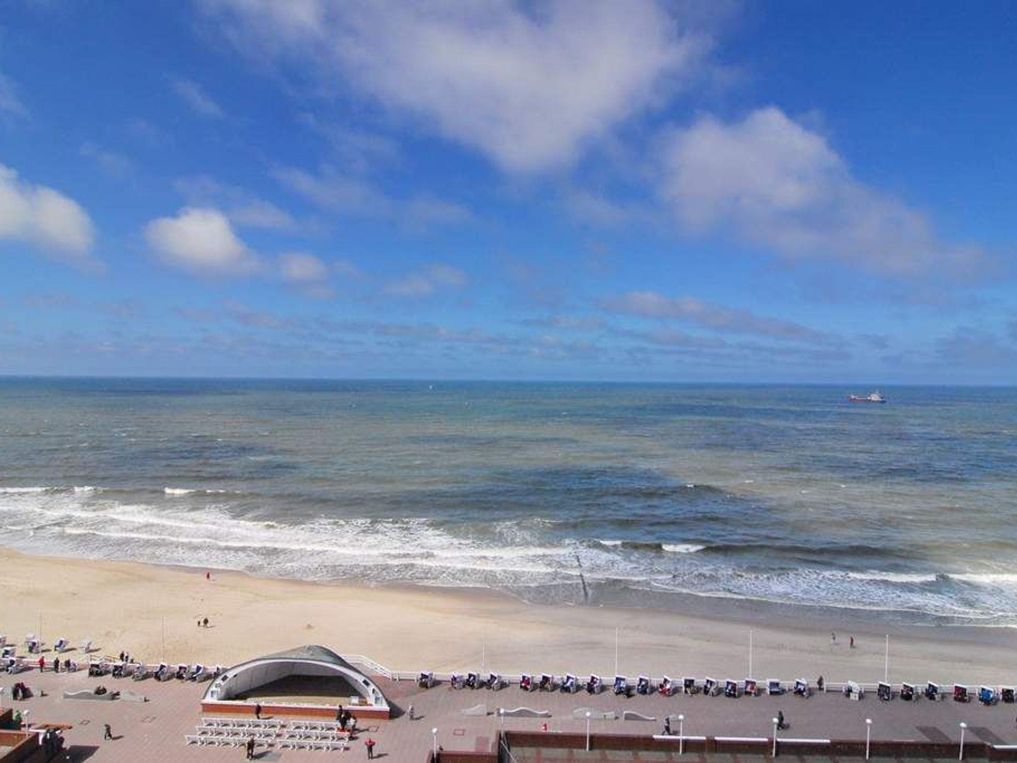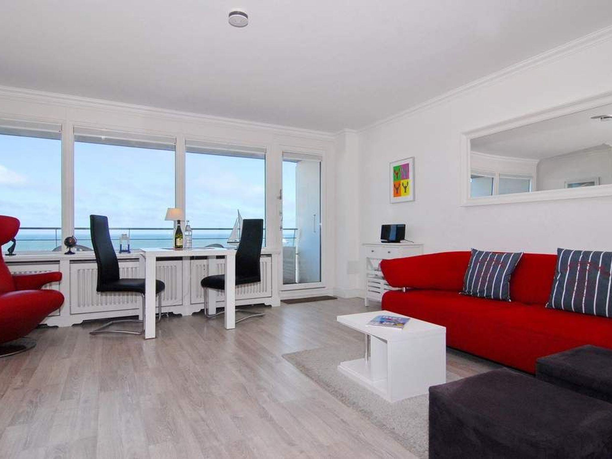 Exklusive 1-Zimmer-Ferienwohnung, 9.OG im Haus Metropol, Nichtraucherwohnung, ca. 43 m² mit vollem Meeresblick, Wohn-/Schlafraum mit Einzelschrankbetten, Essplatz am Fenster mit Blick auf das Meer, Couch mit Beistelltisch und Relax-Sessel, Flat-TV, Stereo-Anlage mit Radio-, CD-, iPod-Funktion, WLAN (ohne Gewähr), Westbalkon mit Balkonmöbeln, separate Küche mit Geschirrspüler und Mikrowelle / Backofen, Duschbad/WC. Das Appartement ist mit Laminat ausgelegt. Tierhaltung ist nicht gestattet. Bettwäsche und Handtücher sind zur Anreise aufgezogen. Ein PKW-Stellplatz kann kostenpflichtig zugebucht werden.