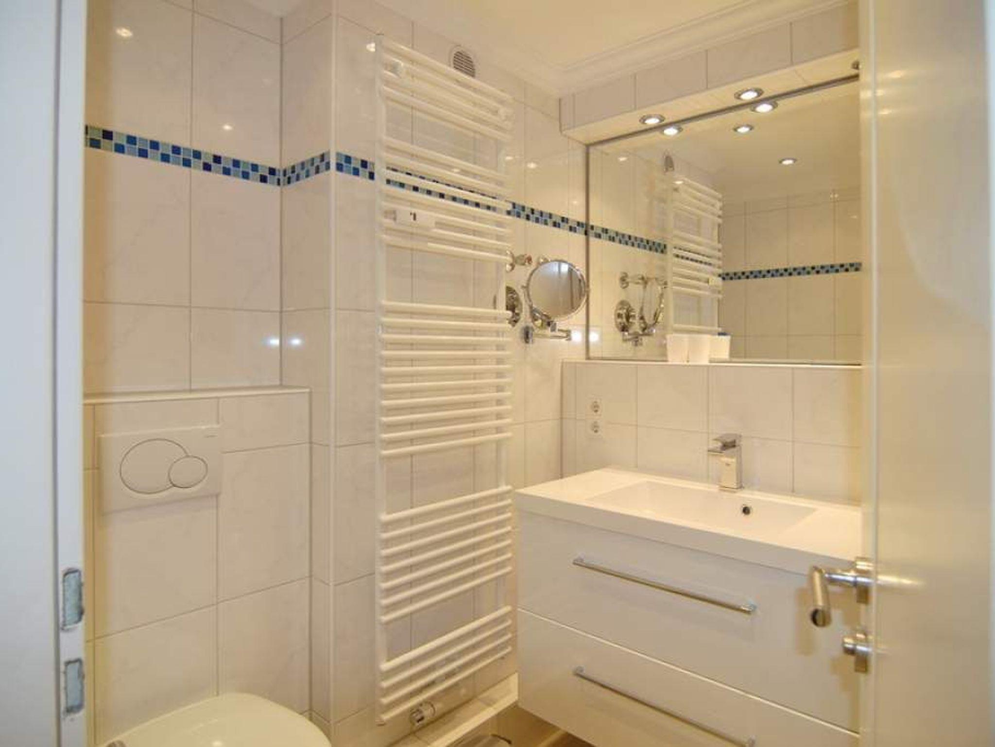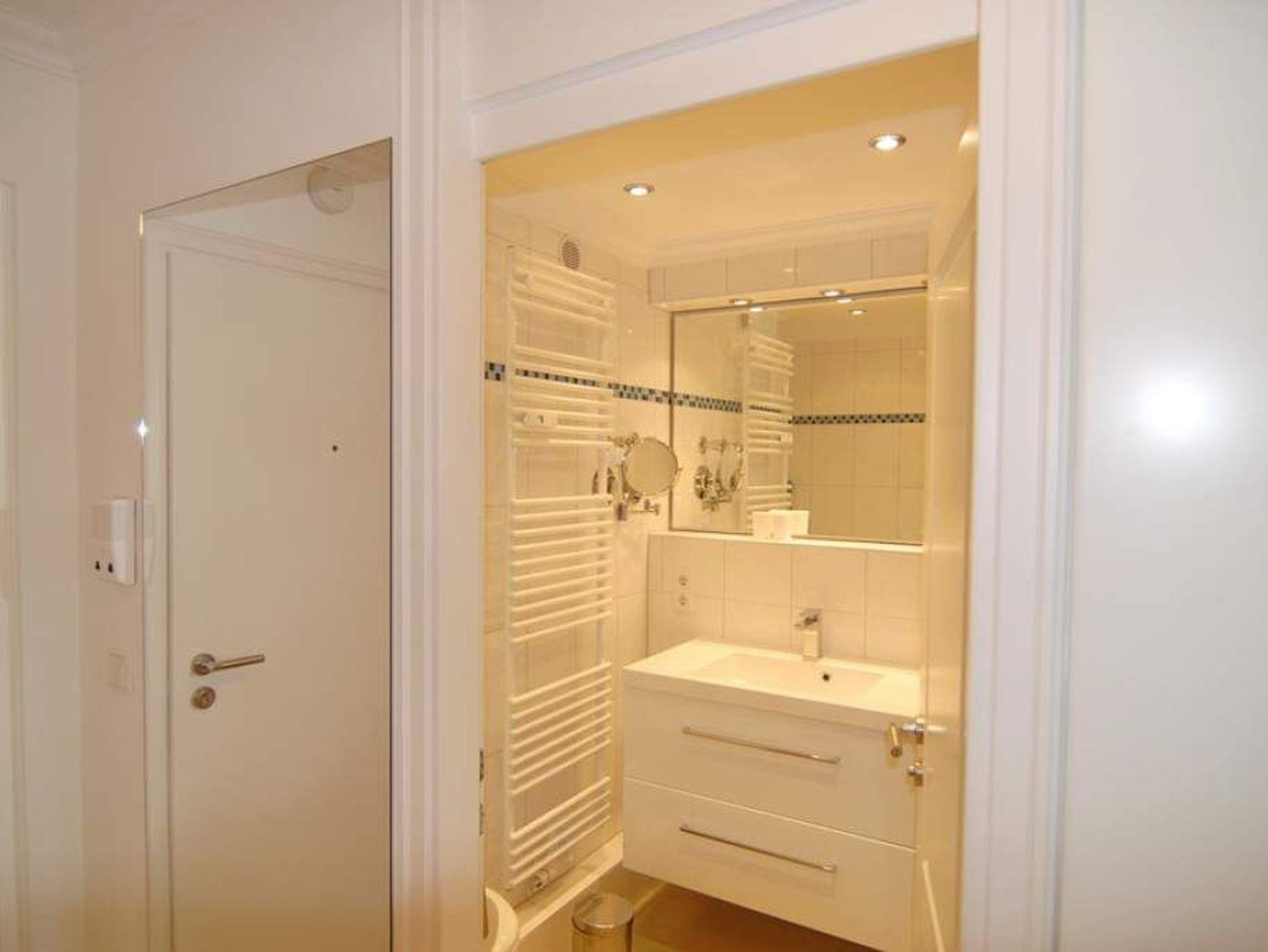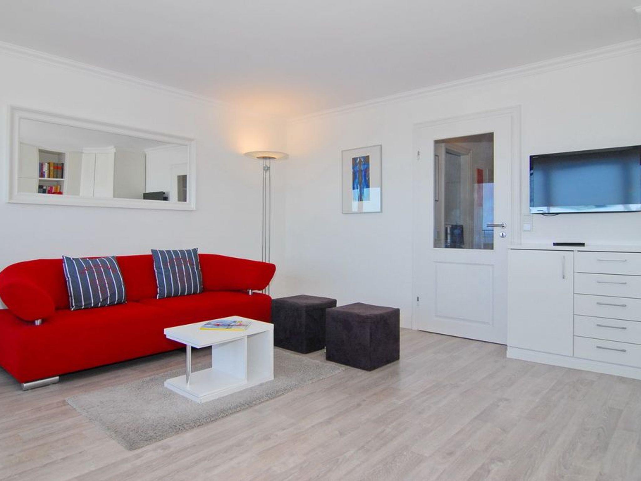 Exklusive 1-Zimmer-Ferienwohnung, 9.OG im Haus Metropol, Nichtraucherwohnung, ca. 43 m² mit vollem Meeresblick, Wohn-/Schlafraum mit Einzelschrankbetten, Essplatz am Fenster mit Blick auf das Meer, Couch mit Beistelltisch und Relax-Sessel, Flat-TV, Stereo-Anlage mit Radio-, CD-, iPod-Funktion, WLAN (ohne Gewähr), Westbalkon mit Balkonmöbeln, separate Küche mit Geschirrspüler und Mikrowelle / Backofen, Duschbad/WC. Das Appartement ist mit Laminat ausgelegt. Tierhaltung ist nicht gestattet. Bettwäsche und Handtücher sind zur Anreise aufgezogen. Ein PKW-Stellplatz kann kostenpflichtig zugebucht werden.