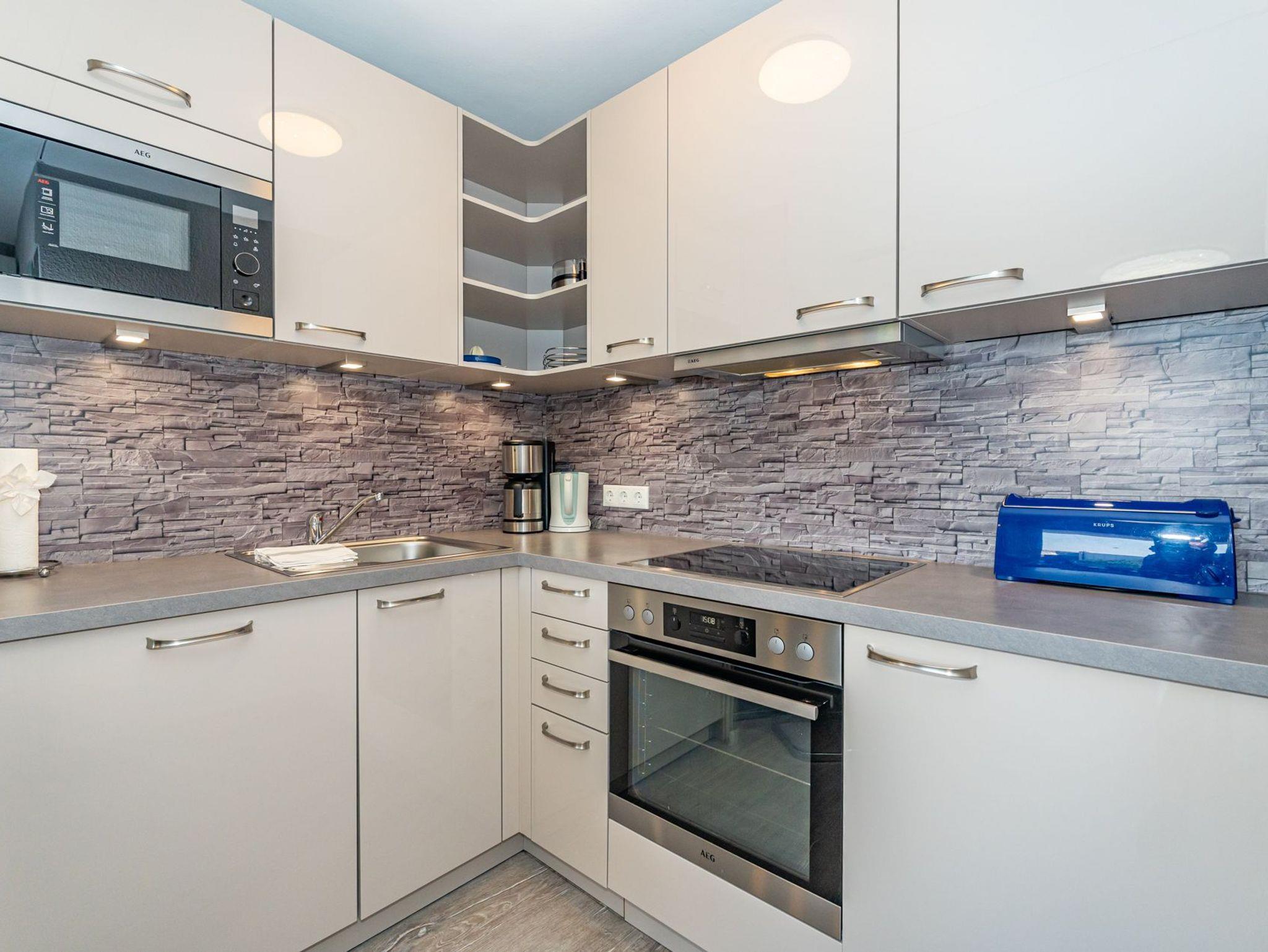 Die moderne Küche ist mit Geschirrspüler, Mikrowelle, Cerankochfeld (4 Kochfelder), Backofen, Nespresso-Maschine und einem Kühlschrank mit Gefrierfach ausgestattet und lässt keine Wünsche offen.