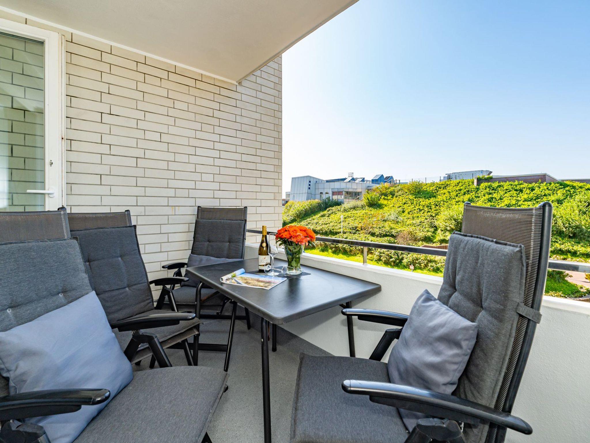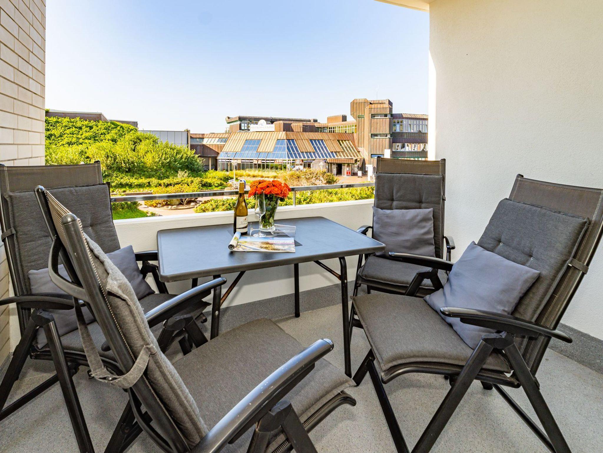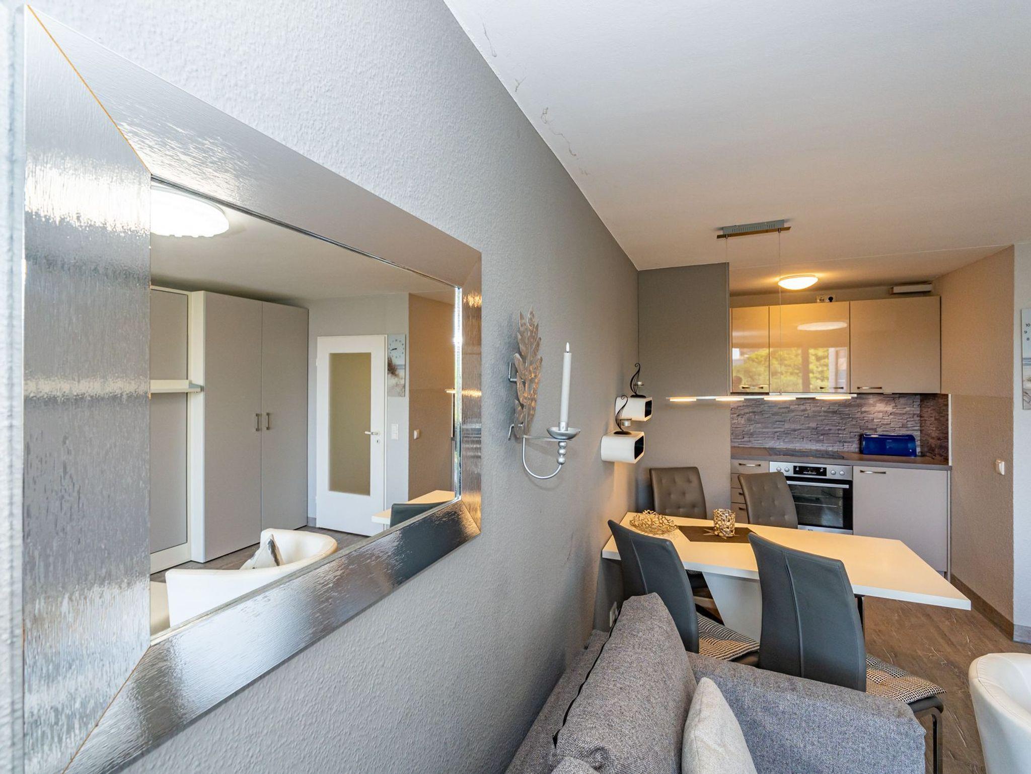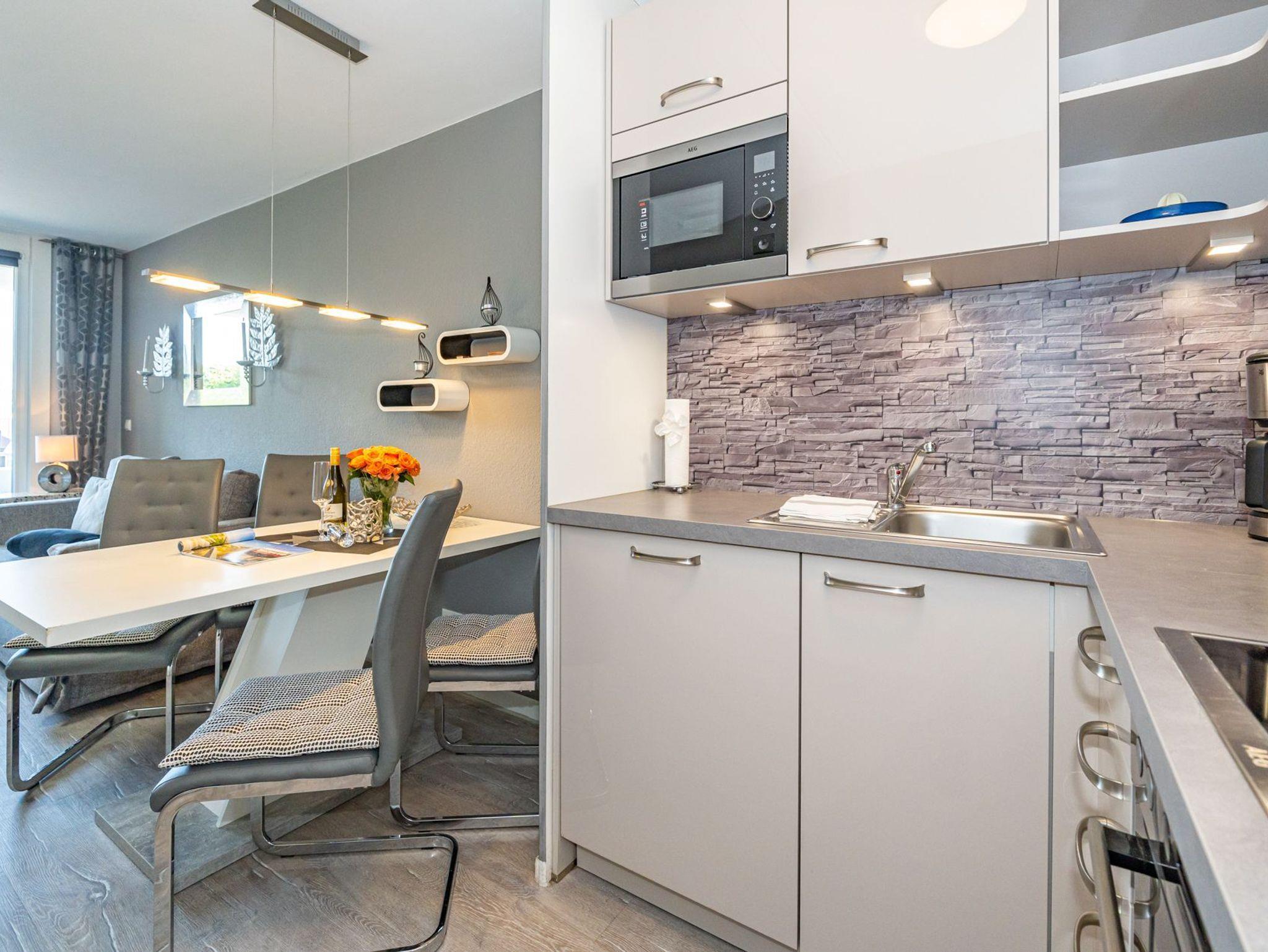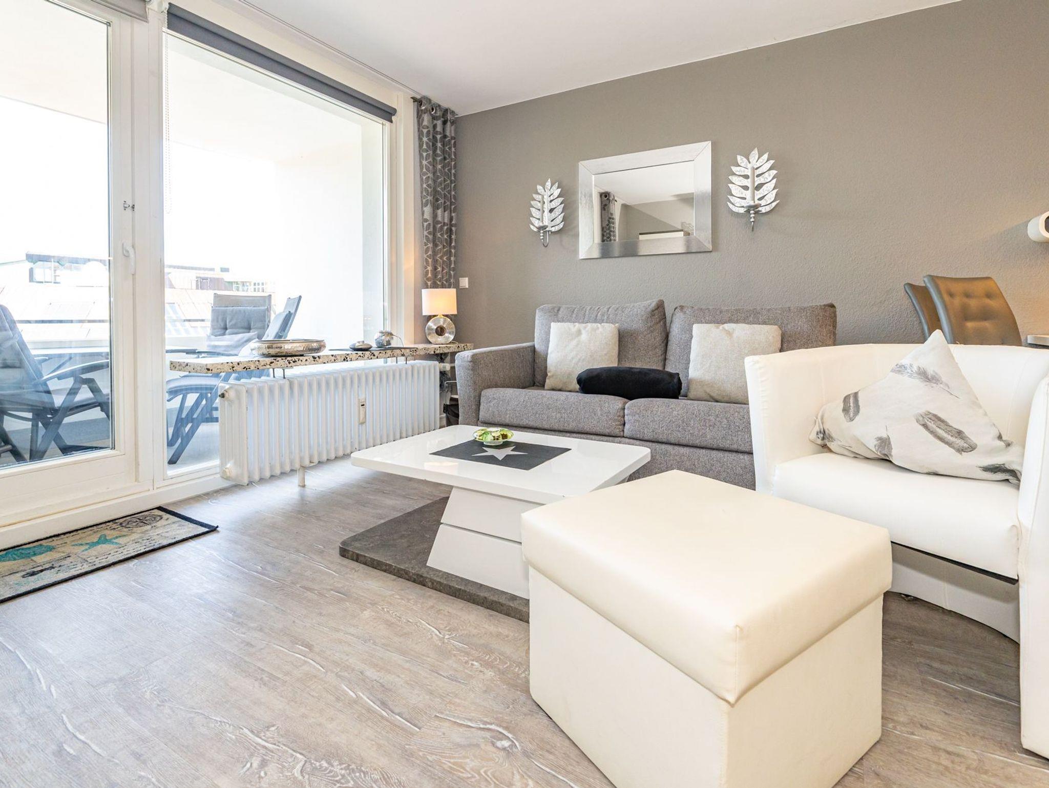 Die moderne 2-Zimmer-Nichtraucher-Ferienwohnung, hat ca. 44 m² und liegt in der 1. Etage zur Seeseite mit Westloggia (Nachmittagssonne, mit Balkonmöbeln und Auflagen) und bietet Platz bis zu 4 Personen.