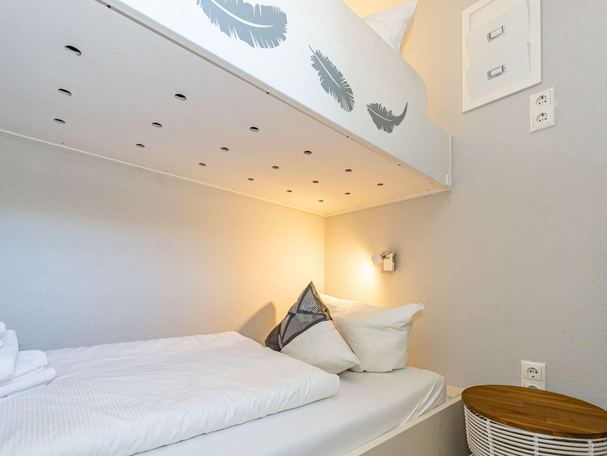 Das kleine, feine Schlafzimmer hat ein Etagenbett mit guten Einzelmatratzen, das nicht nur Kinder zum Träumen einlädt.