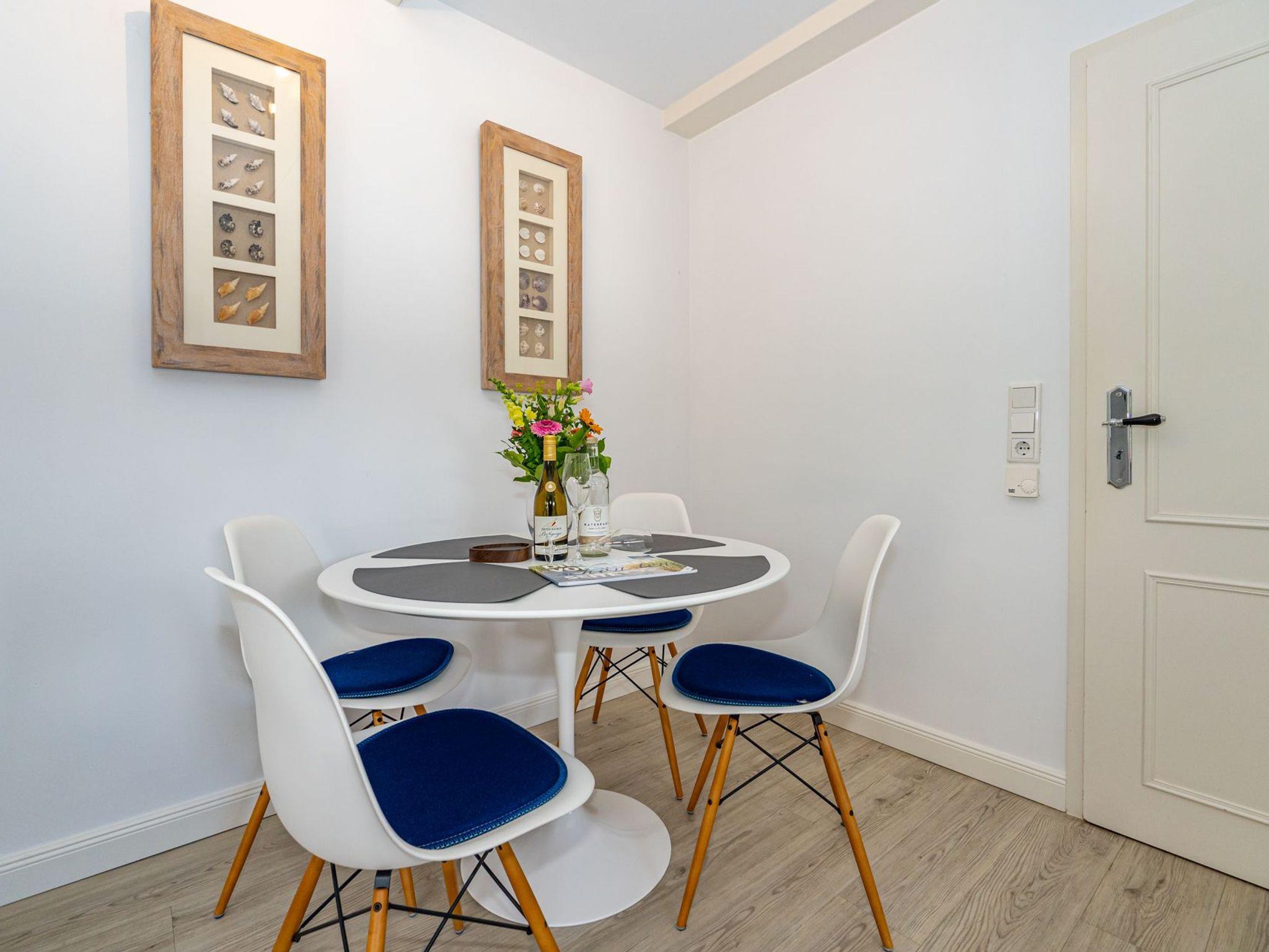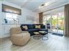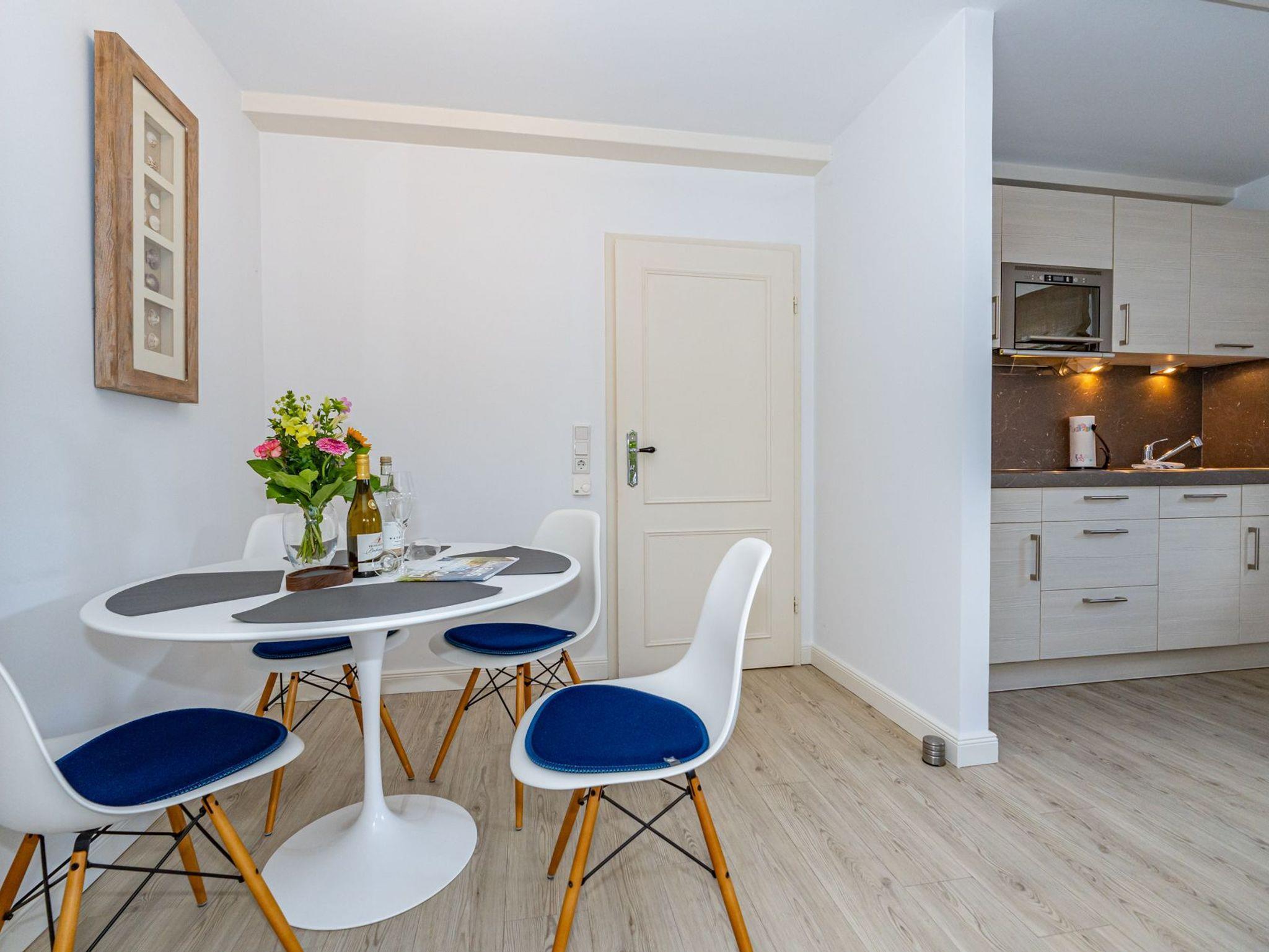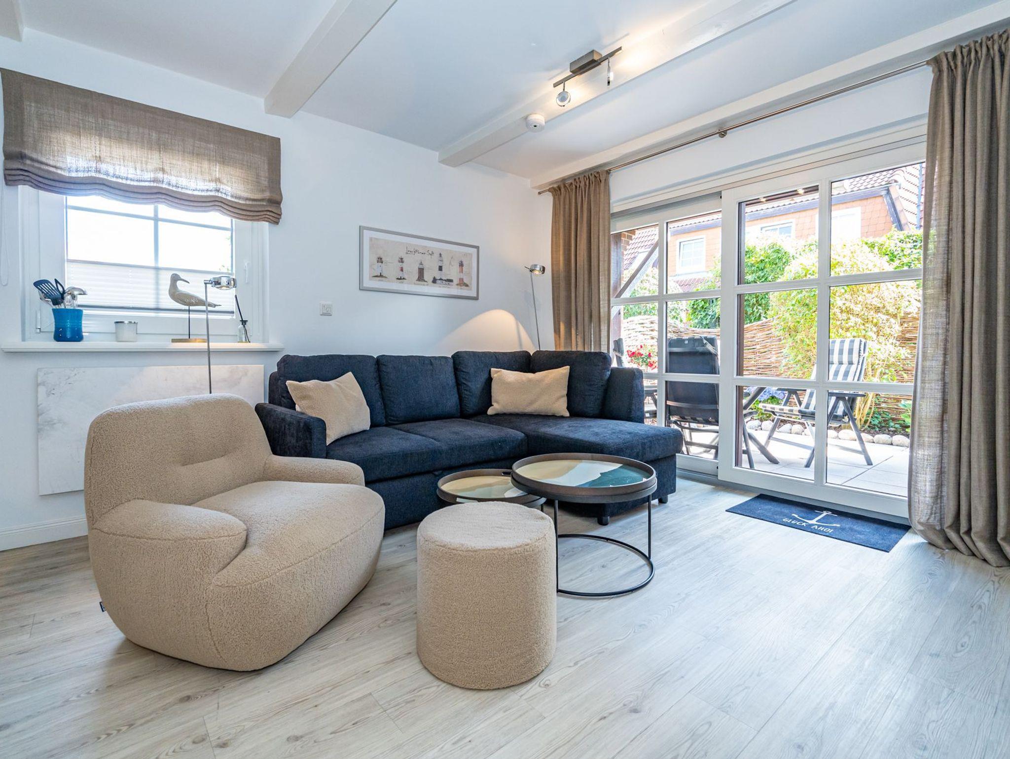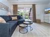 Hochwertig ausgestattete und exklusive 2-Zimmer-Nichtraucher-Ferienwohnung, ca. 45 qm im Parterre zur Südseite mit Südterrasse (mit Balkonmöbeln, Armlehnstühlen + Auflagen, Terrassentisch, Sonnenschirm + Ständer ) und Abstellraum auf der Terrasse für max. 2 Personen.