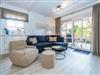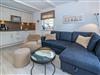 Der Wohnraum verfügt über eine moderne Sitzecke (gute Schlafcouch) mit Sessel und Fußhocker, einen Essplatz, Flachbild-TV (Bildschirmdiagonale 105 cm), Radio-CD sowie DVD-Player.