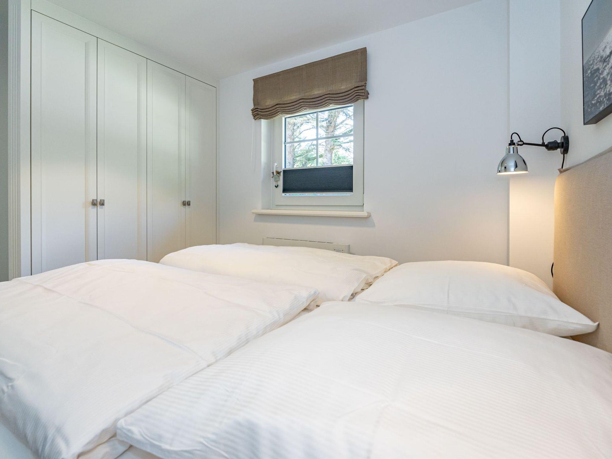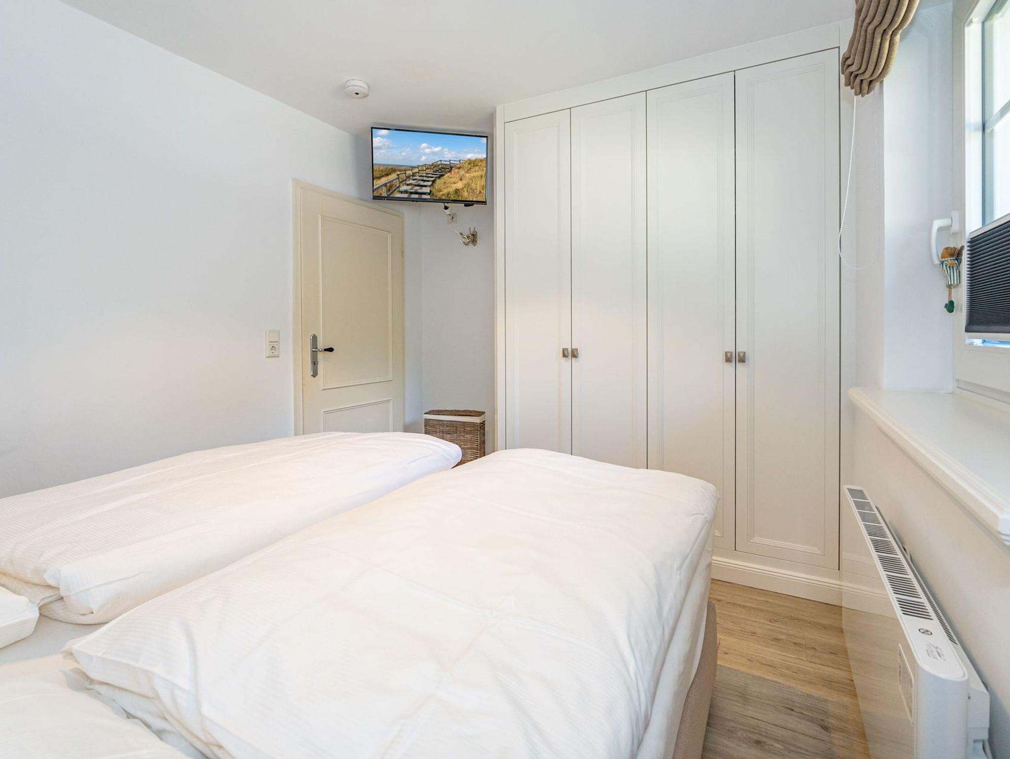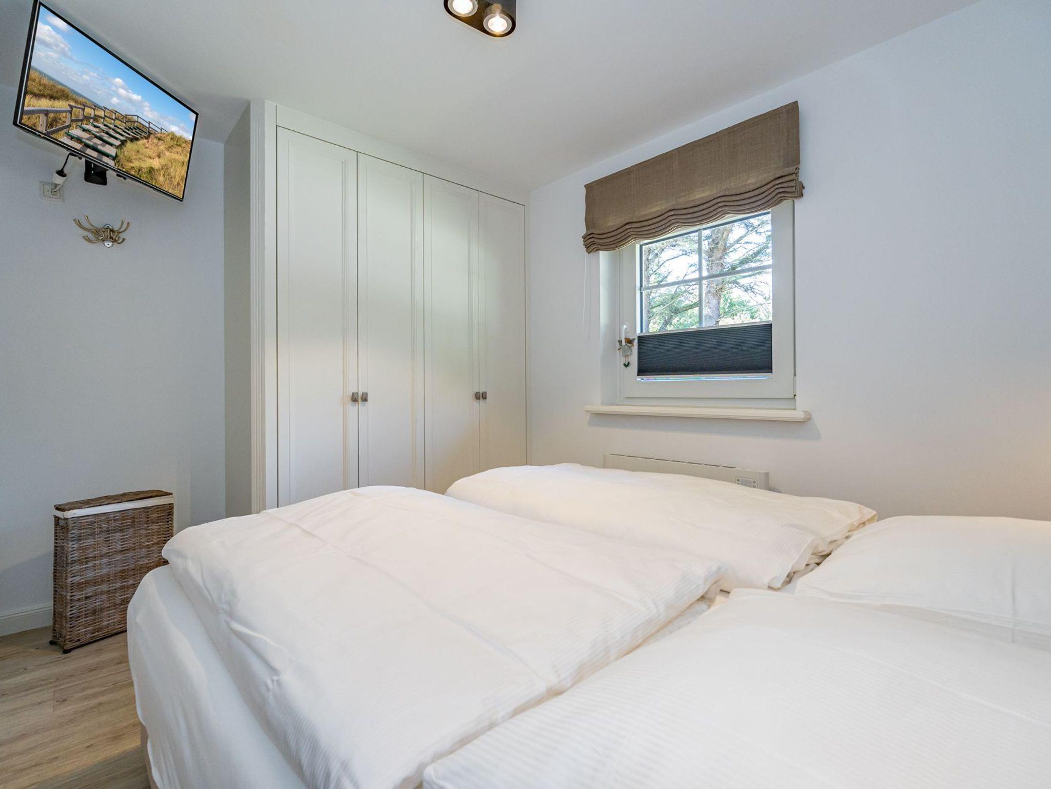 Das Schlafzimmer ist mit einem guten Boxspring-Doppelbett (Überlänge, zwei Einzelmatratzen je 0,90 x 2,10 m, mit durchgehendem Topper), Kleiderschrank und weiterem Flachbild-TV eingerichtet.