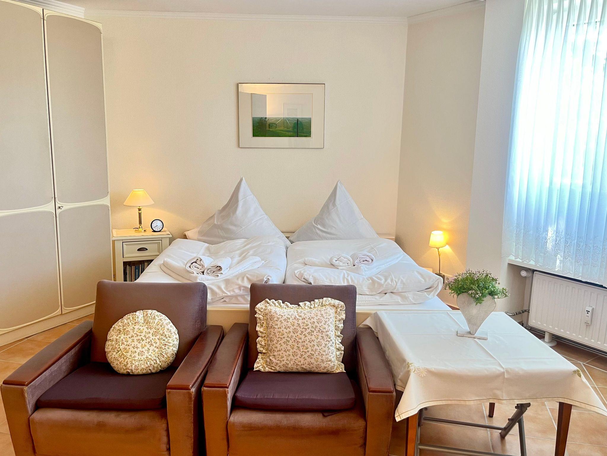 Die 1- Zimmerwohnung für 1-2 Personen (ca.40m²) befindet sich im Hochparterre der ruhig gelegenen Appartementanlage.