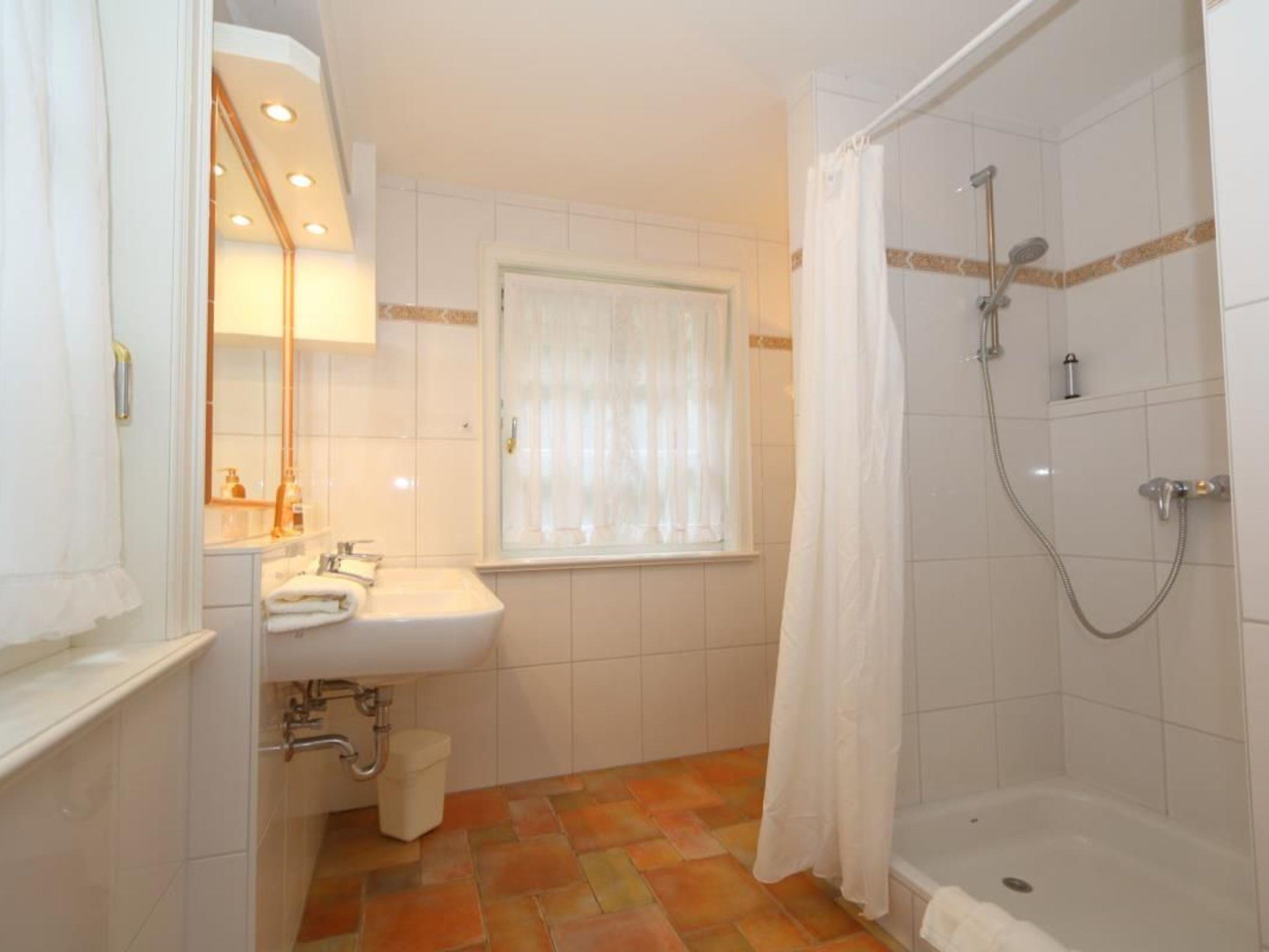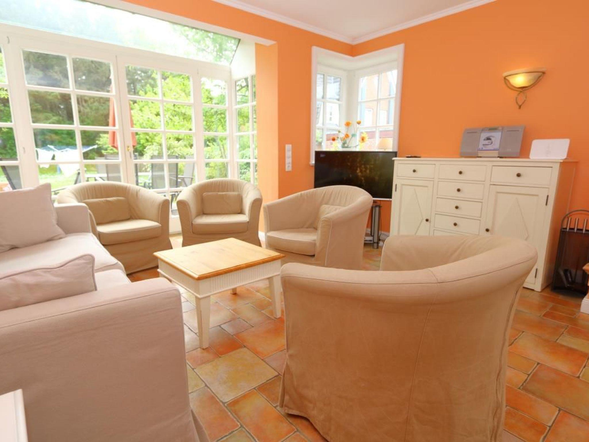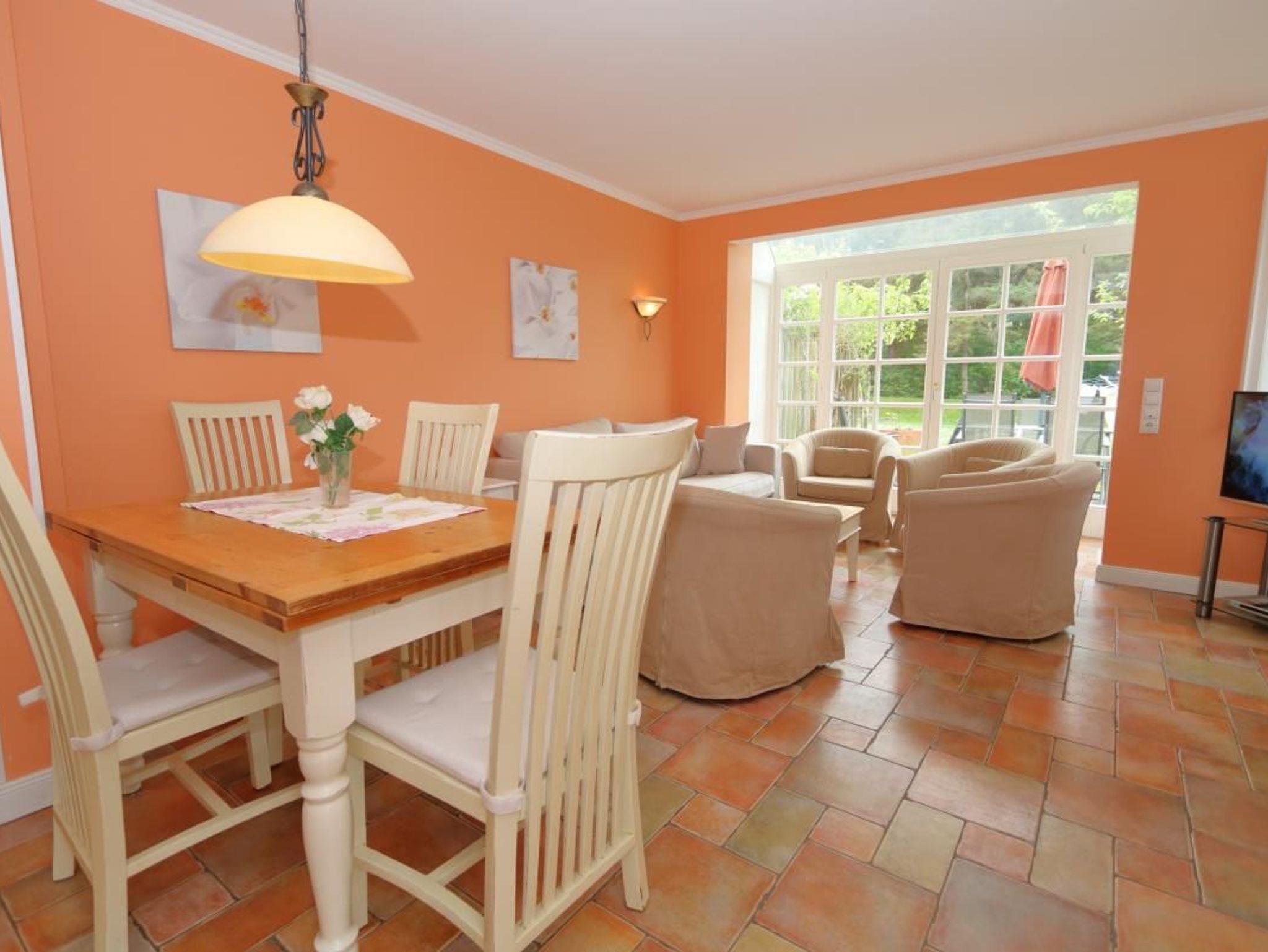 Die schöne Ferienwohnung Thomas Mann liegt direkt am Wald Friedrichshain und verfügt über eine große Terrasse für 6 Personen. Die harmonischen Farbnuancen im Wohnzimmer passen wunderbar zur hellen Einrichtung. Das Appartement verfügt über eine gut ausgestattete separate Küche, einen Soutterrain-Bereich und ein Obergeschoss mit modernem Badezimmer mit Duschwanne und zwei Waschbecken und über ein helles Schlafzimmer. Im Soutterain-Bereich befindet sich ebenfalls ein großes Badezimmer mit zwei Waschbecken und einer Dusche.