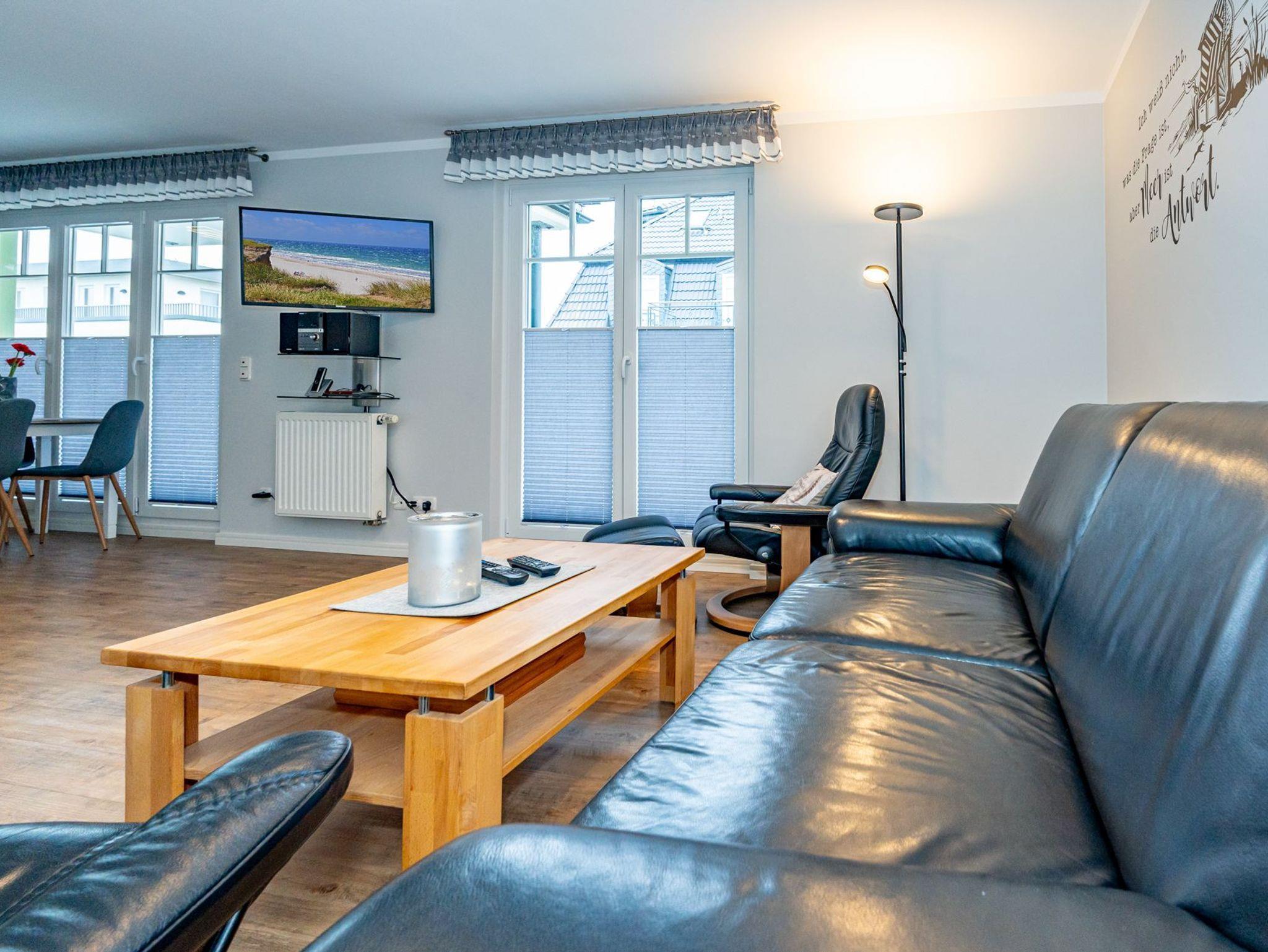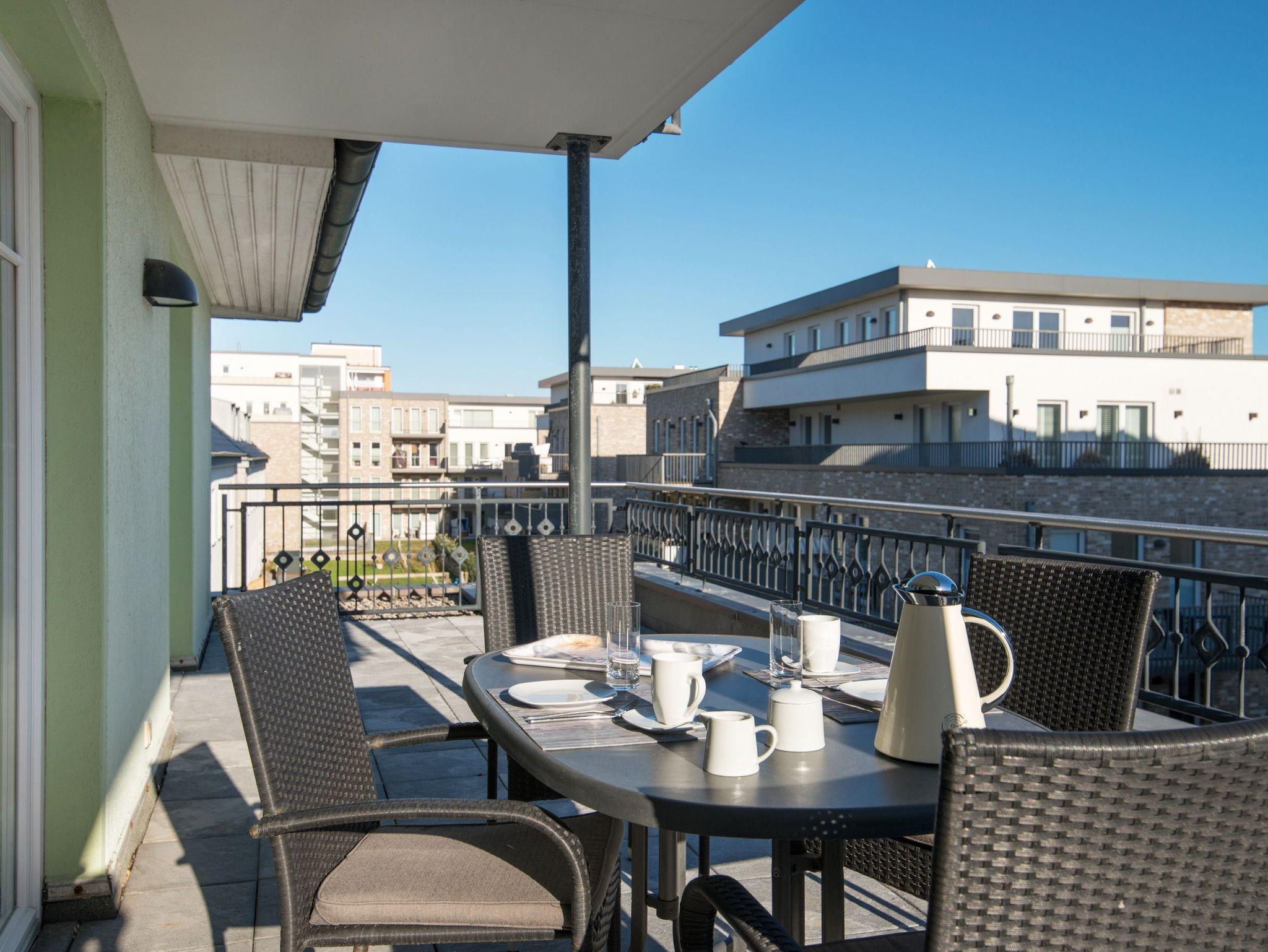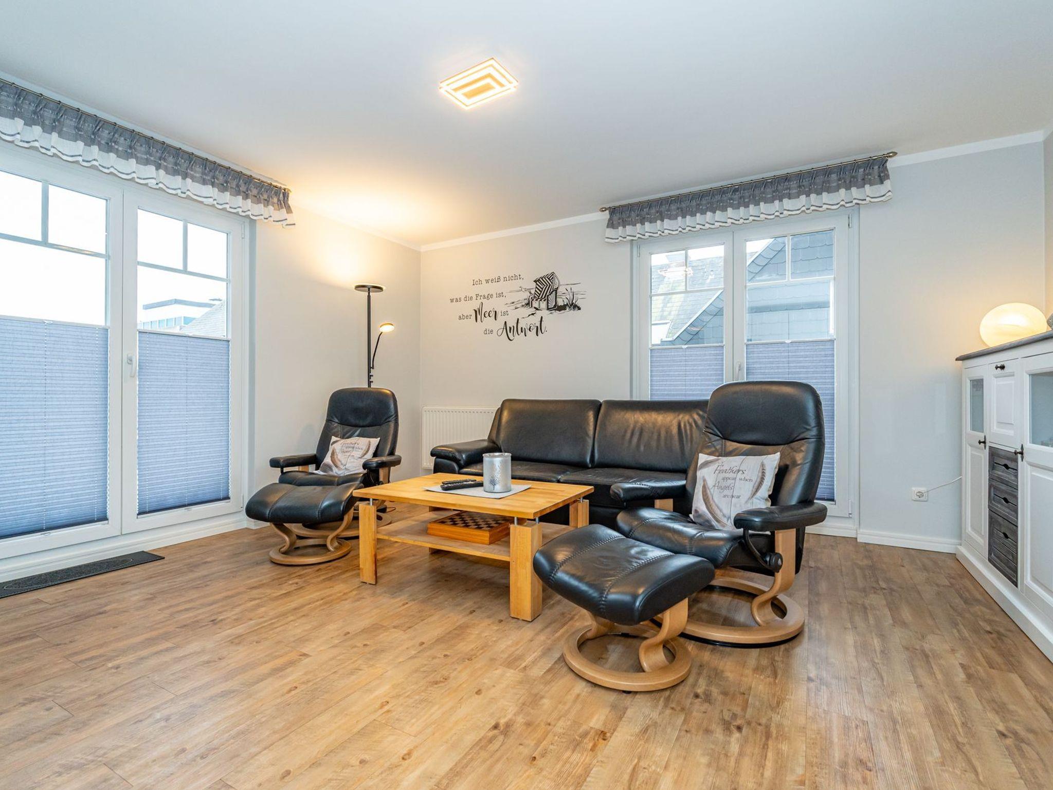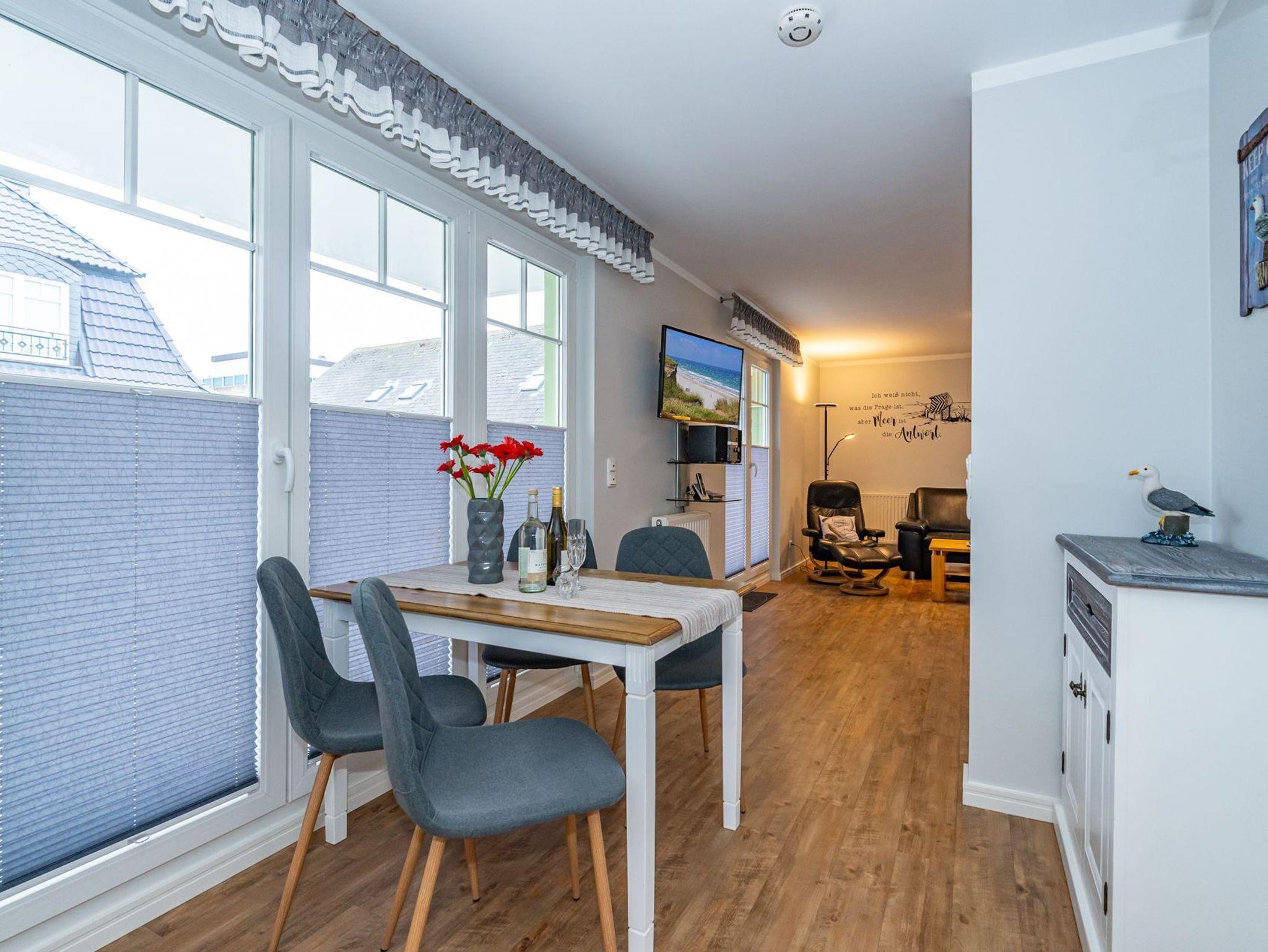 Diese ca. 67 m² große 3-Zimmer-Nichtraucherwohnung mit 2 Schlafzimmern in der 2. Etage überzeugt mit ihrer geschmackvollen Einrichtung, hochwertiger Ausstattung und eine großzügige Ost-Terrasse mit Balkonmöbeln, ideal für bis zu 4 Personen.