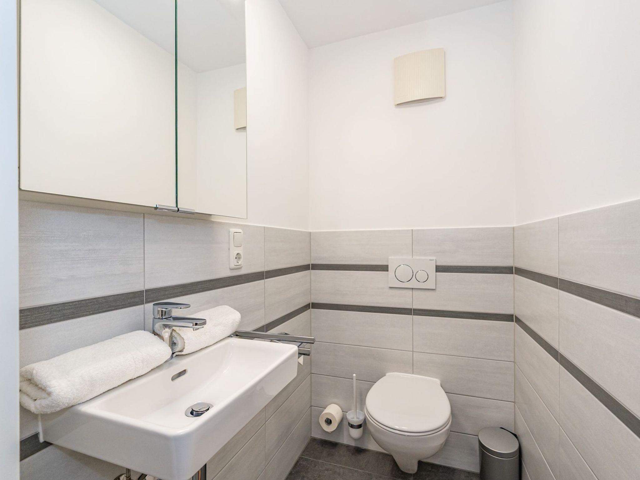 Vom einladenden Vorflur mit Garderobe gelangen Sie direkt in das helle Wohnzimmer mit Zugang zur Terrasse, in die separate Küche sowie in das praktische Gäste-WC. Der Wohnbereich ist mit einem modernen Designerboden in Holzoptik, einer hochwertigen Sitzgarnitur (2-Sitzer-Couch und Sessel), einem Essplatz sowie einem großen Kabel-Flachbild-TV (4K Ultra HD, Streaming-Dienste, Sprachsteuerung) und einem Radio ausgestattet der perfekte Raum zum Entspannen.