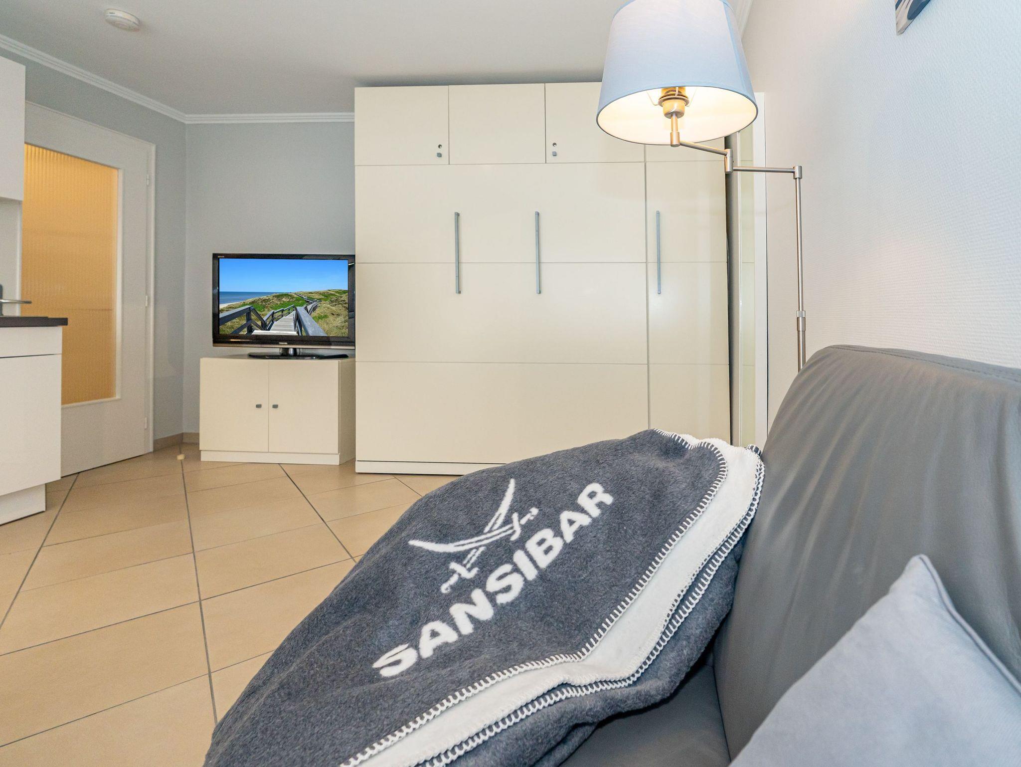 Das Appartement wurde umfassend renoviert und hochwertig eingerichtet. Im Wohnbereich erwarten Sie eine elegante Ledercouch, ein gemütlicher Essplatz sowie ein komfortables Doppelschrankbett (1,60 m breit) mit zwei separaten Matratzen. Ein großer Flachbild-TV (40 Zoll, Kabel), CD/Radio, DVD-Player und kostenfreies WLAN sorgen für angenehme Unterhaltung.