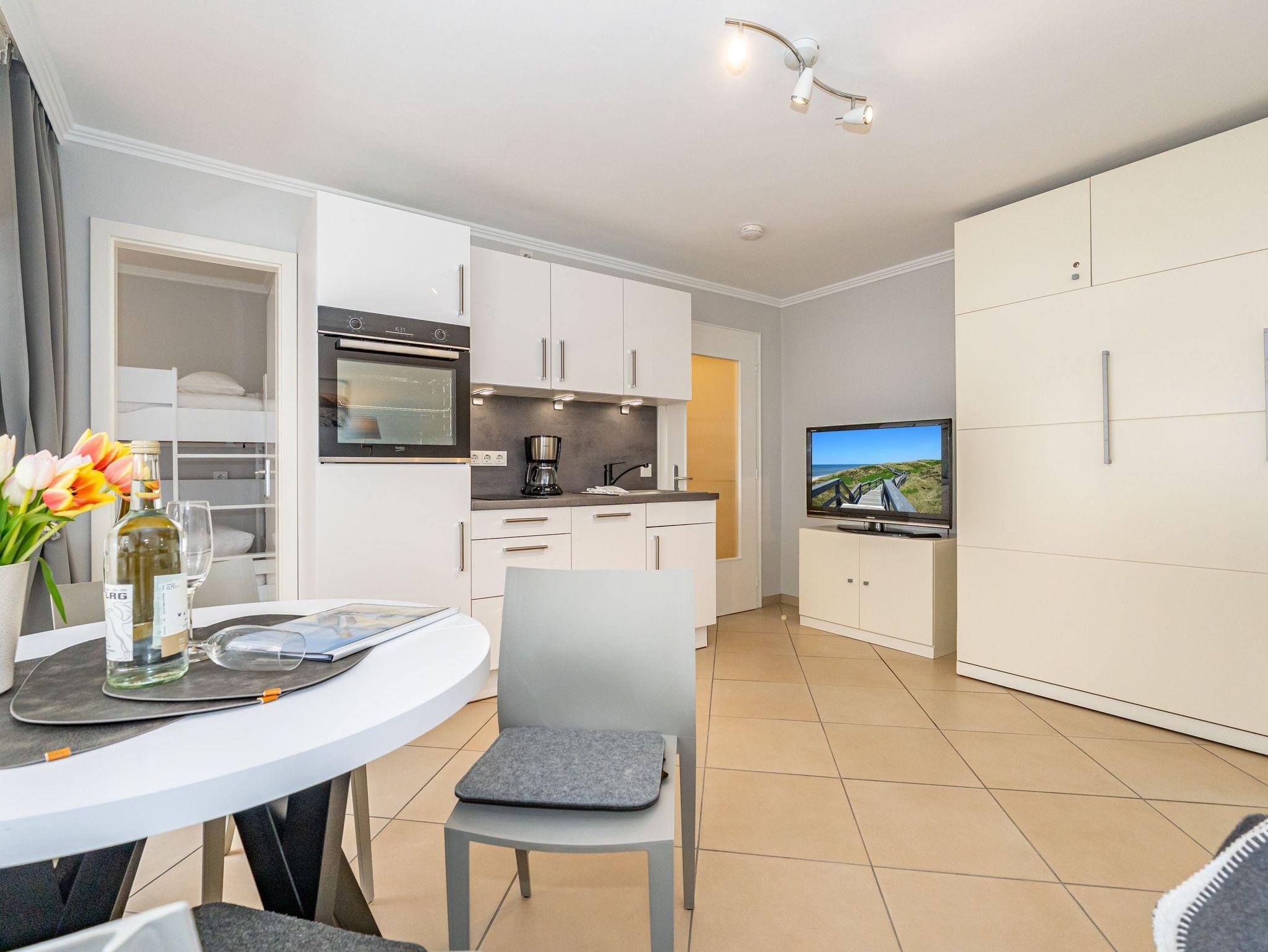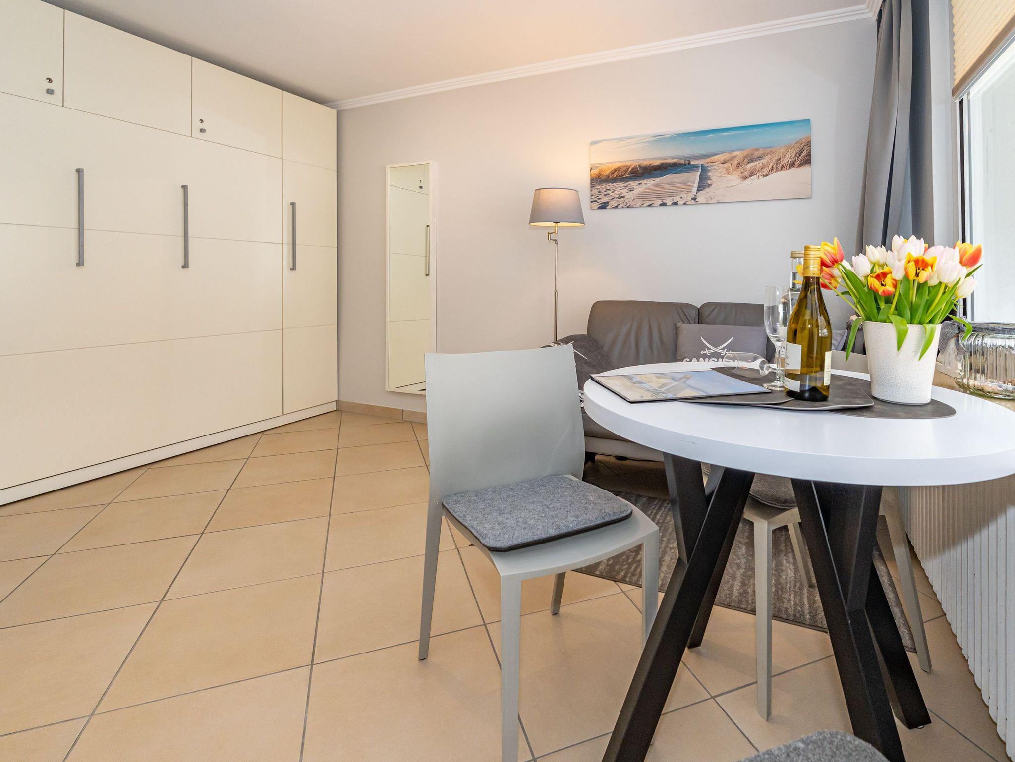 Dieses geschmackvoll modernisierte 2-Zimmer-Nichtraucher-Appartement befindet sich in der 1. Etage zur Nordseite und bietet auf ca. 32 m² Platz für bis zu 3 Personen. Die hervorragende Lage direkt am Strandübergang und das liebevoll neugestaltete Interieur machen diese Wohnung zu einem idealen Rückzugsort für Ihren Nordseeurlaub.