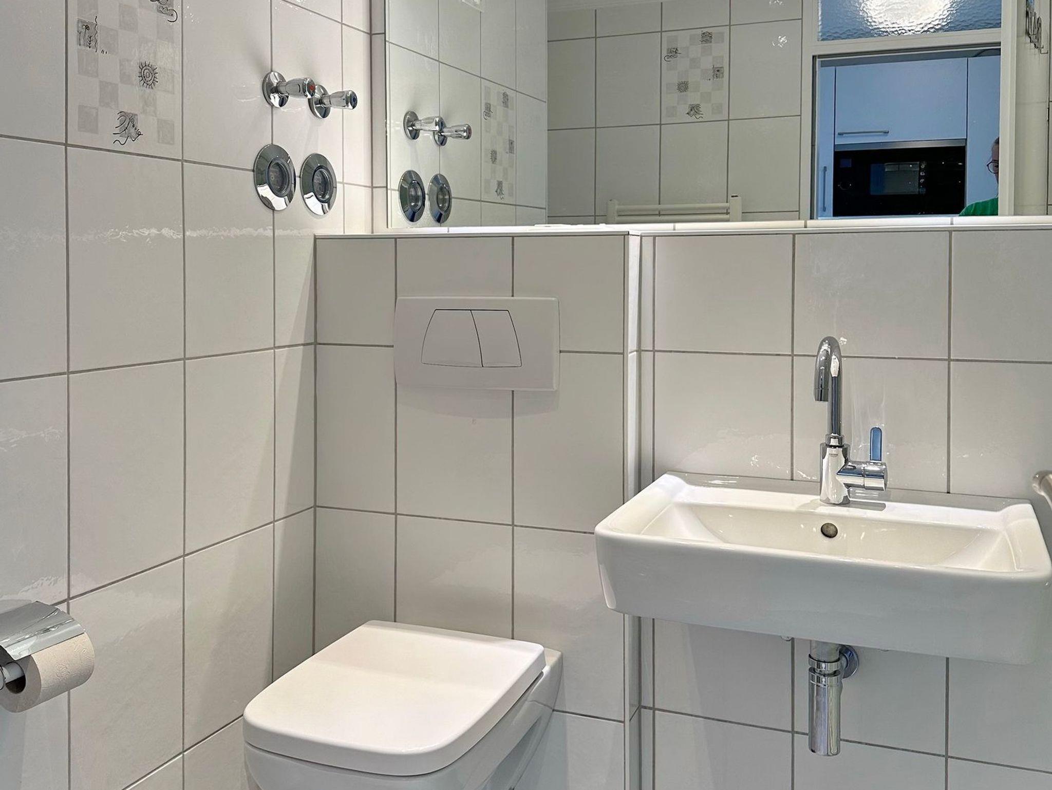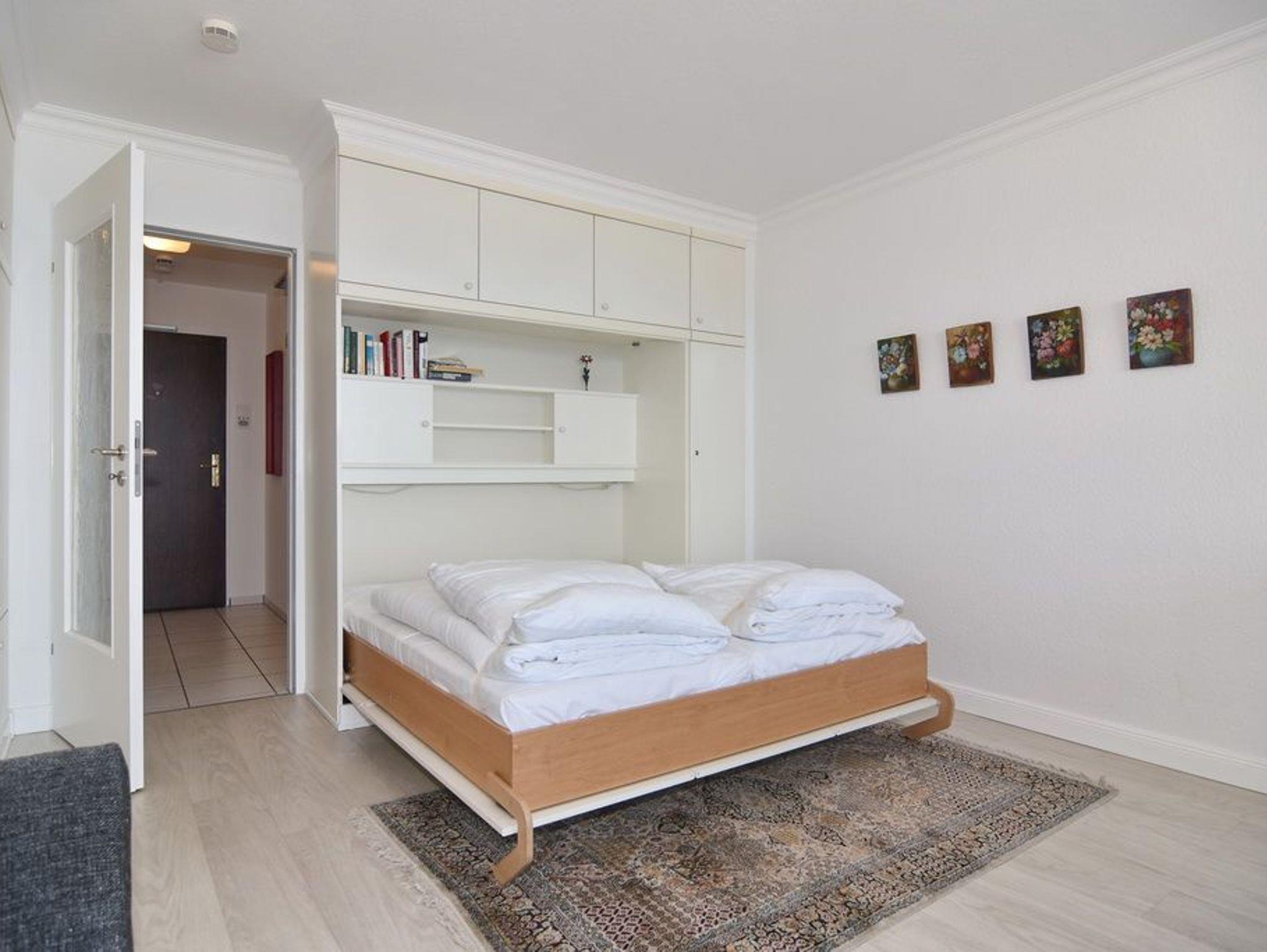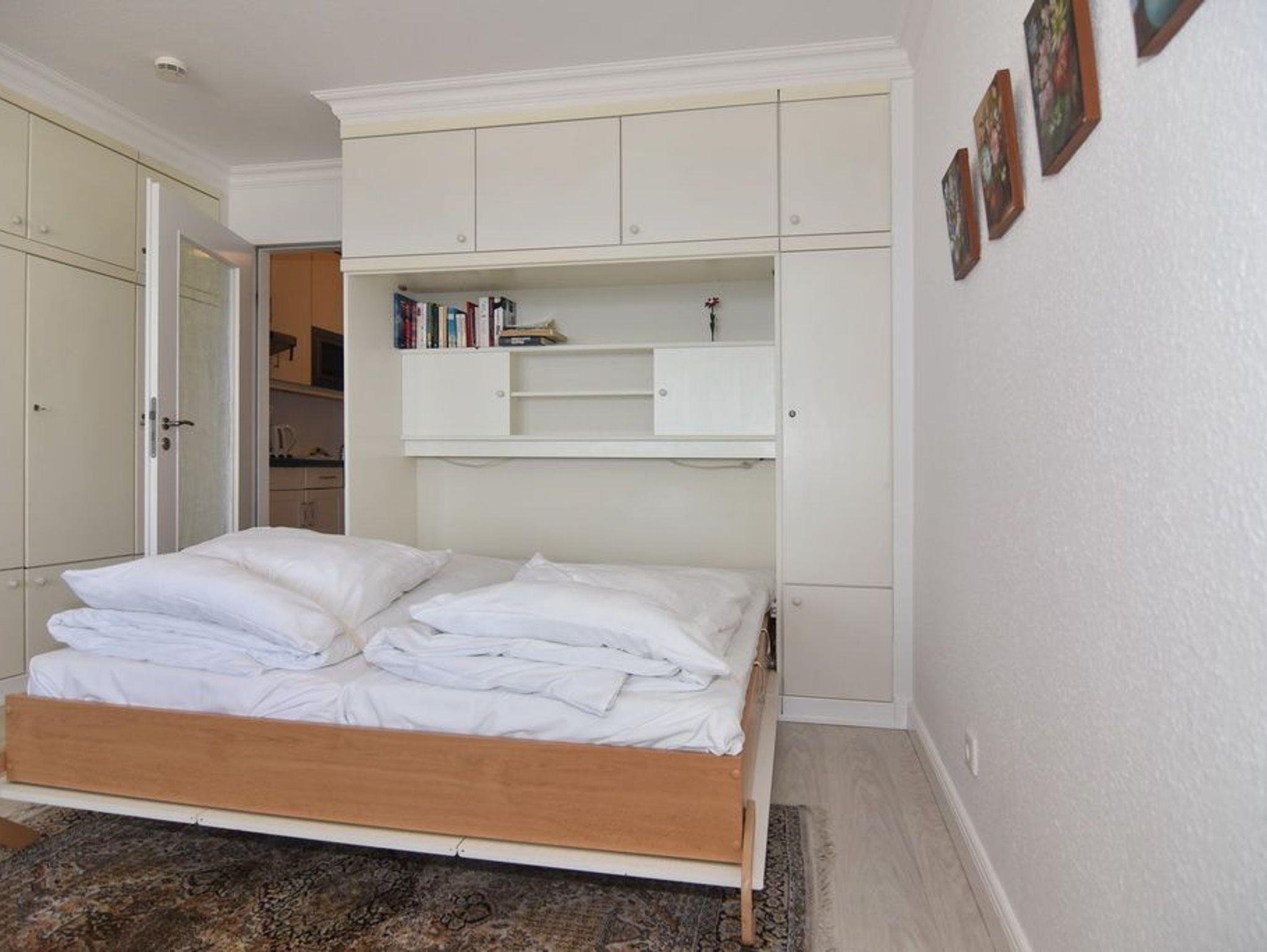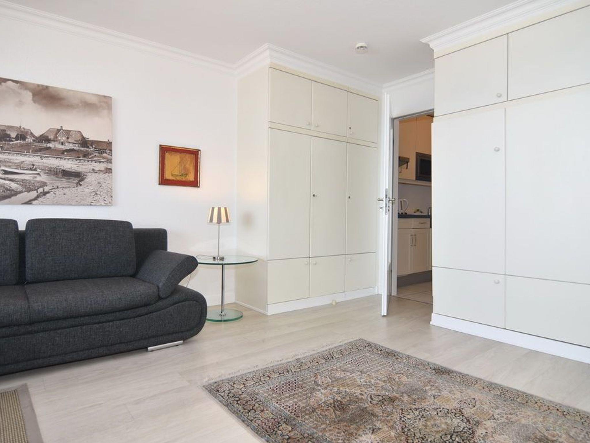 1-Zimmer-Ferienwohnung. ca. 34 m², 6.OG, Haus am Meer. Nichtraucher-Whg.! Wohn-/ Schlafraum mit Doppelschrankbett (2 Matratzen), Eßtisch am Fenster mit Blick auf das Meer, Zweisitzercouch, Flat-TV, Radio, Telefon, W-LAN (ohne Gewähr), Westbalkon mit Meeresblick und Balkonmöbeln, Küchenzeile im Flur m.Geschirrspüler u. Mikrowelle, Duschbad/WC. Tierhaltung ist nicht gestattet.[nbsp][nbsp]Das App. ist mit Design-Fußboden ausgelegt. Bettwäsche und Handtücher sind zur Anreise aufgezogen. Ein PKW-Stellplatz kann kostenpflichtig zugebucht werden.Beginnend vom 15.10.2025 bis 5.4.2026 (Ostern) findet die Fassandensanierung der Landseite (Osten) sowie des Südgiebels statt. Mit Baulärm ist in dieser Zeit zu rechnen.