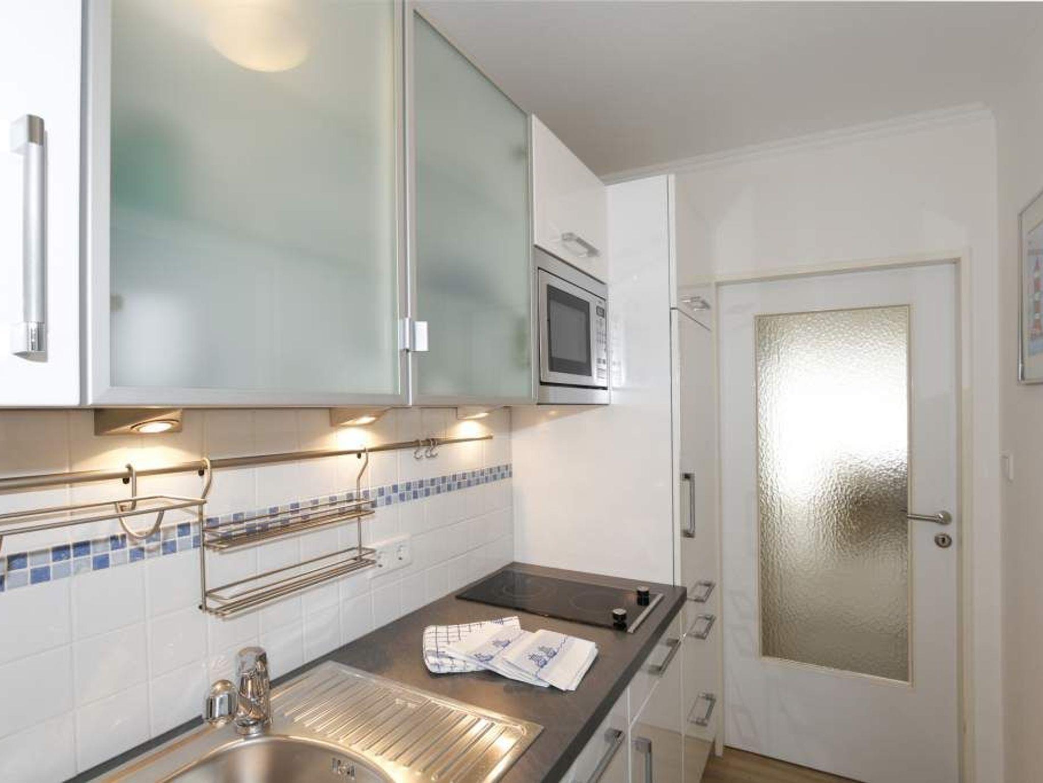 Die neue Küchenzeile hat einen Geschirrspüler, ein 2-Platten-Ceranfeld, eine Mikrowelle und einen Kühlschrank mit 3-Sterne-Gefrierfach. Kaffeemaschine, Wasserkocher und Toaster gehören zur Grundausstattung.