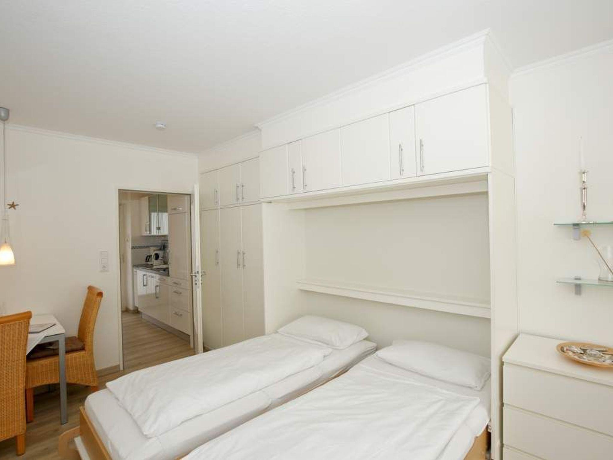 Der kombinierte Wohn-/Schlafraum ist mit einer gemütlichen Sitzgarnitur (Zweisitzer-Couch), einer Essecke, Doppelwandbetten, einem Flachbild-TV und einem Radio/CD-Player ausgestattet.