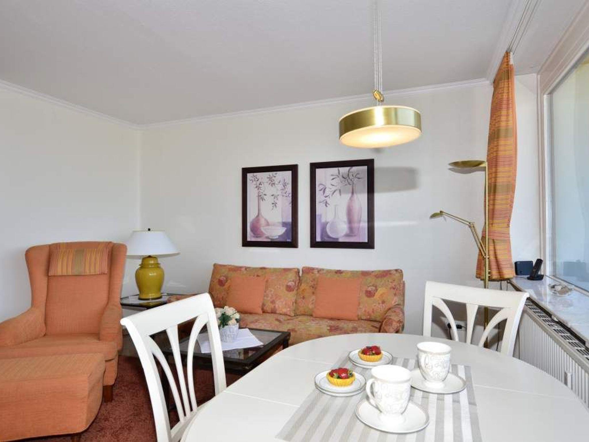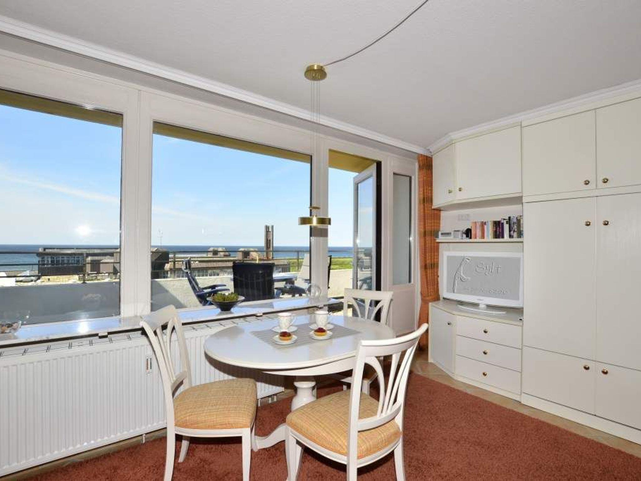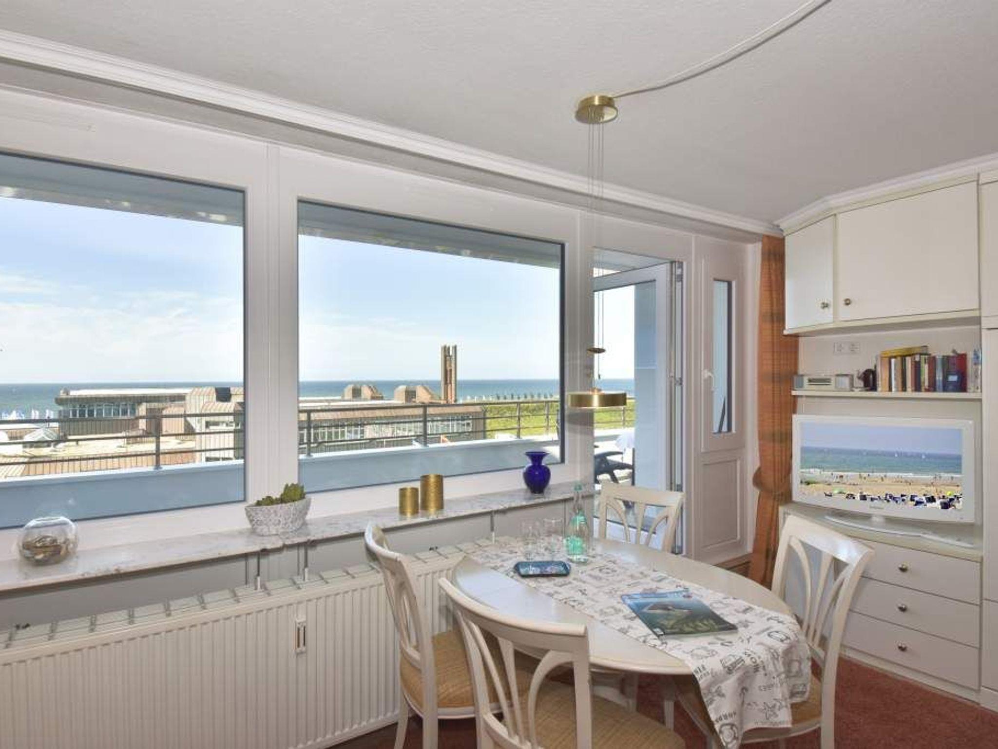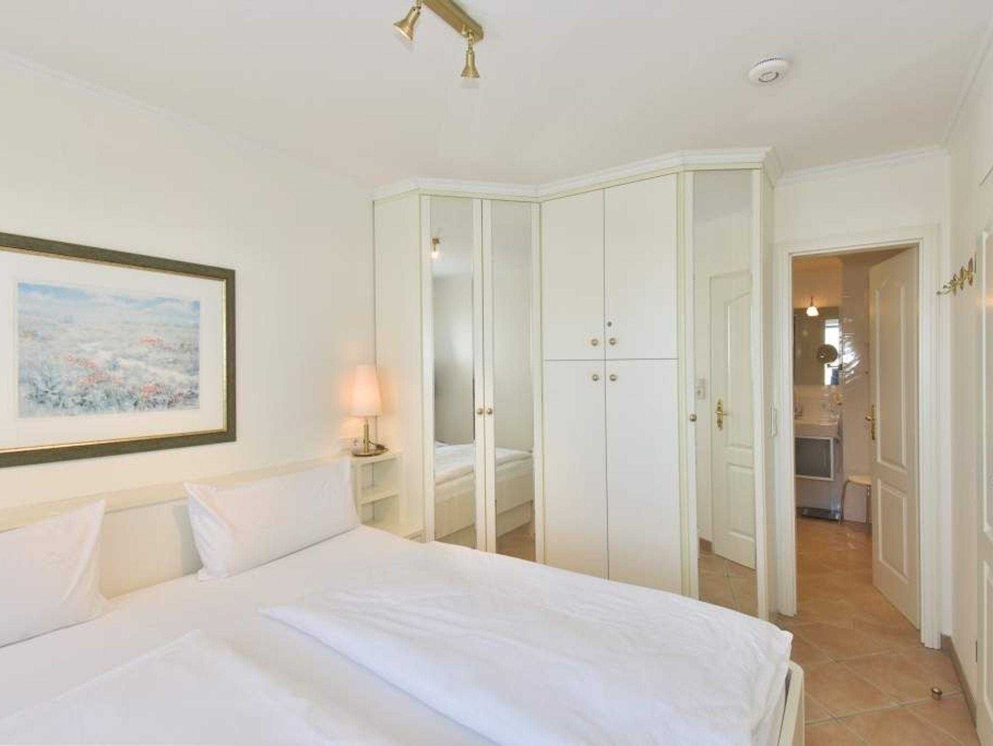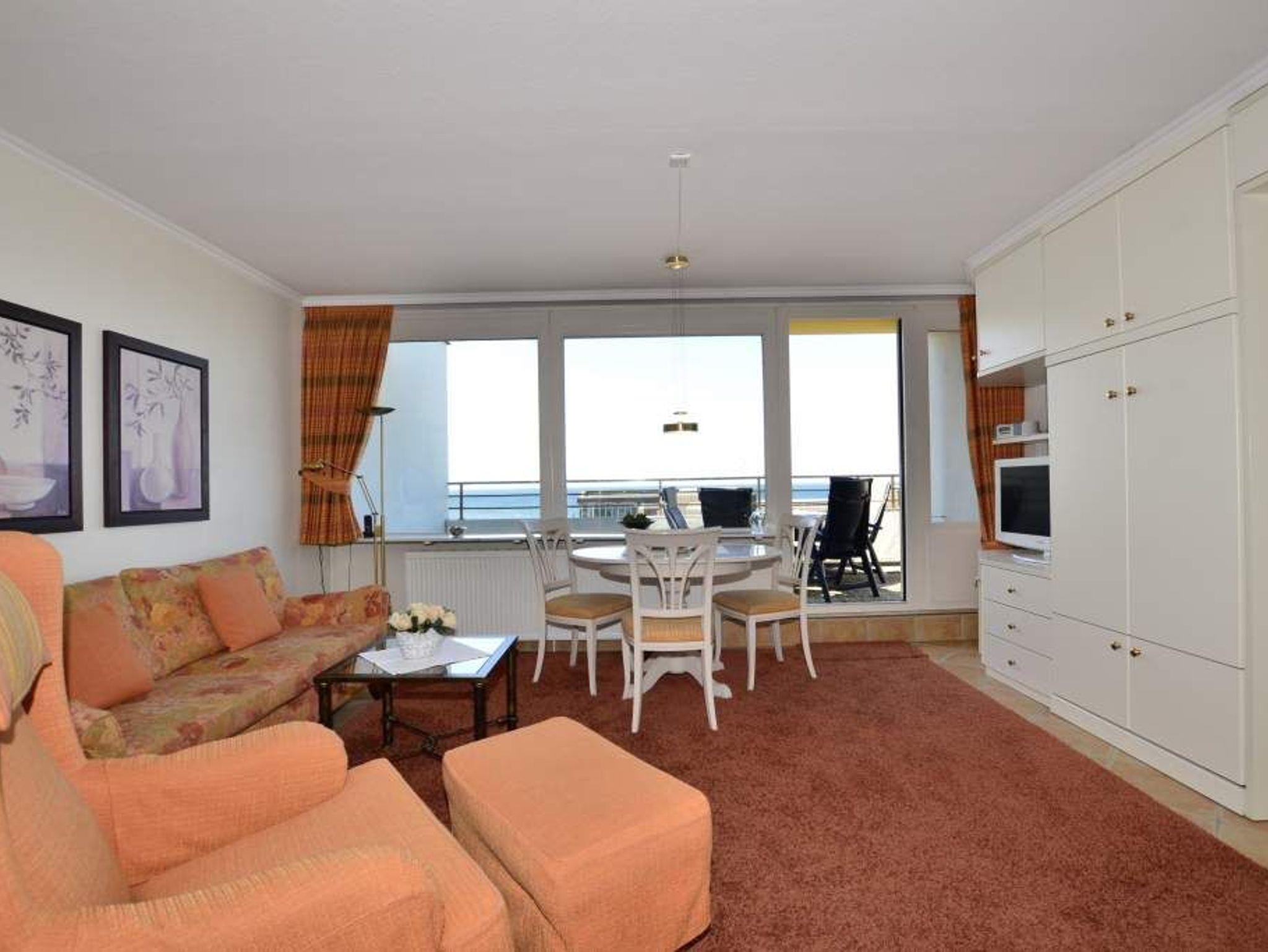 Exklusiv eingerichtete, komplett geflieste 2-Zimmer-Nichtraucher-Ferienwohnung (ca. 53 qm), in der 5. Etage zur Seeseite mit schönem Meerblick und Dachterrasse (Nachmittags- und Abendsonne, mit Balkonmöbeln und Auflagen).