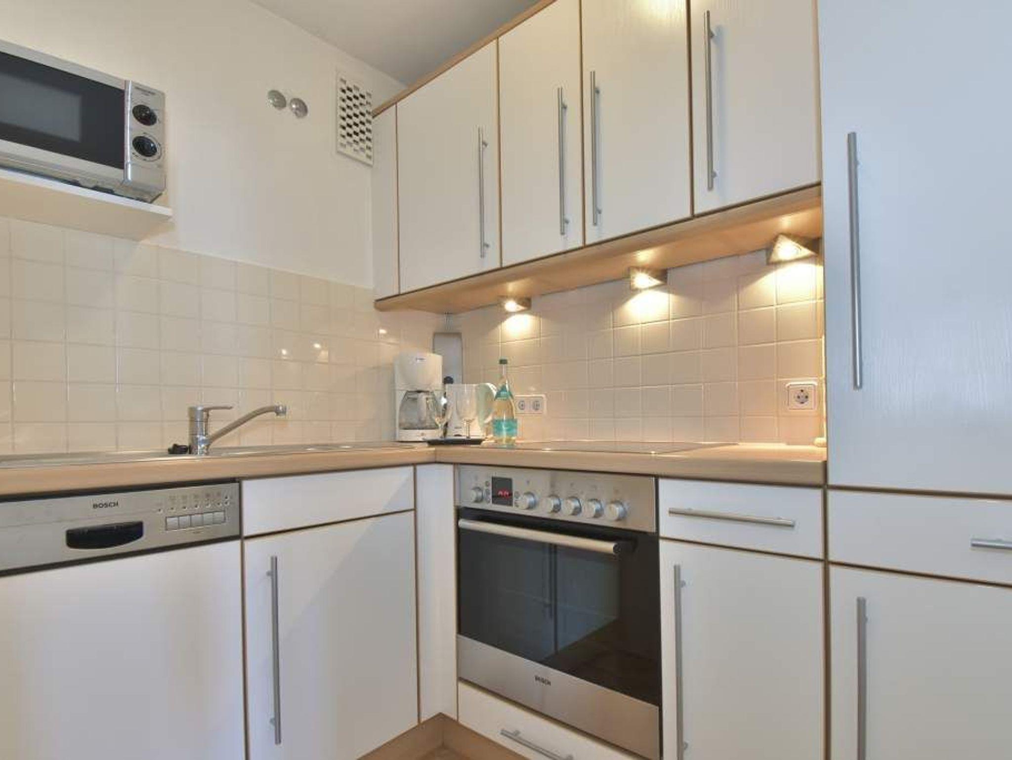Die Küche hat einen Geschirrspüler, einen Herd mit Backofen und Ceranfeld und einen Kühlschrank mit 3-Sterne-Gefrierfach. Kaffeemaschine, Wasserkocher und Toaster gehören zur Grundausstattung.