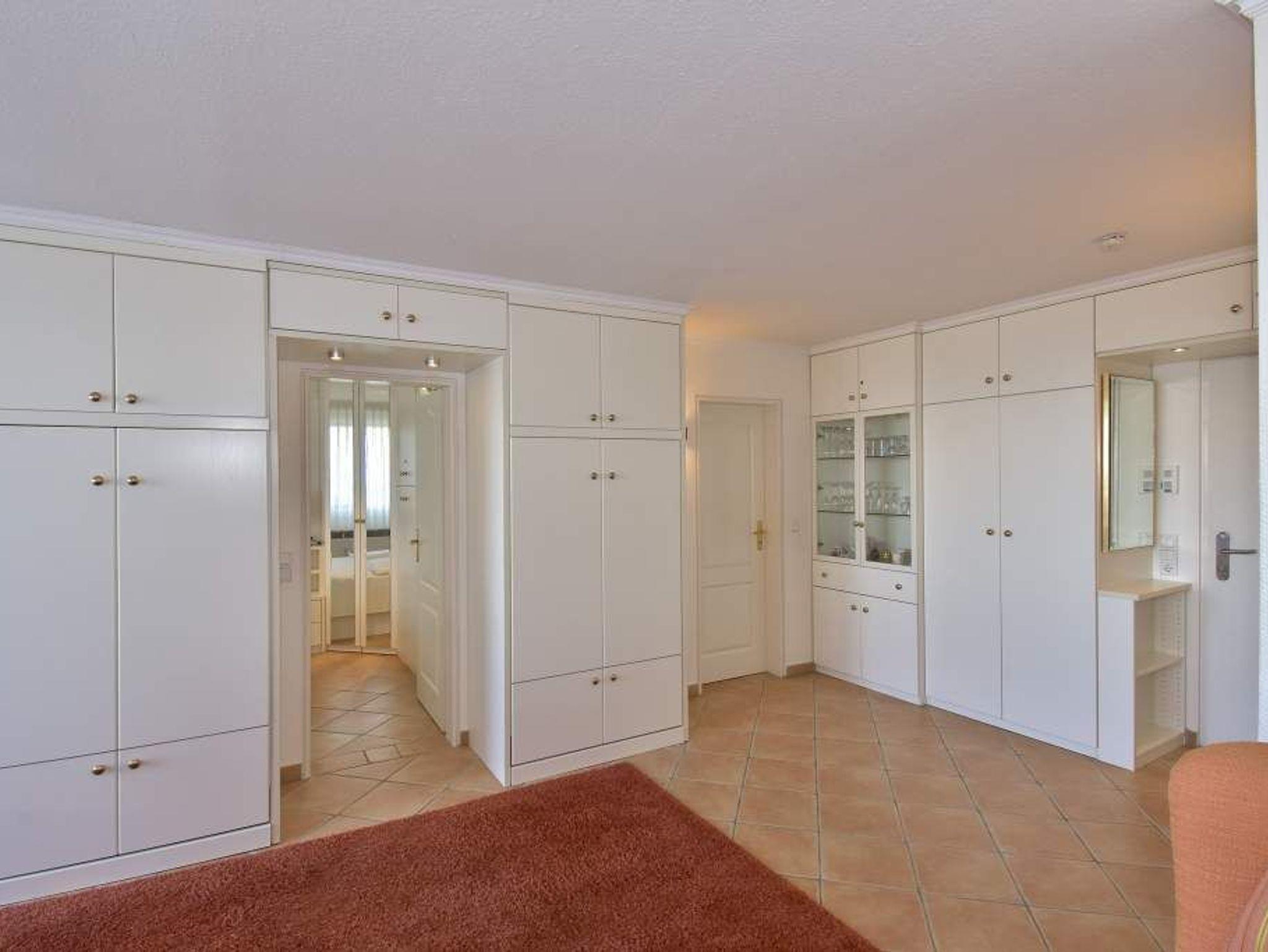 Das Schlafzimmer (mit einem weiteren Austritt zur Dachterrasse) erreicht man durch das Wohnzimmer. Hier befinden sich ein Doppelbett (zwei Einzelmatratzen 0,90 x 2,00 m), ein großer geräumiger Kleiderschrank und ein Zugang zum Duschbad/WC.