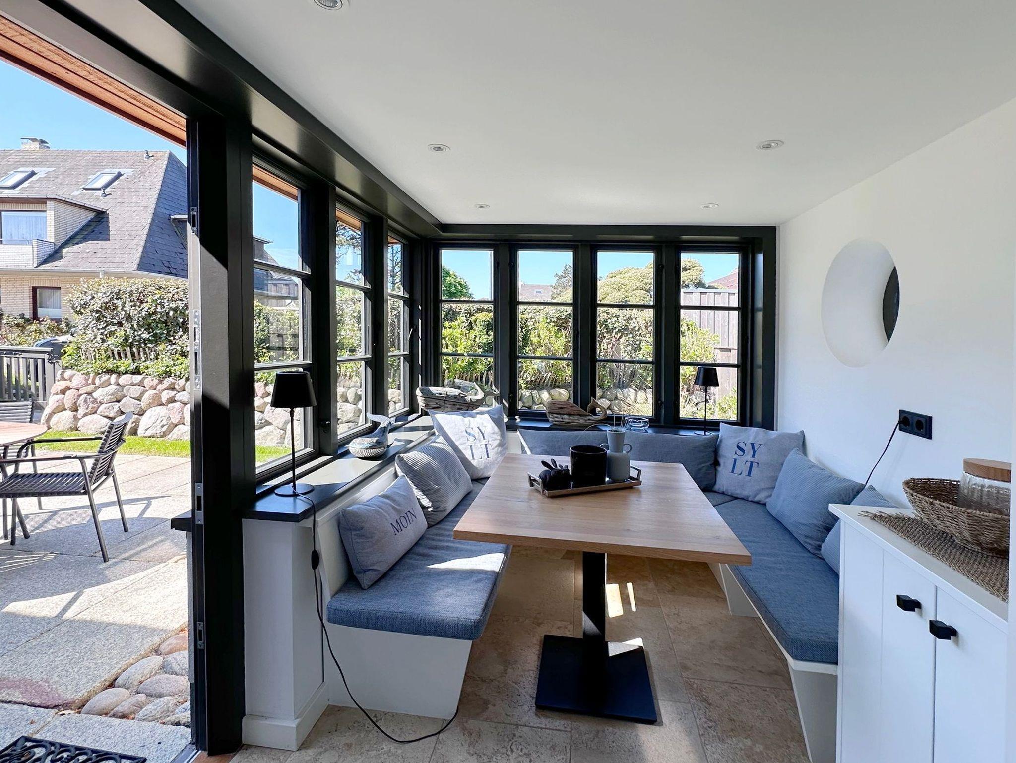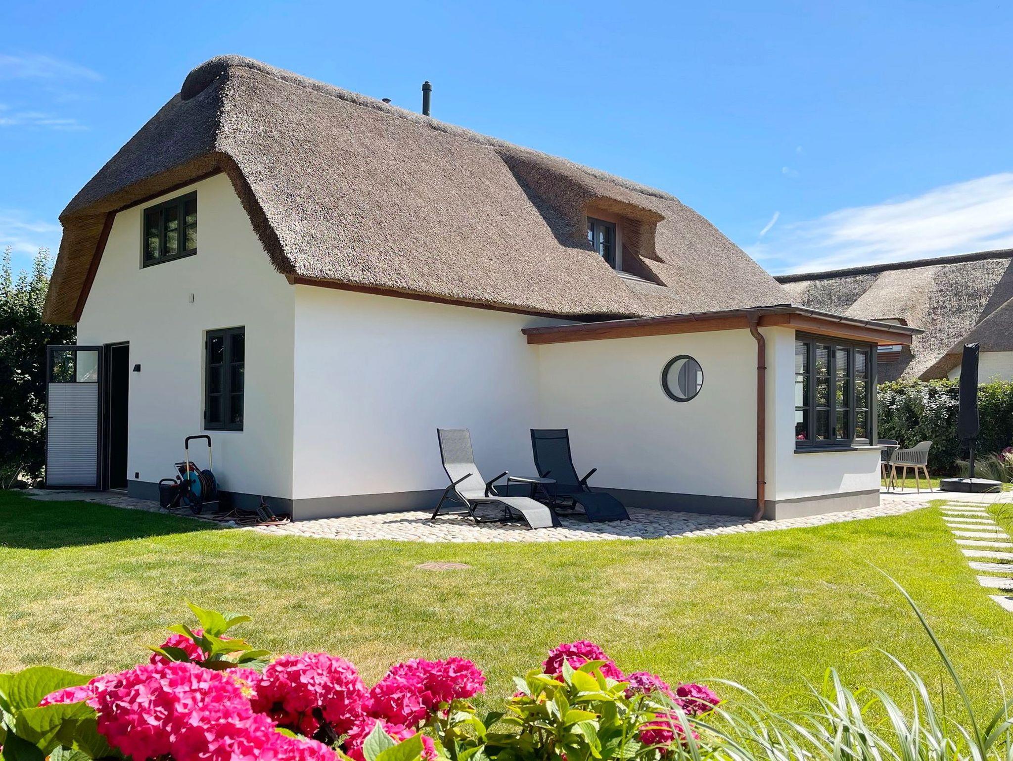 Das exklusive Ferienhaus Rosie [&] Piet wurde aufwendig von Grund auf saniert. Der ursprüngliche Charakter des Ferienhauses konnte in seiner Einzigartigkeit erhalten bleiben, gleichzeitig präsentiert sich dieses kleine Schmuckstück unter Reet mit erstklassiger Ausstattung und Möblierung im neuen Glanz. Der Zugang erfolgt über den überdachten Wintergarten, dort befindet sich auch die von Tischlerhand eingebaute Essecke mit Platz für bis zu 4 Personen.