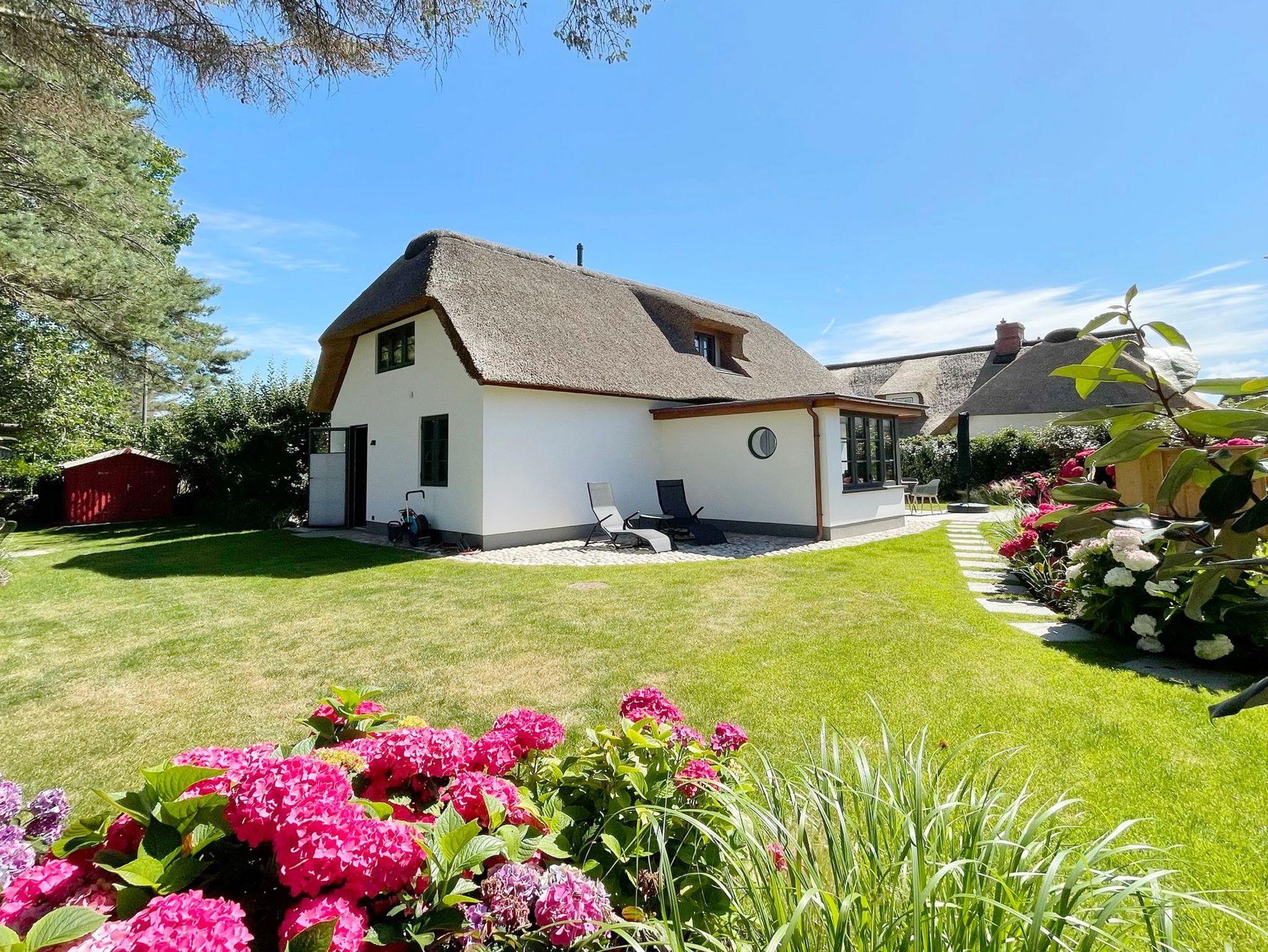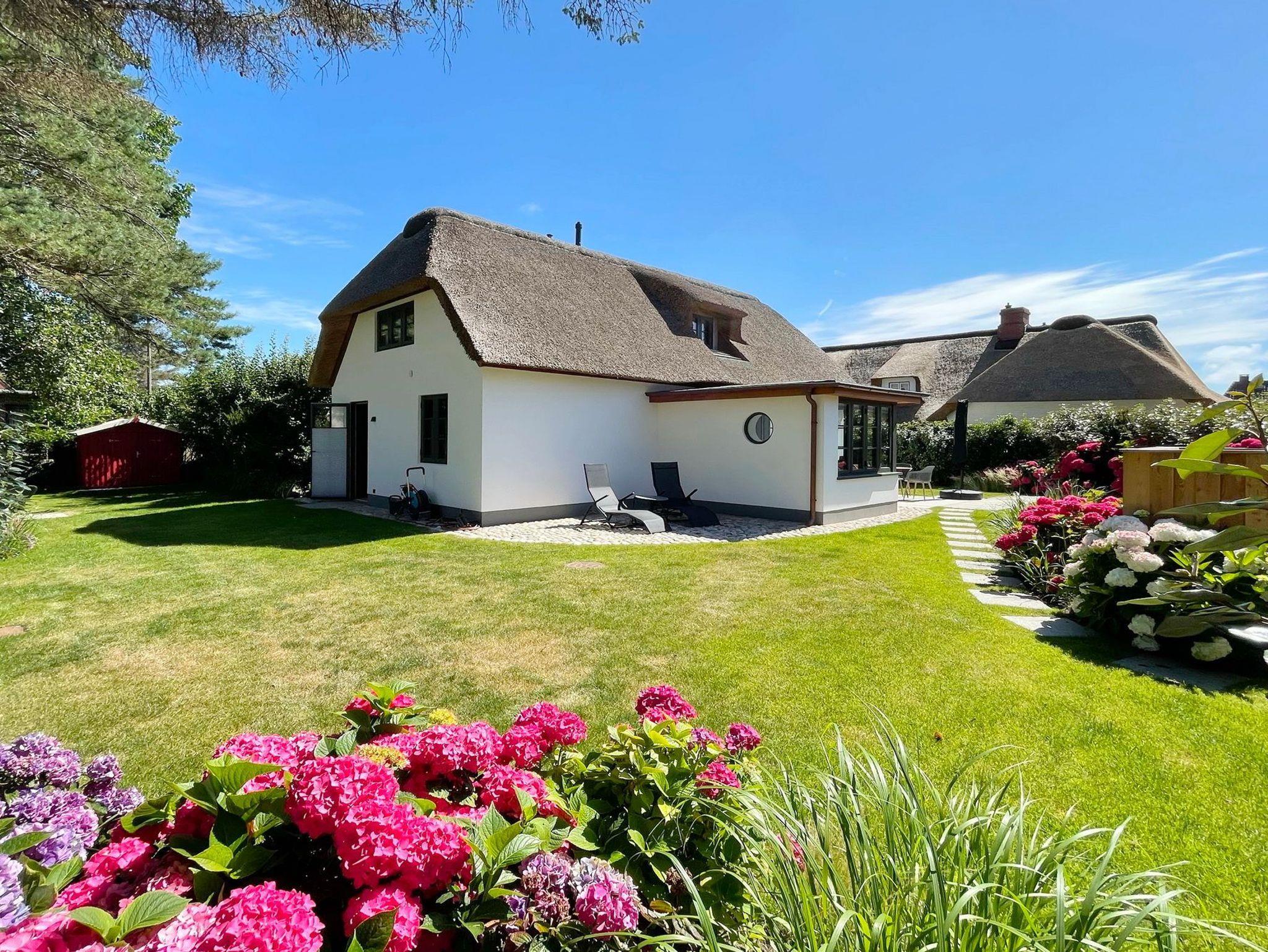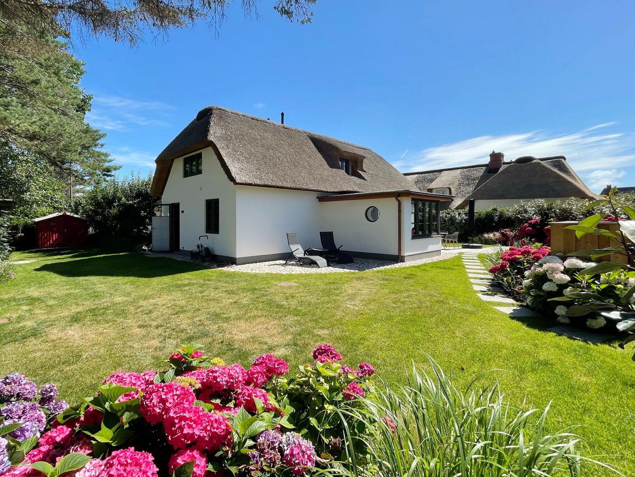 viele exklusive Details im und am ganzen Haus wie der zu 3 Seiten verglaste Erker mit maßgefertigtem Garderobenschrank, Designlampen von der Lichtinsel Sylt auf beiden Etagen, Original Sylter Buhnenholz vom Strand im Wohnbereich, Schreinergefertigte Einbauten im ganzen Haus, Gartenmöbel für 2 Terrassen und Liegestühle.