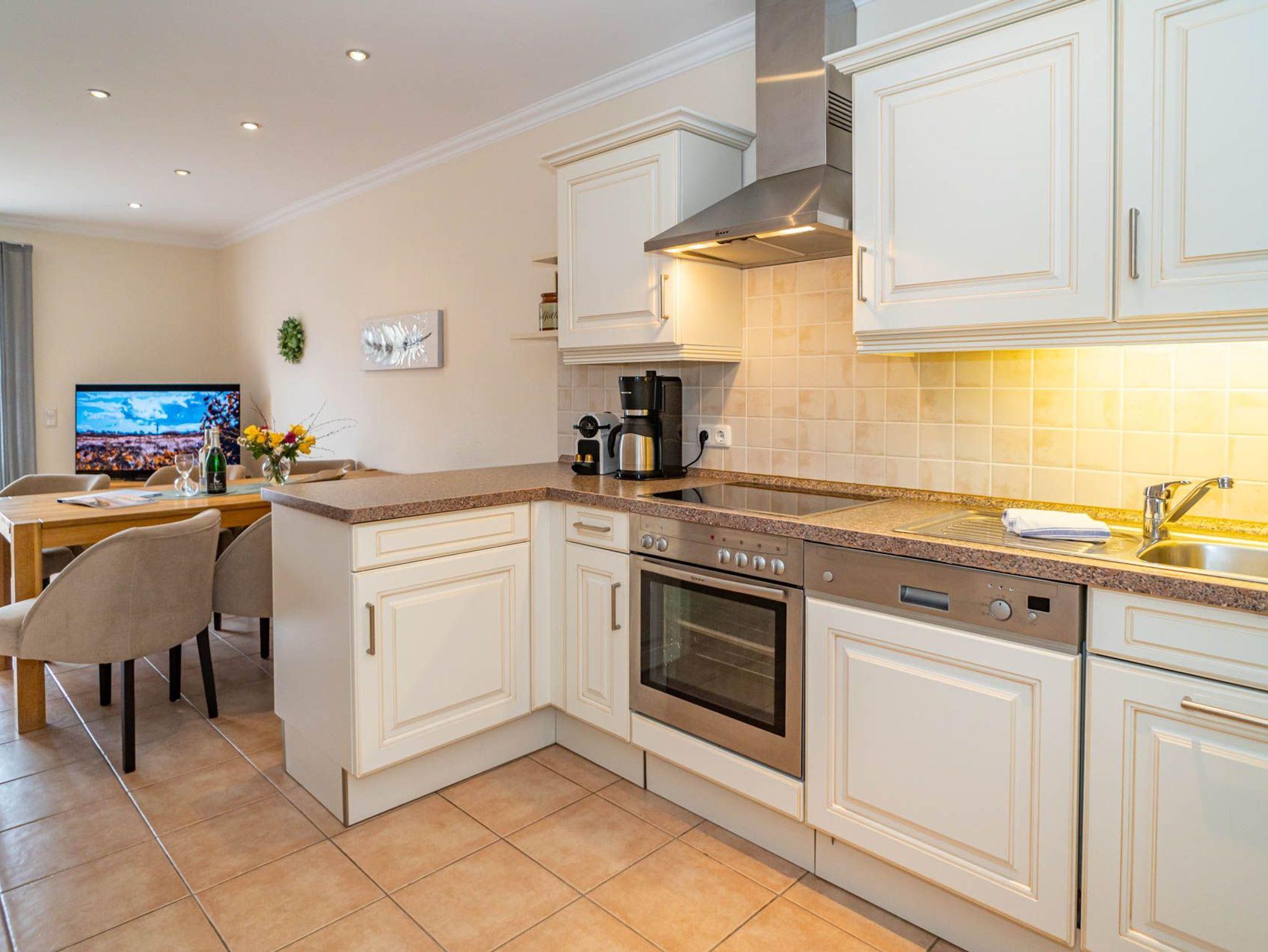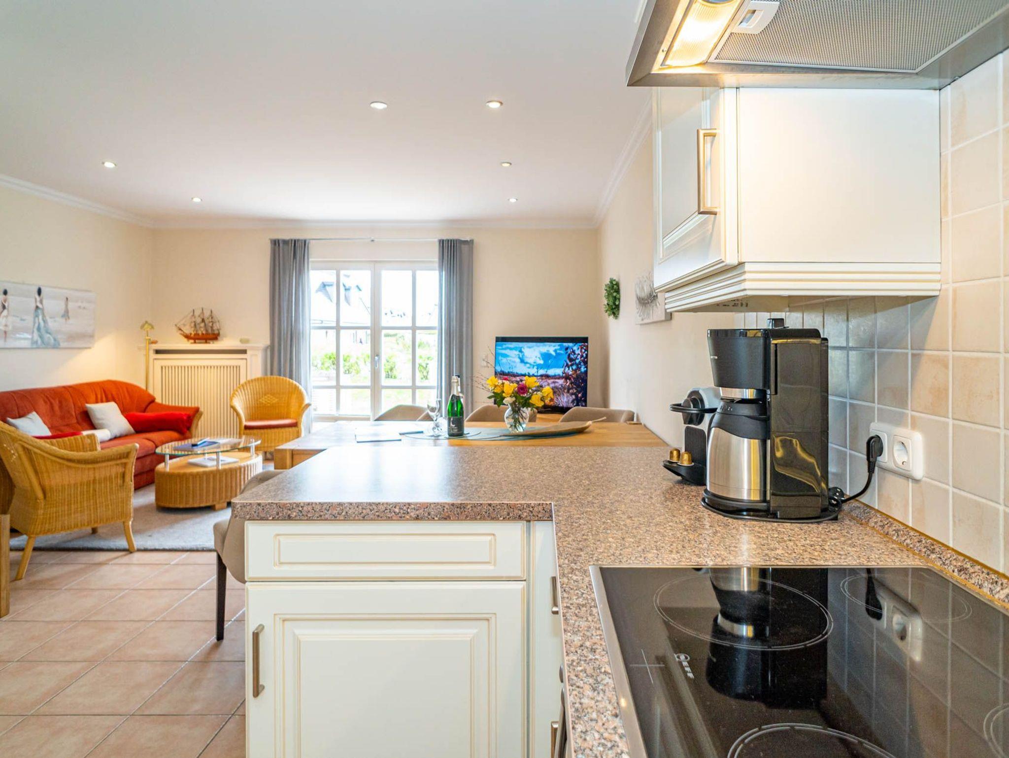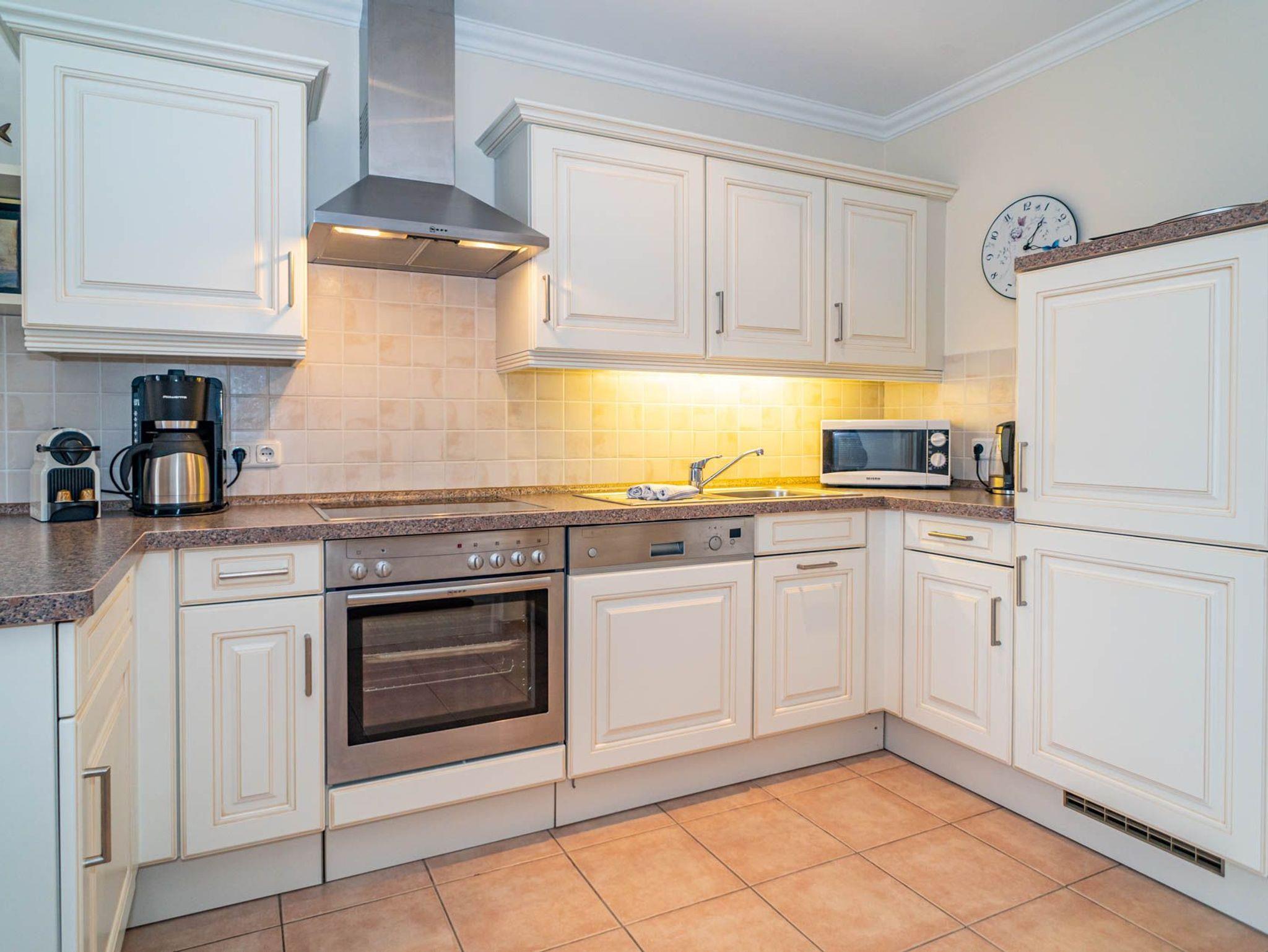 Die Pantry hat einen Geschirrspüler, einen Herd mit Backofen und Ceranfeld, eine Mikrowelle und einen Kühlschrank mit 3-Sterne-Gefrierfach. Kaffeemaschine, Wasserkocher und Toaster gehören zur Grundausstattung.
