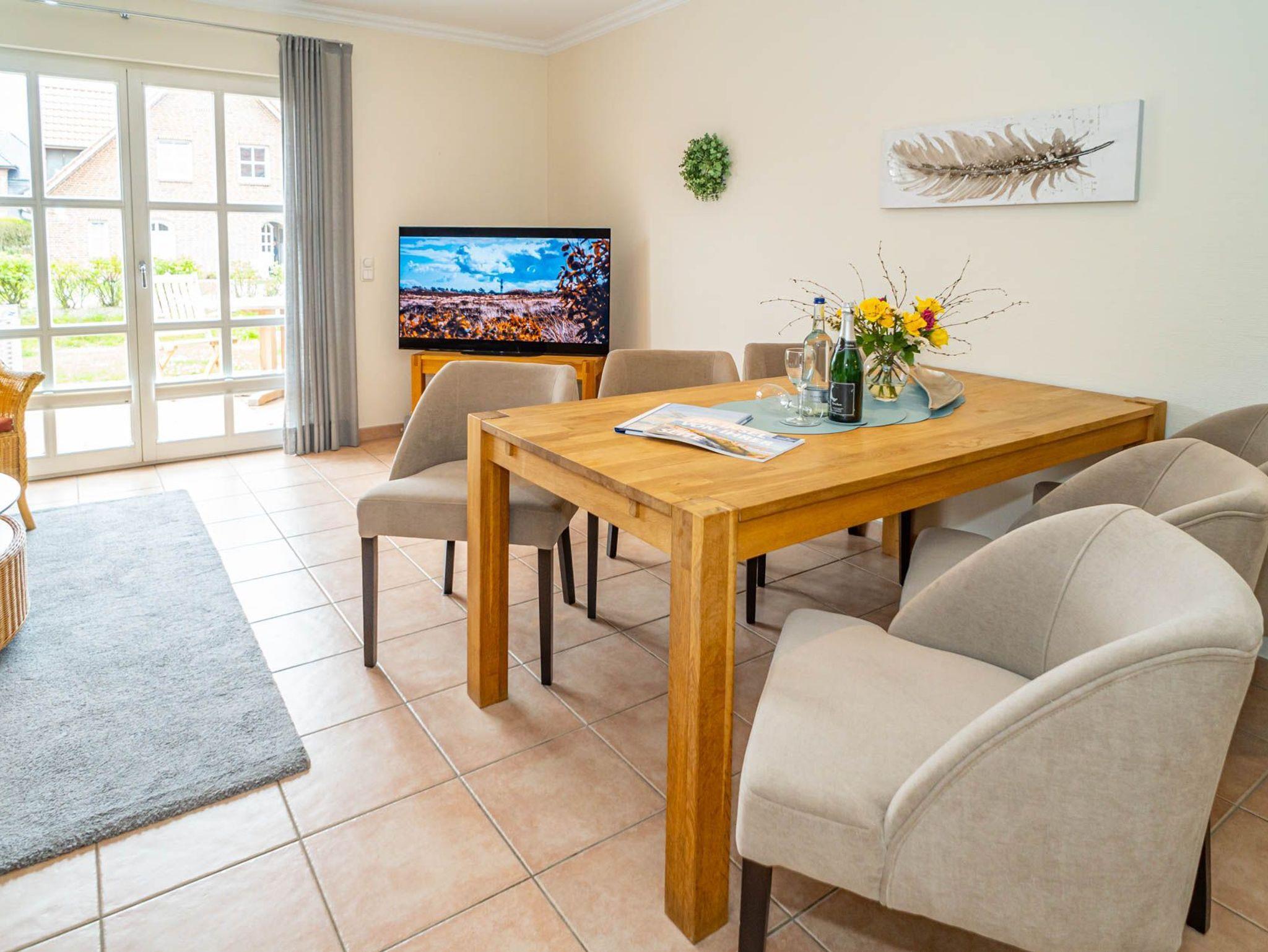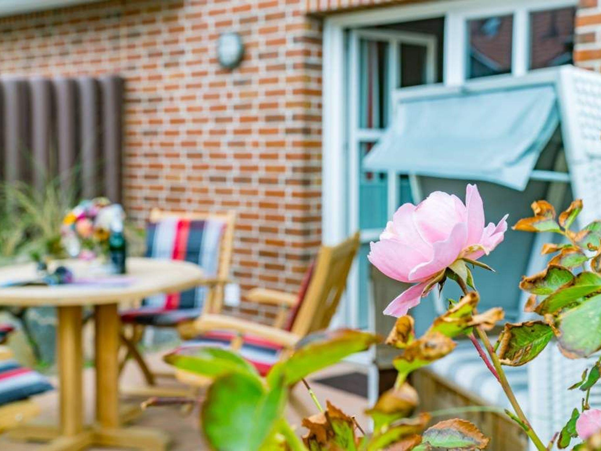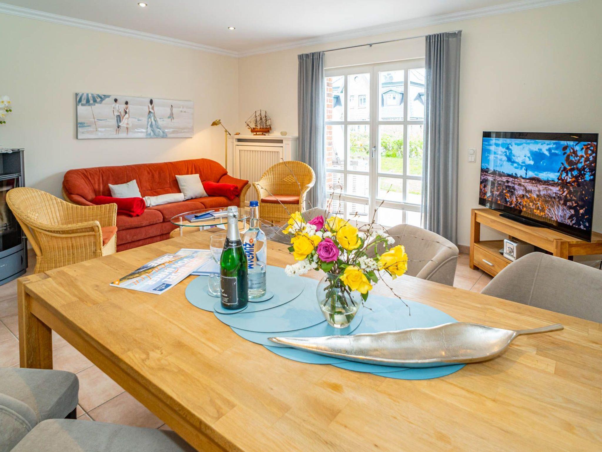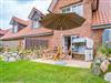Exklusives, großzügiges Nichtraucher-Ferienhausteil ca. 98 qm für max. 6 Personen mit Südterrasse (Strandkorb und Gartenmöbel mit Auflagen).