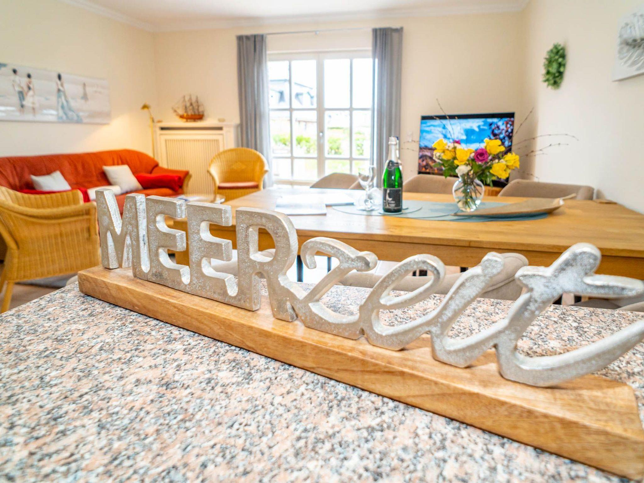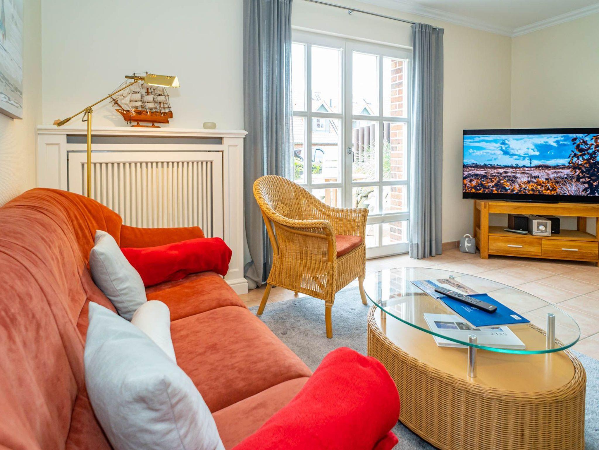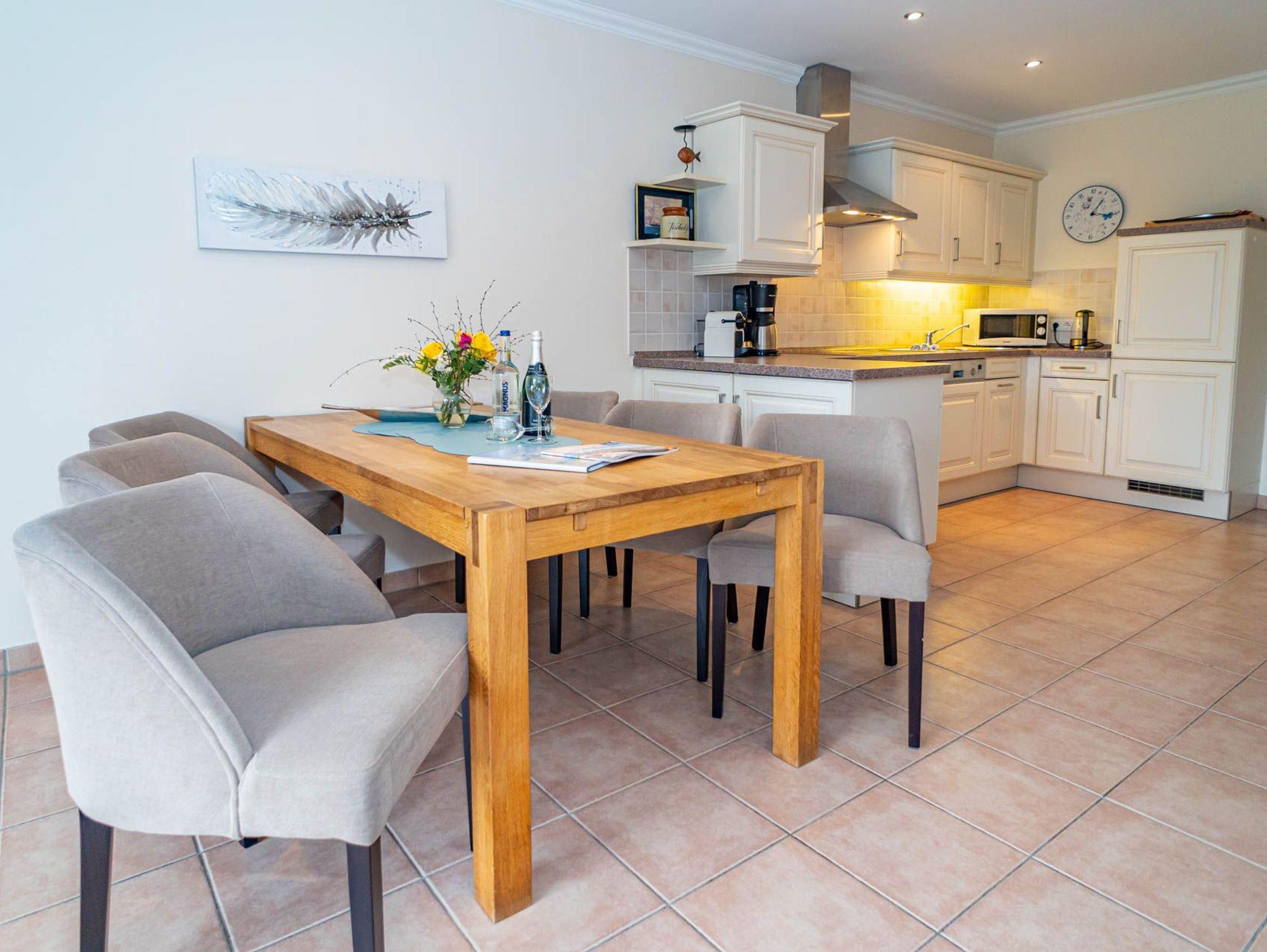 Exklusives, großzügiges Nichtraucher-Ferienhausteil ca. 98 qm für max. 6 Personen mit Südterrasse (Strandkorb und Gartenmöbel mit Auflagen).