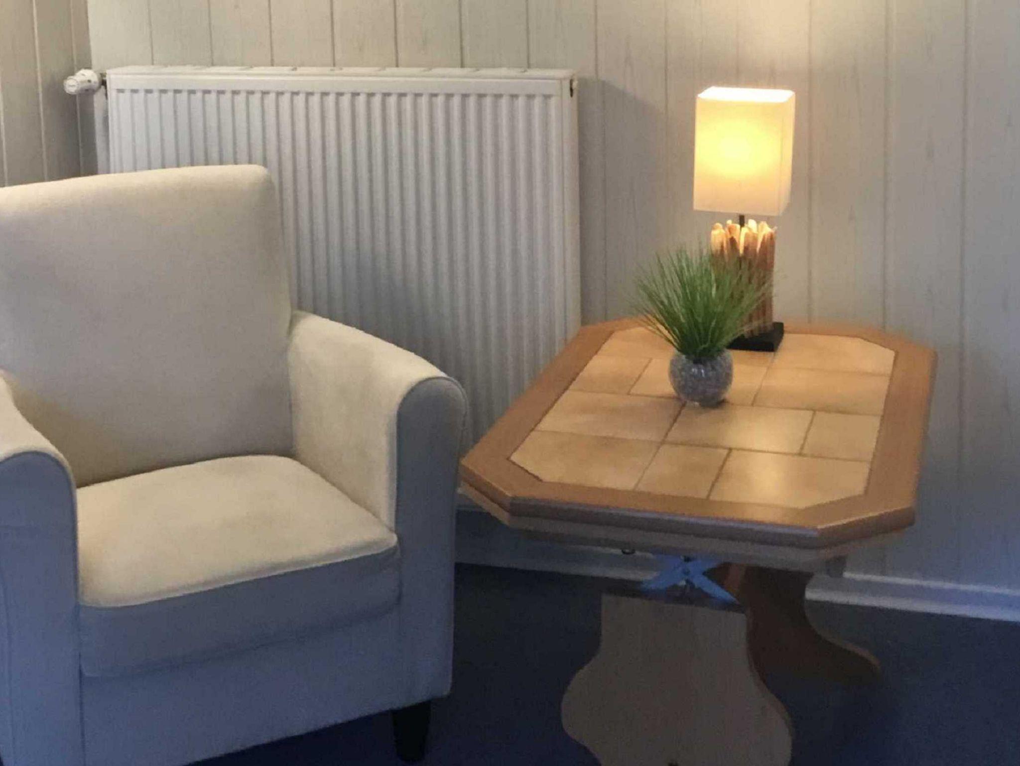 Die 1-Zimmer - Single Wohnung „Peter“ (ca.18m²) für eine Person liegt ebenerdig in einem Bungalowanbau im Garten.