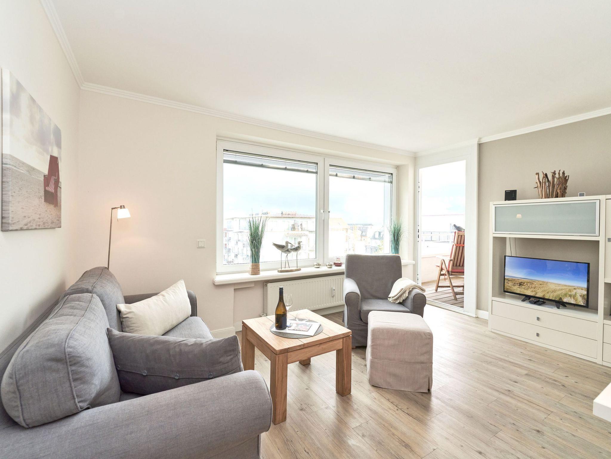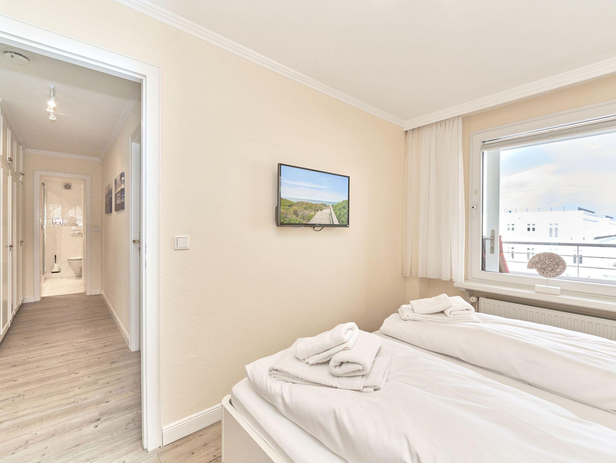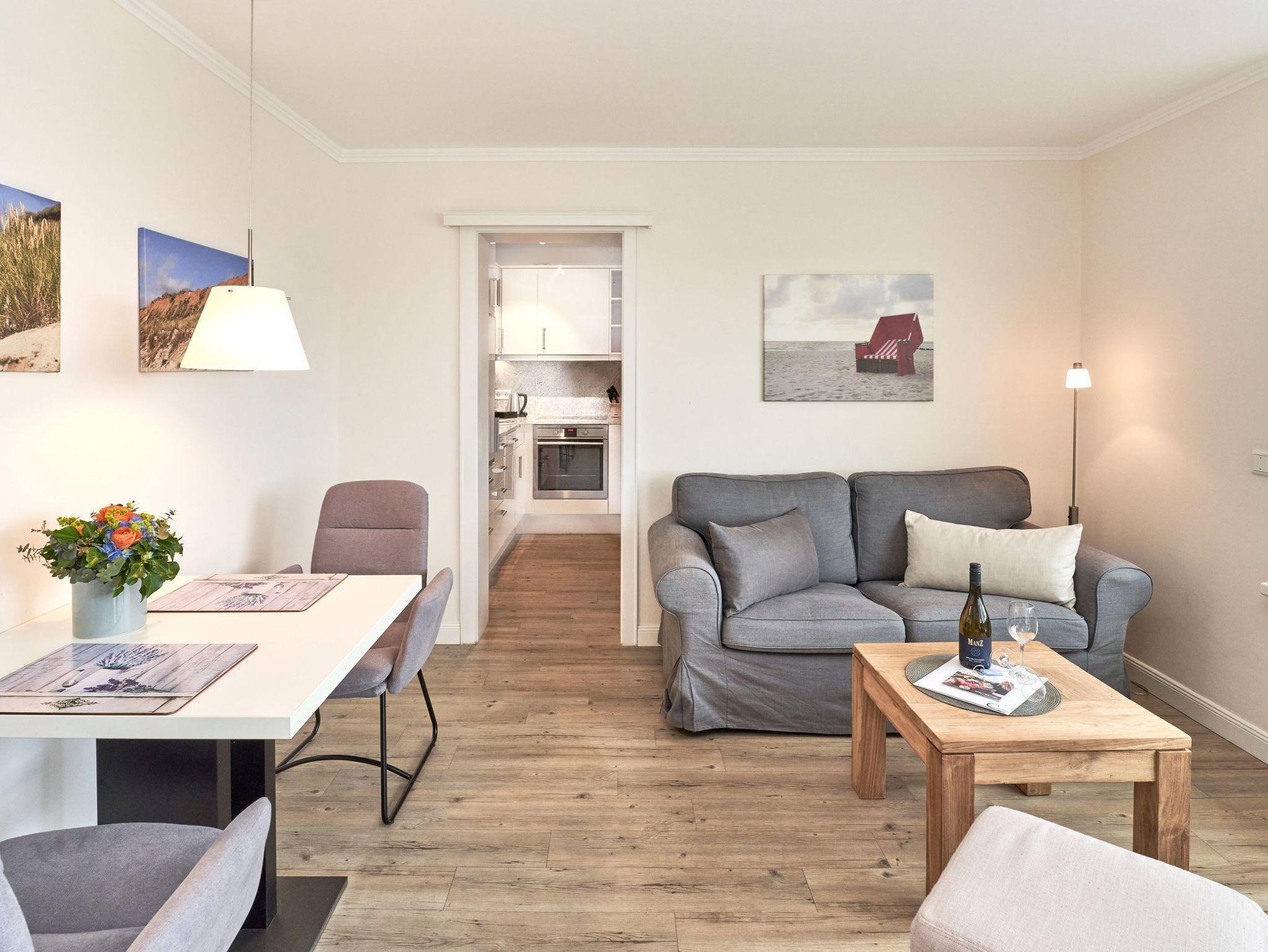 Am Haus Sola Bona parken Sie direkt und kostenlos, ein Aufzug bringt Sie bis auf Ihre Etage. Somit beginnt der schon mal Urlaub entspannt. Das schöne Wohnzimmer mit seinem Essbereich verfügt über einen Flat-TV, eine Sitzgruppe mit Sessel, sowie einen Couchtisch und direkten Zugang zum Balkon, von welchem Sie einen Blick nach Osten zur Keitumer Kirche haben. Liebevoll und im Detail aufeinander abgestimmt ist die Ferienwohnung eingerichtet. Das Schlafzimmer verfügt über ein Doppelbett mit 2 Nachttischschränkchen sowie einen großen Einbauschrank und ist mit Parkettboden ausgelegt. Das freundliche Badezimmer mit Dusche und WC, ist komplett ausgestattet und steht Ihnen für Ihre morgendliche Erfrischung zur Verfügung.