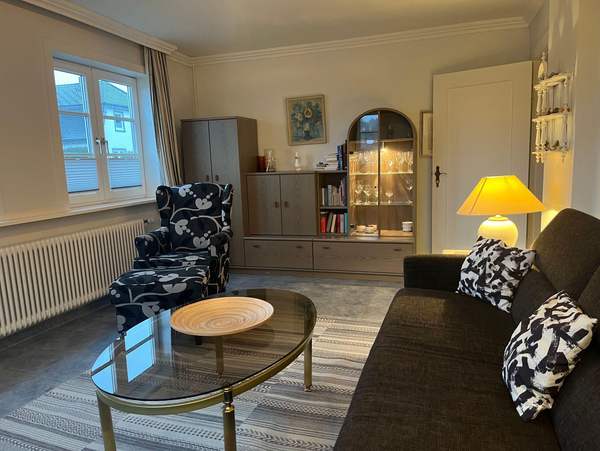 Die Sitzecke im Garten mit hochwertigen Gartenmöbeln und Sylter-Strandkorb ist ideal für das gemütliche Frühstück oder das entspannte Glas Wein am Abend.