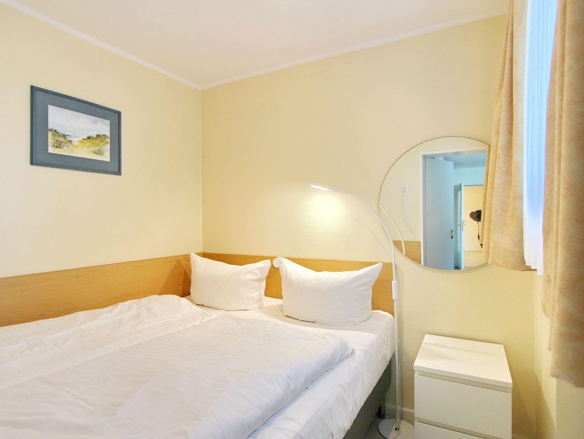 Hell und freundlich eingerichtete Zweizimmerwohnung in der 1. Etage im Haus Eydum mit Balkon zur Westseite. Das Wohnzimmer verfügt über eine Ledercouch und einen Sessel mit Fußhocker, einen Essplatz mit 4 Stühlen , eine Schrankwand mit viel Stauraum und zwei Einzelschrankbetten. Im Schlafzimmer gibt es ein Boxspringbett. In der offenen Küchenzeile mit Mikrowelle und Geschirrspüle können sie sich selbst verpflegen. Das Badezimmer hat eine Dusche. Zur technischen Ausstattung dieser Wohnung gehört: ein Flachbildfernseher, ein Radio mit CD Spieler, sowie ein kostenfreier WLAN Internetzugang (Passwort steht auf der Rückseite des Routers). Nichtraucherwohnung. Wohnungsgröße ca. 45 m².
