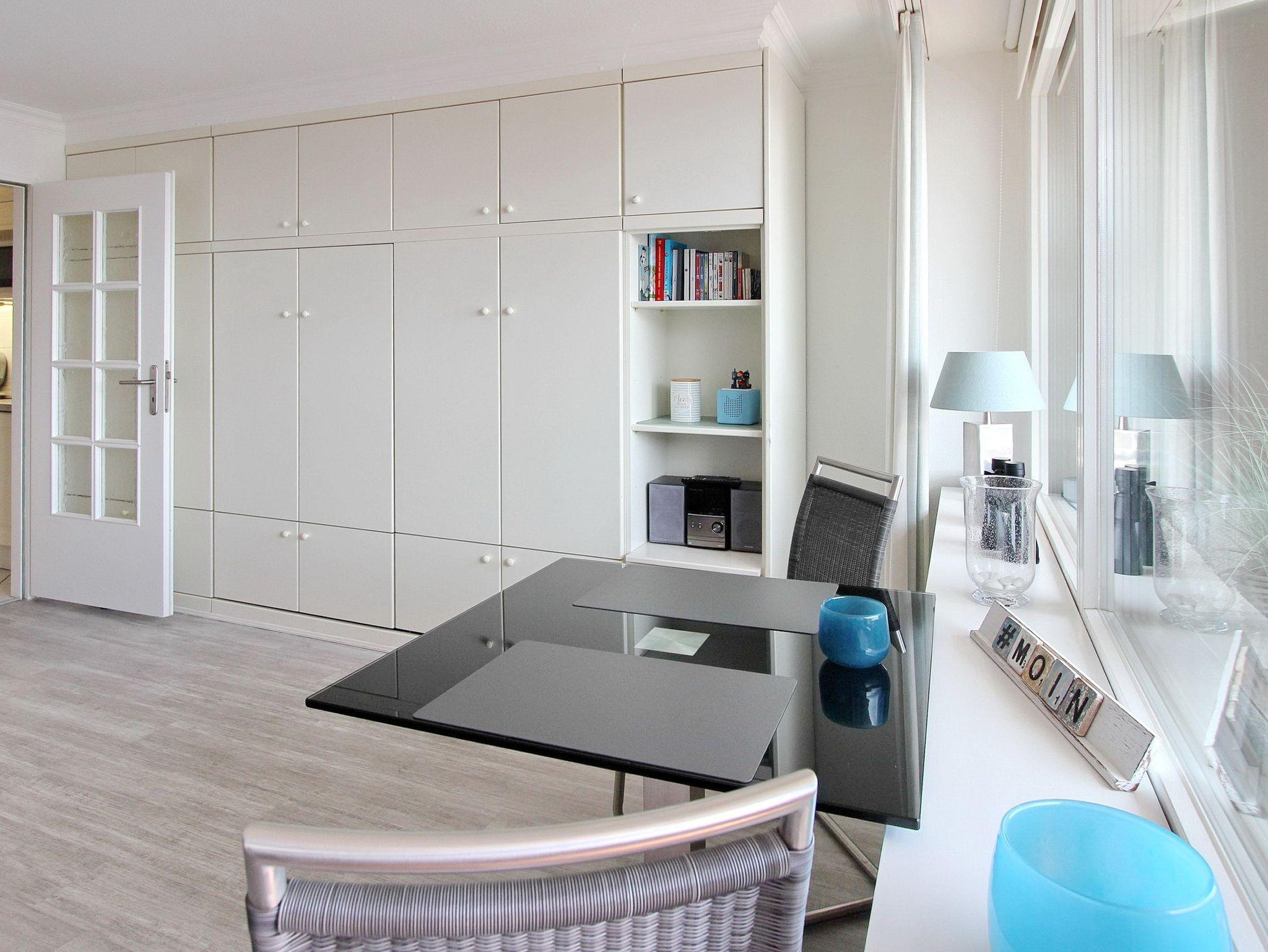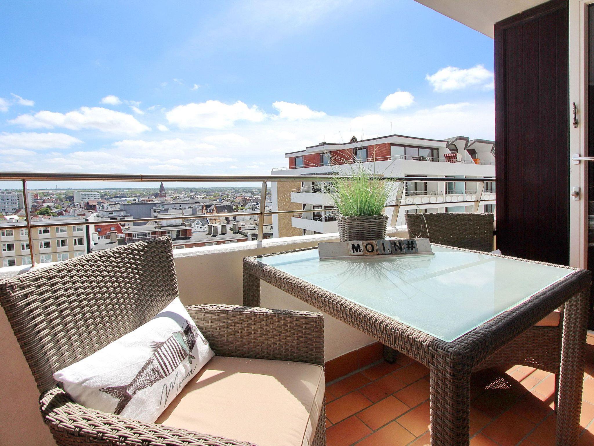 Diese, mit viel Liebe zum Detail eingerichtete, Wohnung befindet sich in der 7. Etage des Haus Metropol und hat einen Ostbalkon mit herrlicher Sicht über die Insel und die Stadt. Bei klarem Wetter können sie sogar das nordfriesische Wattenmeer sehen und auf bequemen Balkonmöbeln (2 Stühlen und ein Tisch) den Blick über die Insel genießen. Der Wohn-/Schlafraum mit Designfussboden in Holzoptik hat Einzelschrankbetten, einen Essplatz am Fenster mit 2 Stühlen sowie eine Couch und einen Sessel. Ausreichend Stauraum für Ihre persönlichen Sachen ist vorhanden und für Ihre Wertsachen gibt es einen kleinen Safe. Das Badezimmer hat eine Eckdusche, ein großes Waschbecken, einen Schminkspiegel, Duschhocker, mobilen Haltegriff, einen Handtuchtrockner und Fön. Um sich selbst zu verpflegen gibt es im Flur eine Einbauküche mit Geschirrspüler, ein 2 Platten Cerankochfeld, eine Mikrowellen/Backkombination sowie eine zusätzliche Nespresso Kaffeemaschine. Zur technischen Ausstattung gehört: ein 40 Zoll Smart TV von Panasonic, eine Microanlage von Sony mit CD Player, ein Radio mit Bluetoothlautsprecher, ein Blue Ray Player und ein Telefon mit Flatrate ins dt. Festnetz. Für die kleinen Sylturlauber steht eine Spielzeugkiste und eine Toniebox zur Verfügung. Der Eigentümer verfügt über einen eigenen Internetanschluss (Zugangsdaten in der Wohnung) den Sie kostenfrei nutzen können. Arbeiten, streamen ... alles kein Problem in dieser ca. 30 m² großen Nichtraucherwohnung.