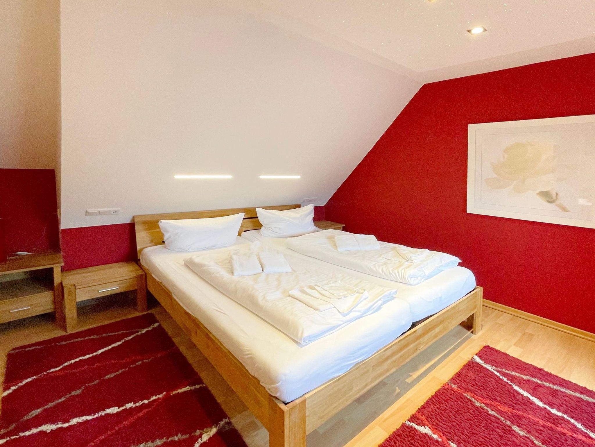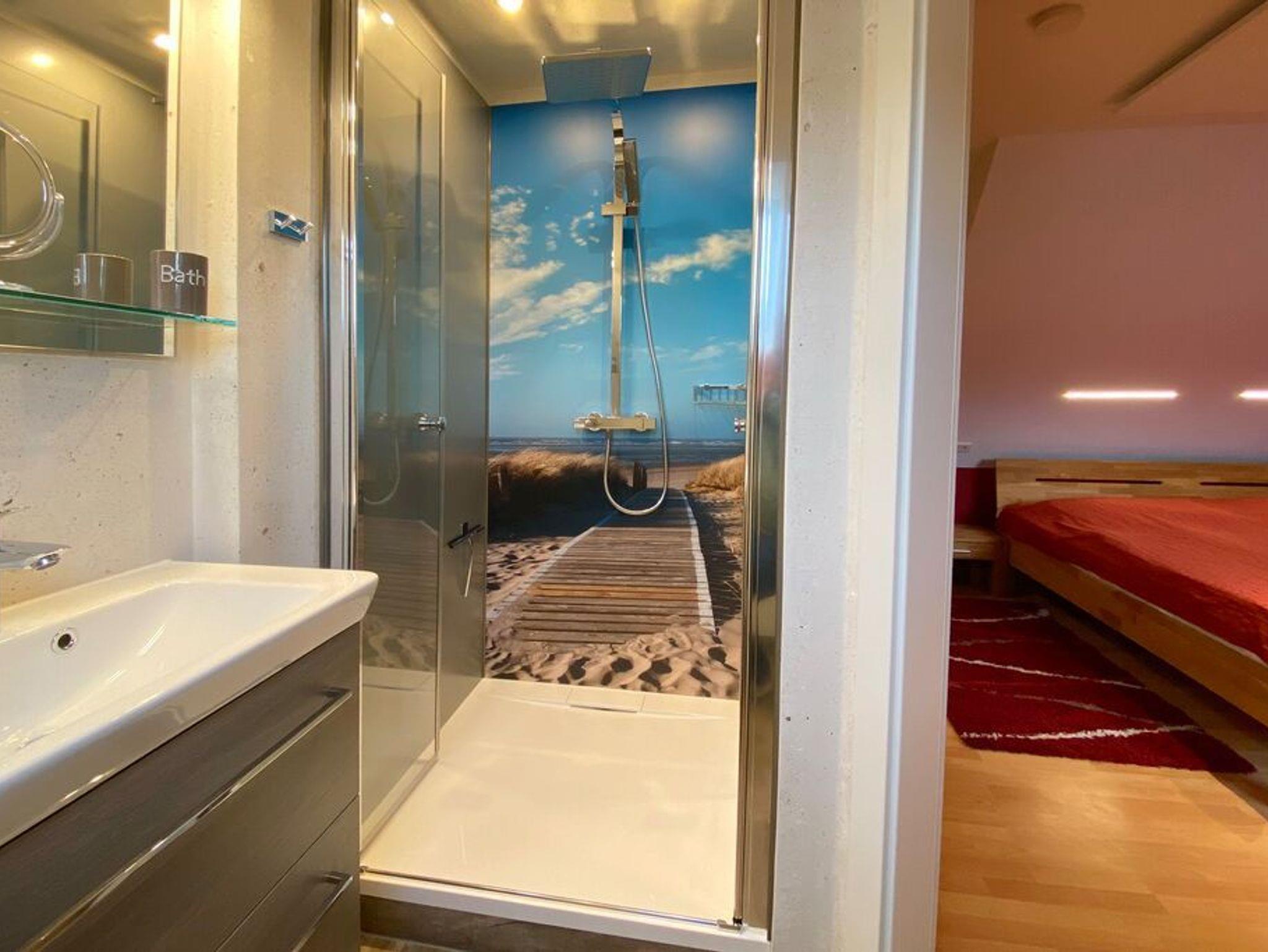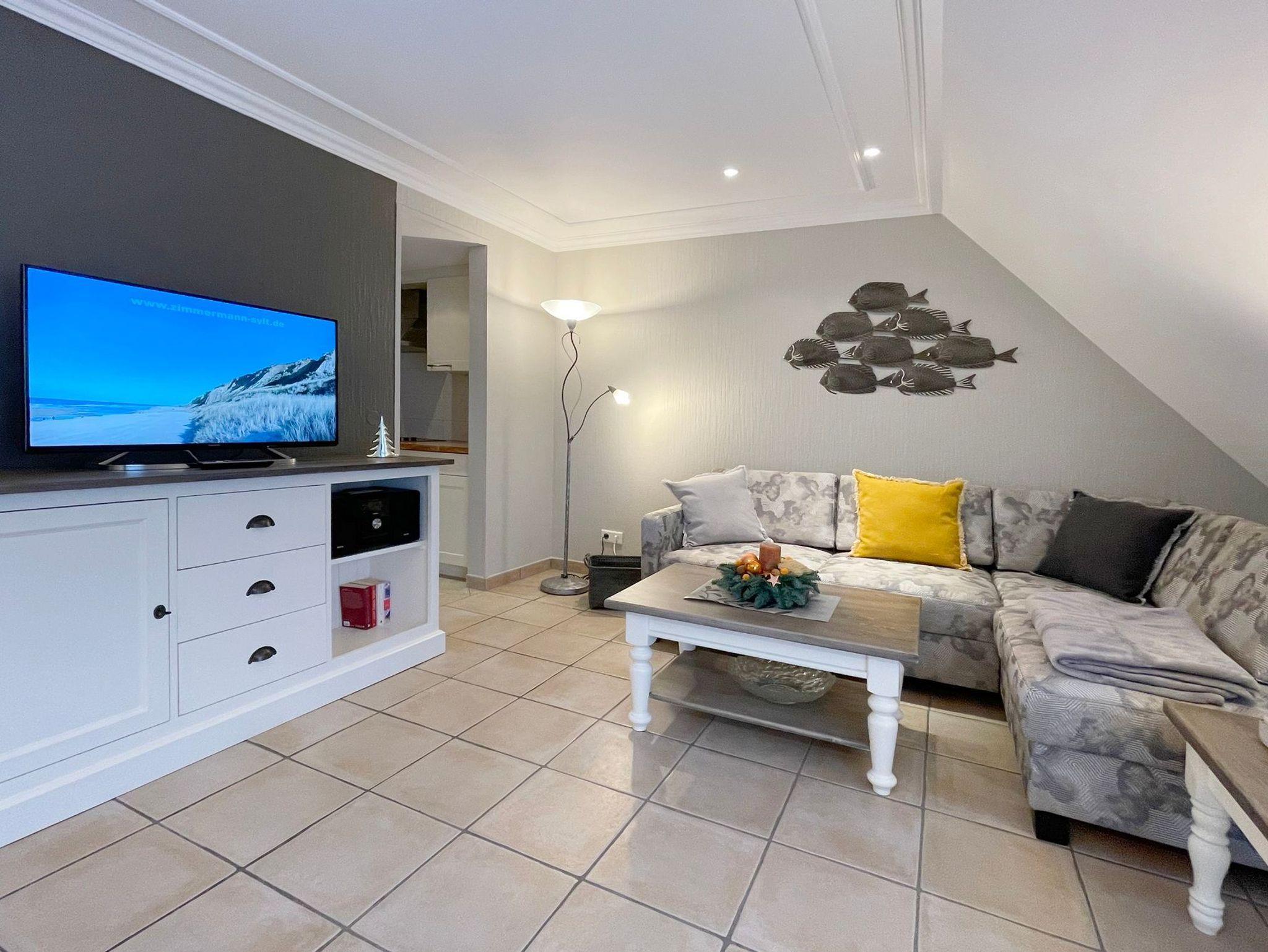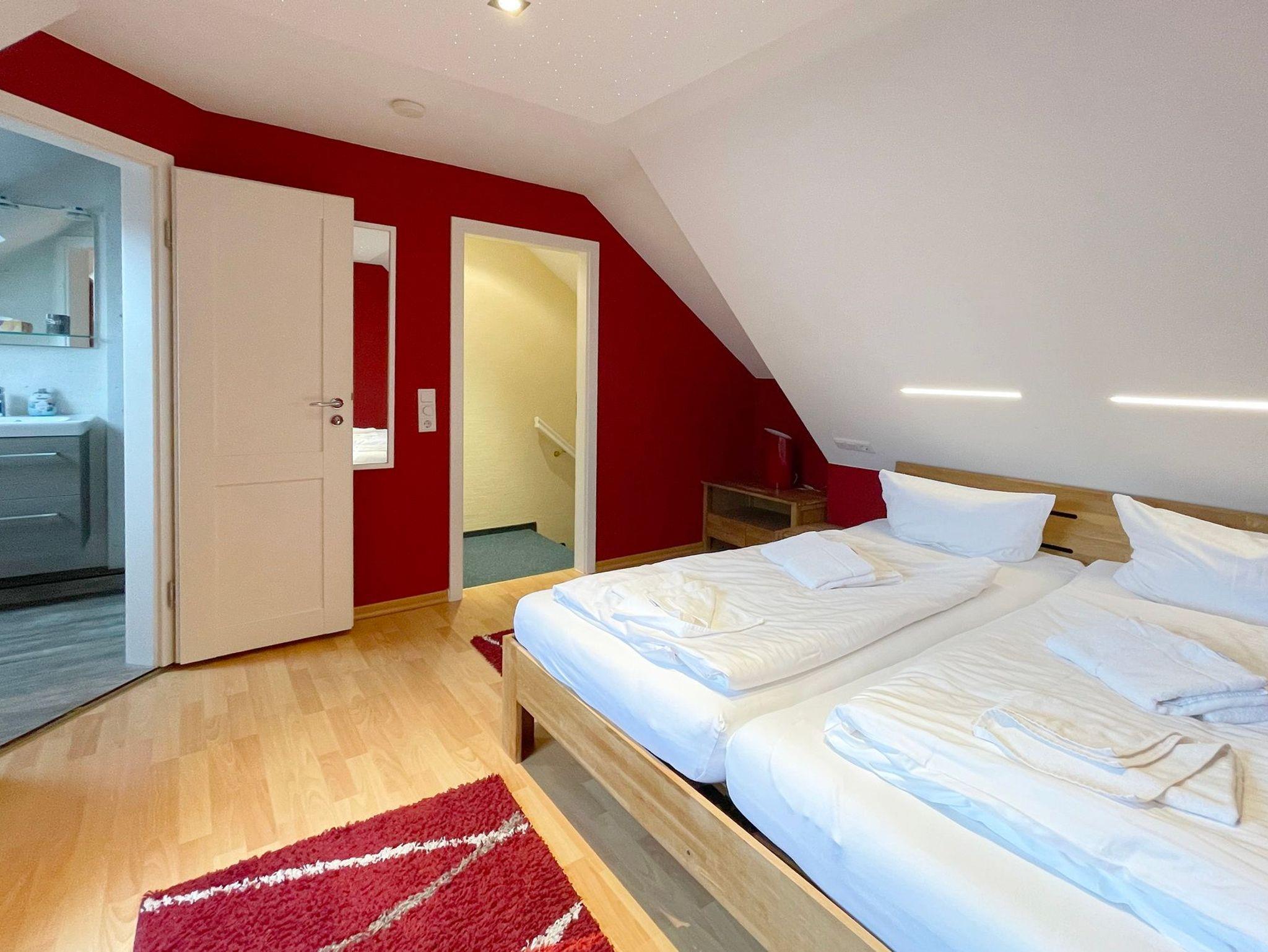 3 Zimmerwohnung mit Balkon (OG und DG), Wohnzimmer mit gemütlicher Sitzgruppe und Eßecke, offene Küche mit Cerankochfeld, und Geschirrspüler, Flatscreen-TV, 2 Schlafzimmer für je 2 Personen mit jeweils eigenem Badezimmer mit Dusche WC und Waschbecken, im UG befinden sich für die Gäste des Hauses Waschmaschine und Trockner gegen Gebühr. 1 PKW-Stellpaltz. Gerne dürfen Sie hier ein gut erzogenes Haustier mitbringen. Dafür wird dann eine einmalige Haustiergebühr berechnet.