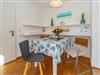 Die separate Einbauküche besitzt einen Geschirrspüler, ein Ceranfeld, eine Mikrowelle und einen Kühlschrank (ohne Gefrierfach). Kaffeemaschine, Wasserkocher und Toaster gehören zur Grundausstattung.