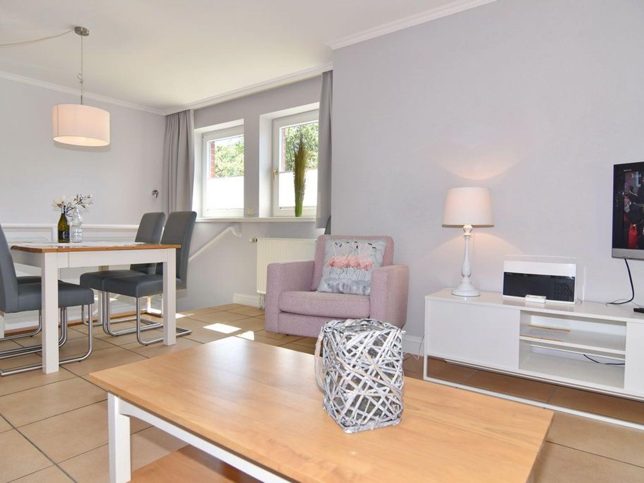 Schicke 3-Zimmer-Ferienwohnung mit Westterrasse im Haus Eva. Ca. 70m². Nichtraucher! EG: Wohnzimmer mit Couch und 2 Sesseln, Essplatz, Flat-TV, Stereo / CD / DVD. Separate Küche mit Geschirrspüler und Backofen, Gäste-WC. UG: 2 Schlafzimmer mit Boxspringbetten (180 x 200, 1 davon mit TV), sowie 1 Duschbad/WC. PKW-Stellplatz Nr. 7 kostenlos (bitte anmelden), Strandkorb (Apr.-Okt.), Tierhaltung ist im EG gestattet, bitte anmelden (keine Kampfhunde). Im Haus: Kostenlose Nutzung von Schwimmbad und Finnischer Sauna. - Waschküche gegen Gebühr. W-Lan (ohne Gewähr). Bettwäsche und Handtücher sind zur Anreise aufgezogen!