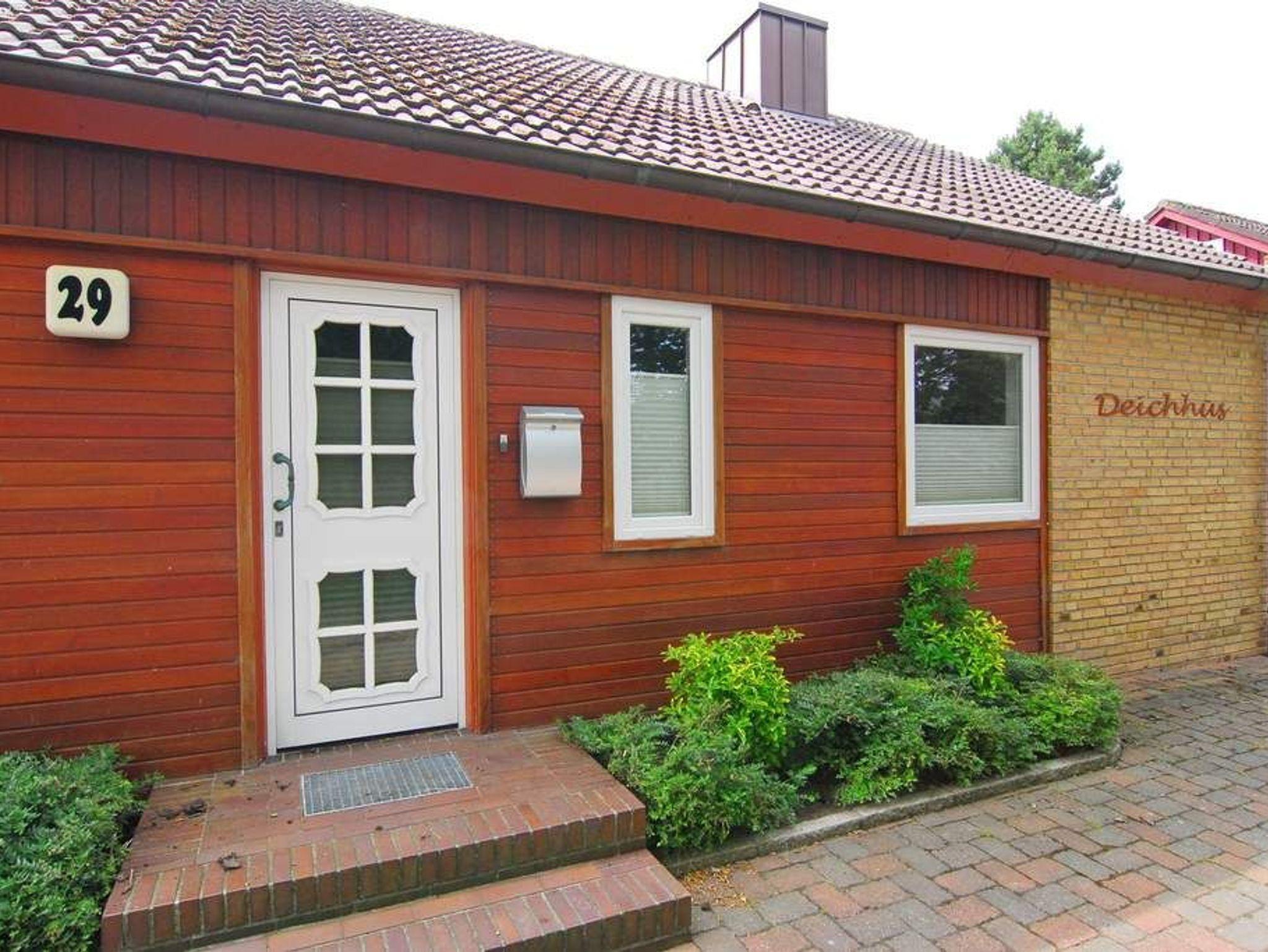 Das Ferienhaus Deichhüs bietet 100 m² auf einer Ebene (EG) in absolut ruhiger Lage. Nichtraucher-Haus! Großes Wohnzimmer mit Leder-Sitzgarnitur, Essplatz, Flat-TV, Zugang zur möblierten Südterrasse und großen Garten, Zugang zu Schlafzimmer mit Doppelbett und Kleiderschrank. Internetzugang (ohne Gewähr) Weiteres Schlafzimmer mit Doppelbett, Einbauschrank und Flat-TV, Duschbad / WC, separate Küche mit Backofen, Mikrowelle und Geschirrspüler. HW-Raum mit Waschmaschine und Trockner. Pkw-Stellplatz am Haus. Tierhaltung ist gestattet und muss angemeldet werden. Bettwäsche und Handtücher sind zur Anreise aufgezogen.