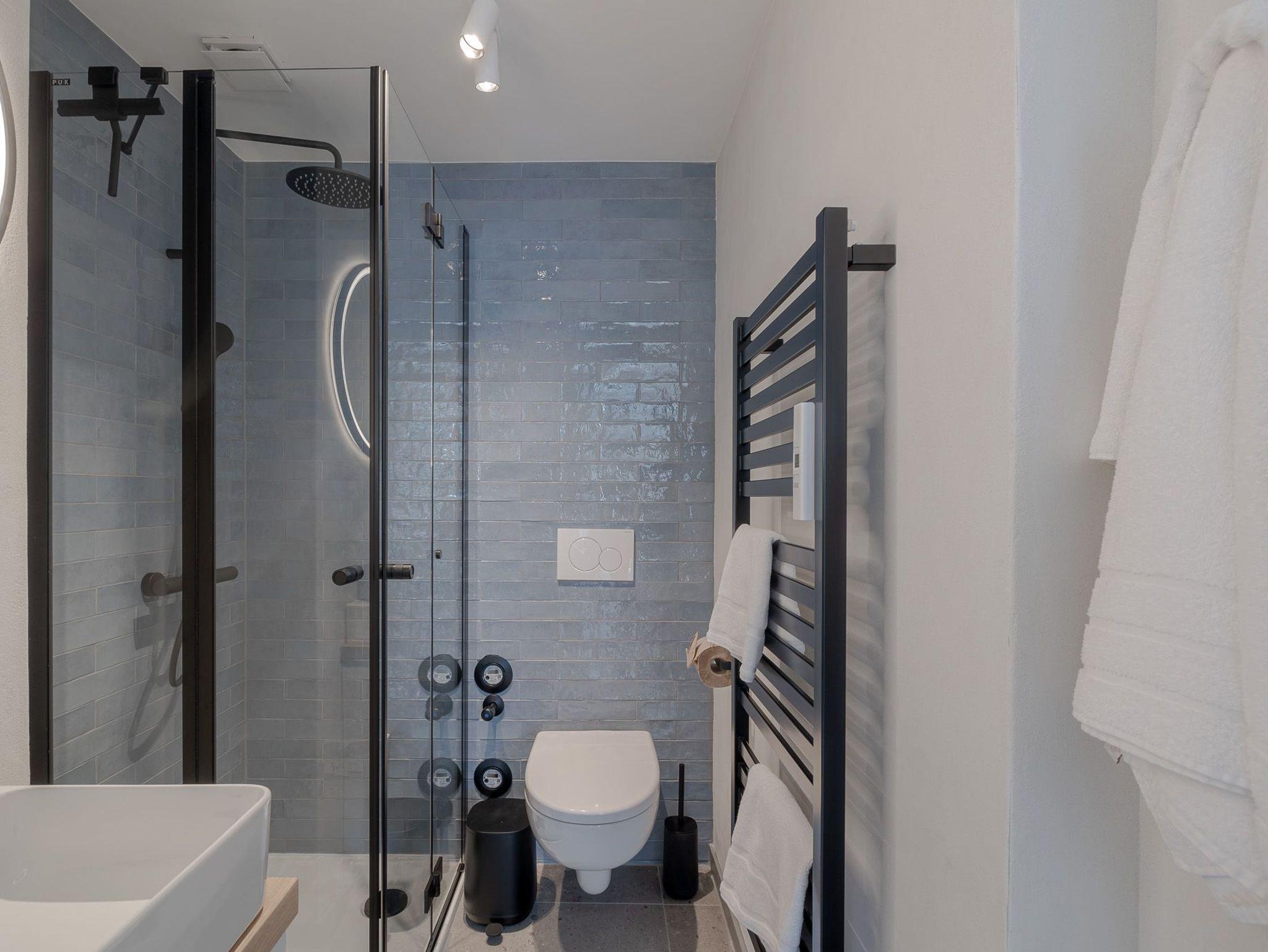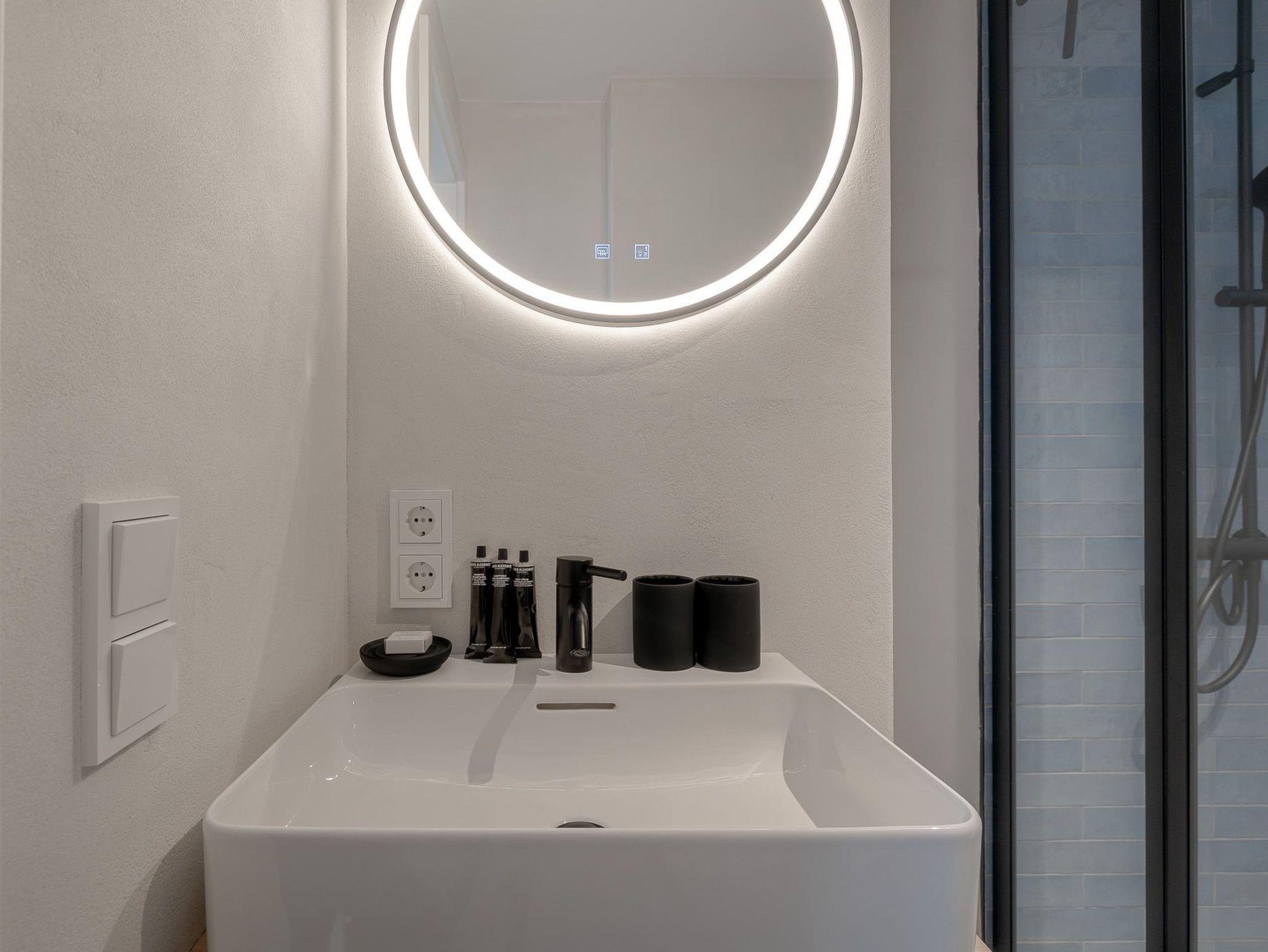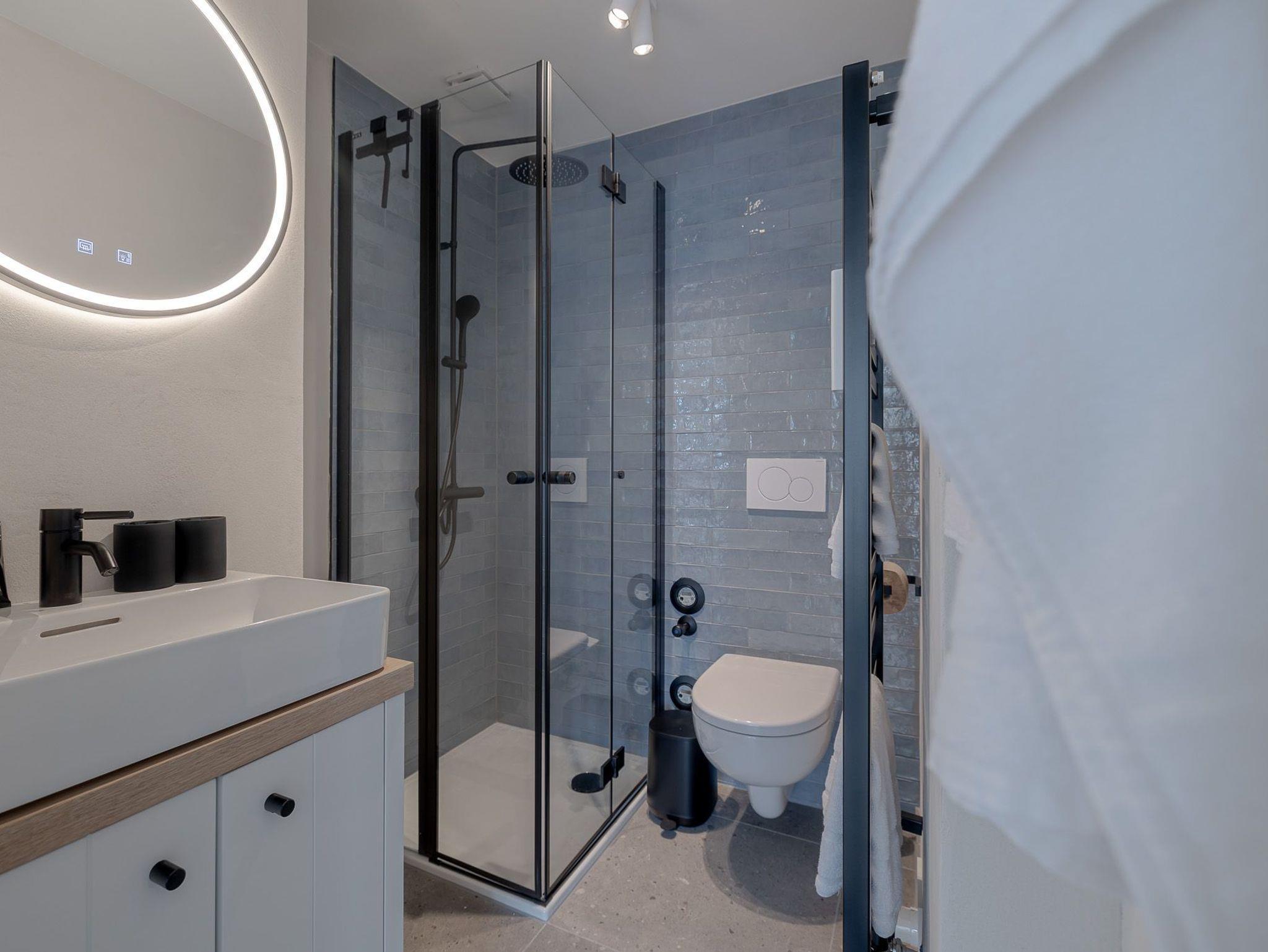 Ihre kleine Wellnessoase, das Bad, ist von hier aus ebenfalls erreichbar. Starten Sie frisch und gut gelaunt den neuen Tag, indem Sie die große, prickelnde Regendusche genießen. Sollte es mal kühler auf unserer Insel sein, kein Problem: die Fußbodenheizung und der praktische Handtuchwärmer sorgen für wohlige Gefühle.