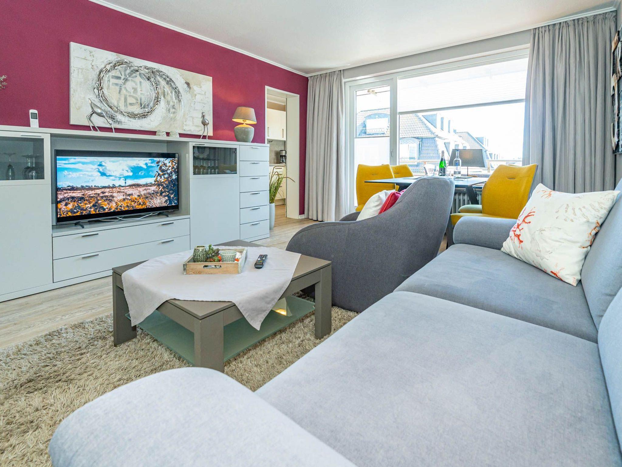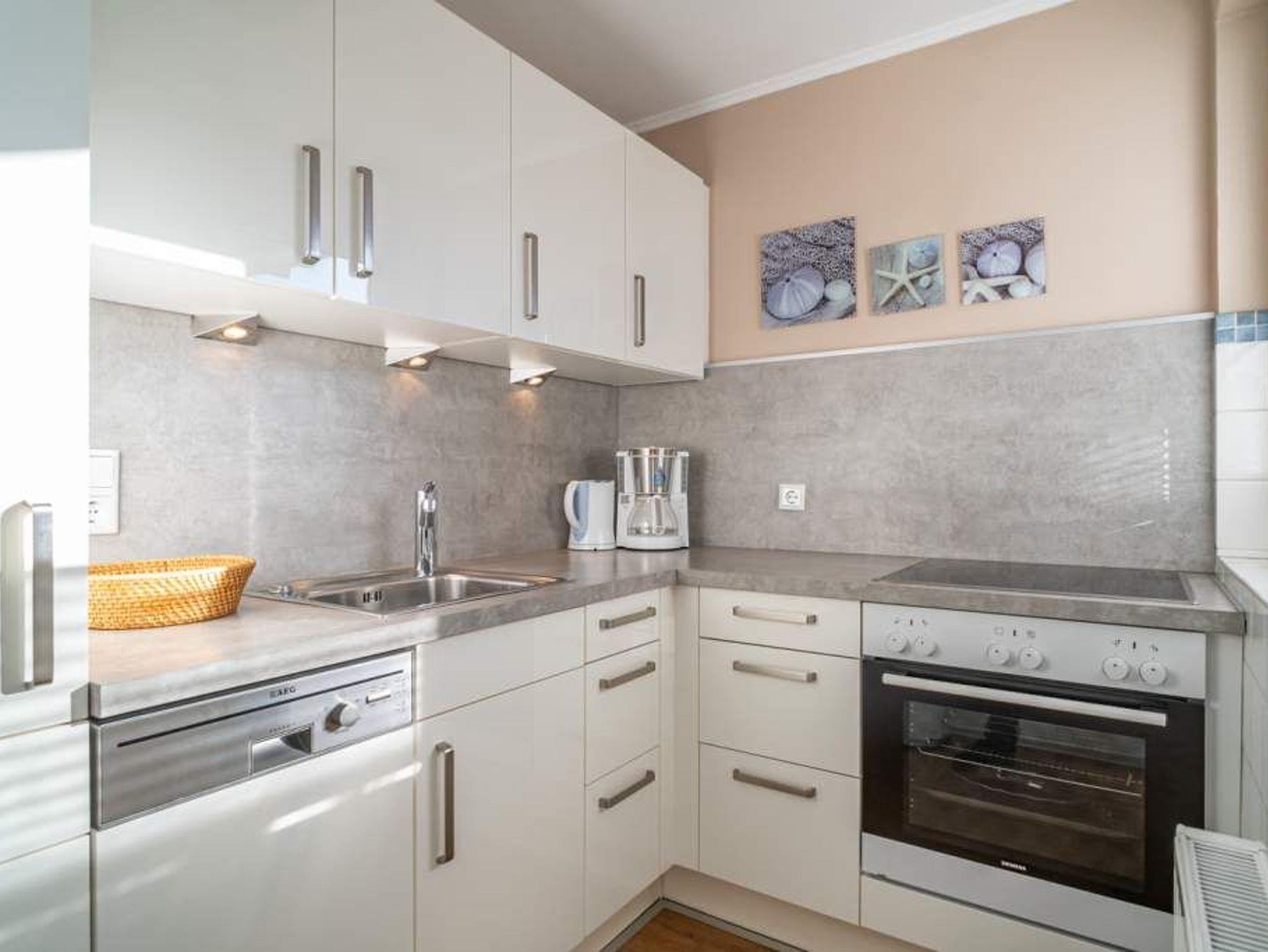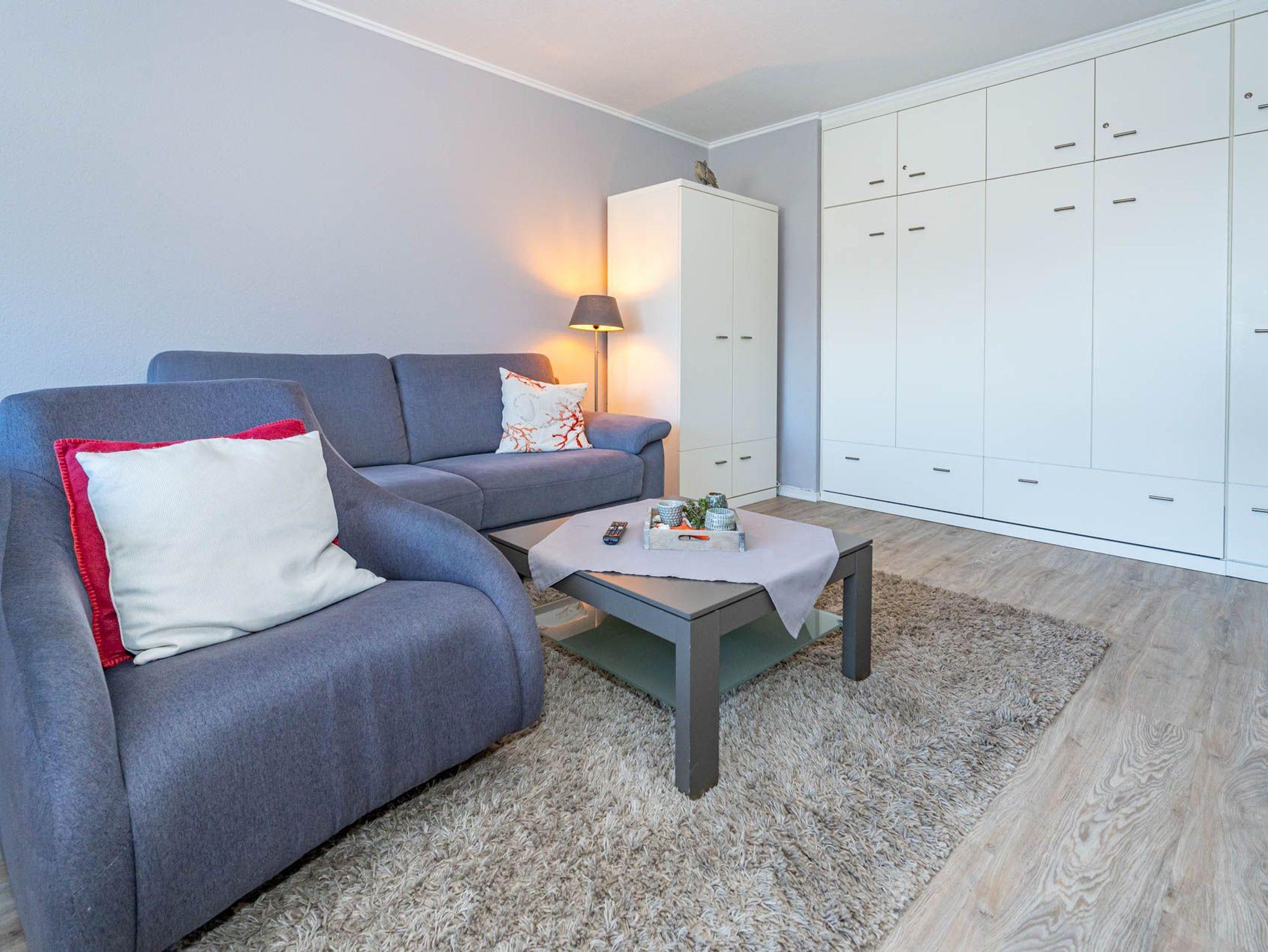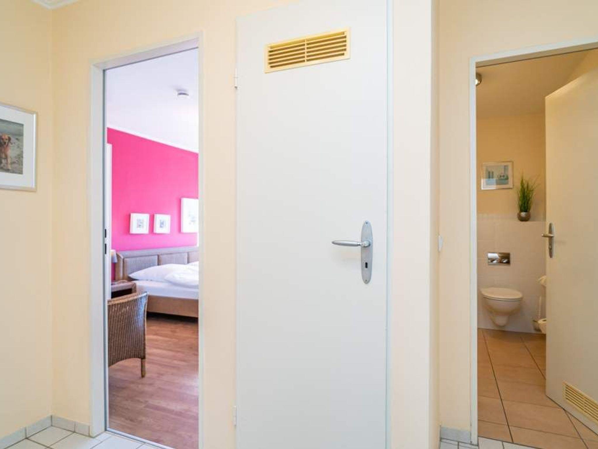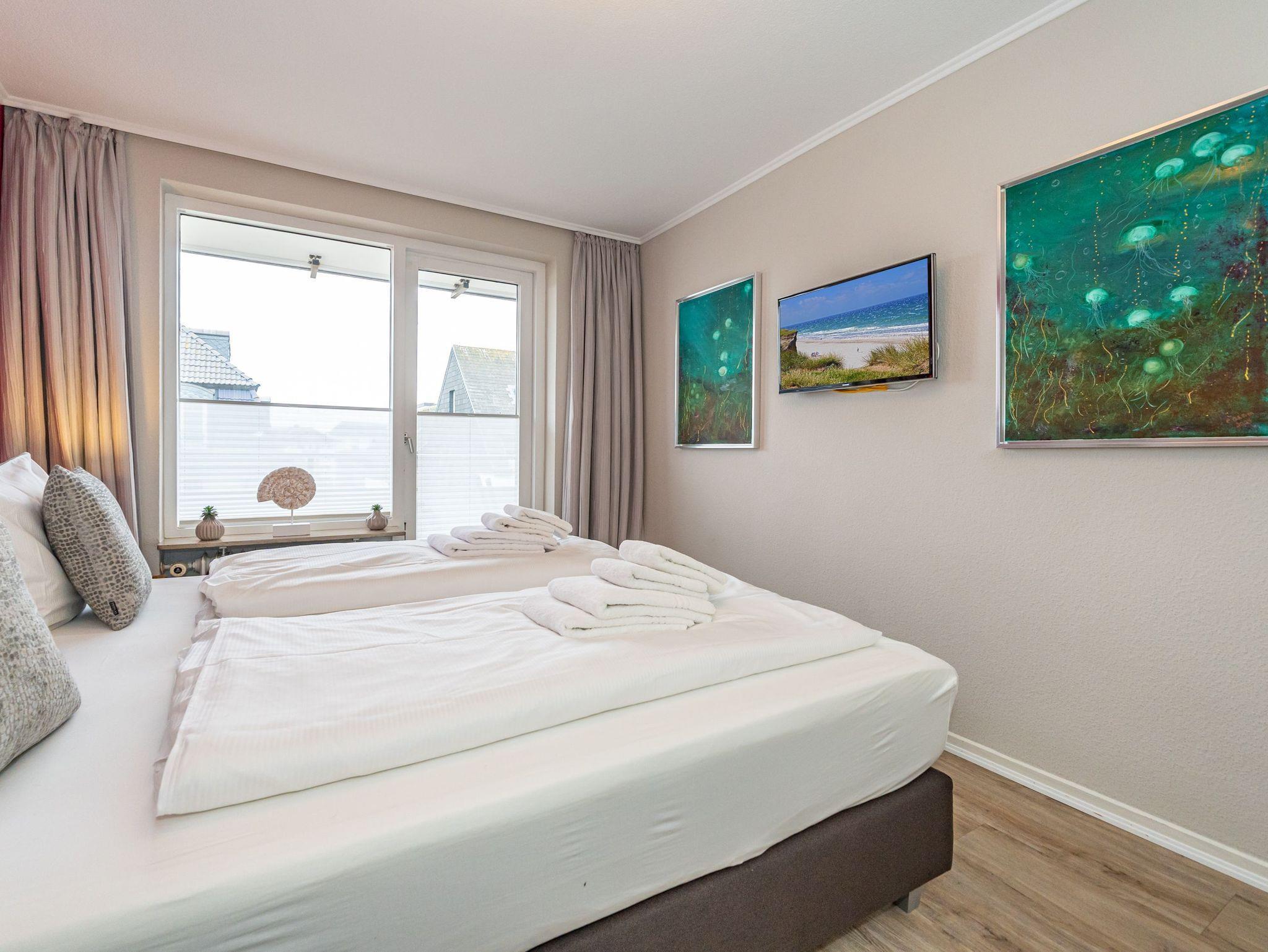 Diese moderne 2-Zimmer-Nichtraucher-Ferienwohnung (ca. 58 qm) in der 2. Etage bietet komfortablen Wohnraum für bis zu 4 Personen. Im Schlafzimmer erwartet Sie ein gemütliches Doppelbett, bestehend aus zwei Einzelmatratzen (je 0,90 x 2,00 m), ergänzt durch stilvolle Nachttische und einen eleganten Sessel in Loom-Ausführung. Das Wohnzimmer überzeugt mit Doppelschrankbetten (je mit Einzelmatratzen von 1,70 x 0,90 m), einem Sat-Flachbild-TV, Telefon und WLAN ? ideal für flexible Schlafmöglichkeiten und entspannte Abende. Die offene Küche, die ohne trennende Tür direkt in den Wohnbereich integriert ist und über ein Fenster verfügt, lässt keine Wünsche offen: Ausgestattet mit Backofen, Cerankochfeld, Kühlschrank mit Eisfach, Geschirrspüler, Kaffeemaschine, Wasserkocher und Toaster, bietet sie alles, was Sie für die Zubereitung Ihrer Lieblingsgerichte benötigen. Das moderne Duschbad/WC rundet das Raumkonzept ab.