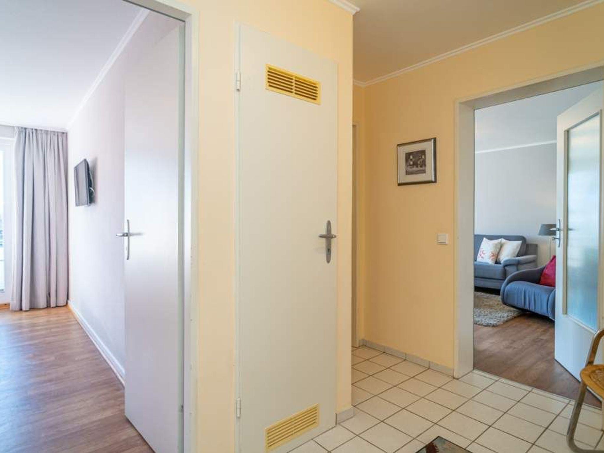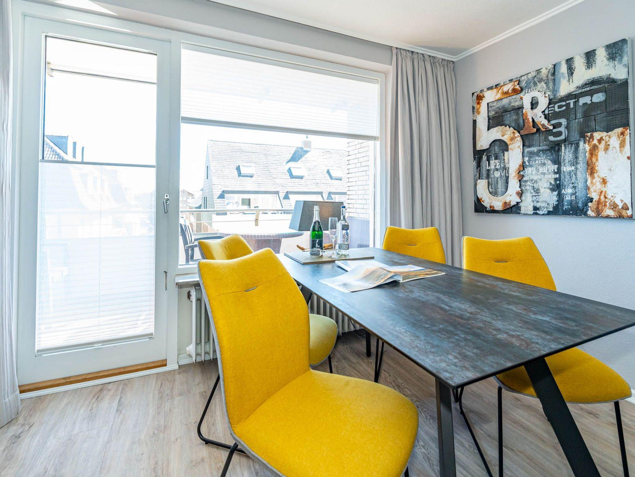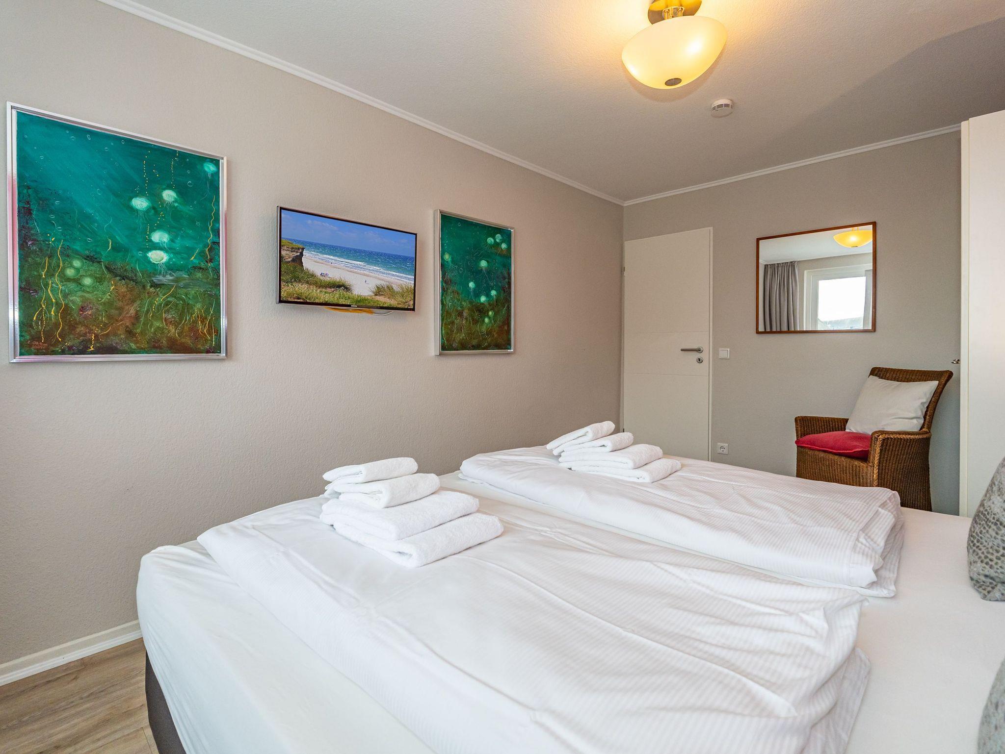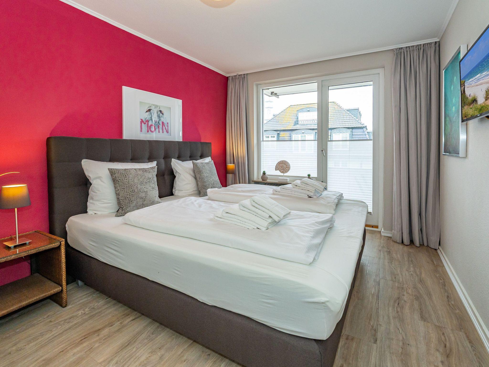 Diese moderne 2-Zimmer-Nichtraucher-Ferienwohnung (ca. 58 qm) in der 2. Etage bietet komfortablen Wohnraum für bis zu 4 Personen. Im Schlafzimmer erwartet Sie ein gemütliches Doppelbett, bestehend aus zwei Einzelmatratzen (je 0,90 x 2,00 m), ergänzt durch stilvolle Nachttische und einen eleganten Sessel in Loom-Ausführung. Das Wohnzimmer überzeugt mit Doppelschrankbetten (je mit Einzelmatratzen von 1,70 x 0,90 m), einem Sat-Flachbild-TV, Telefon und WLAN ? ideal für flexible Schlafmöglichkeiten und entspannte Abende. Die offene Küche, die ohne trennende Tür direkt in den Wohnbereich integriert ist und über ein Fenster verfügt, lässt keine Wünsche offen: Ausgestattet mit Backofen, Cerankochfeld, Kühlschrank mit Eisfach, Geschirrspüler, Kaffeemaschine, Wasserkocher und Toaster, bietet sie alles, was Sie für die Zubereitung Ihrer Lieblingsgerichte benötigen. Das moderne Duschbad/WC rundet das Raumkonzept ab.