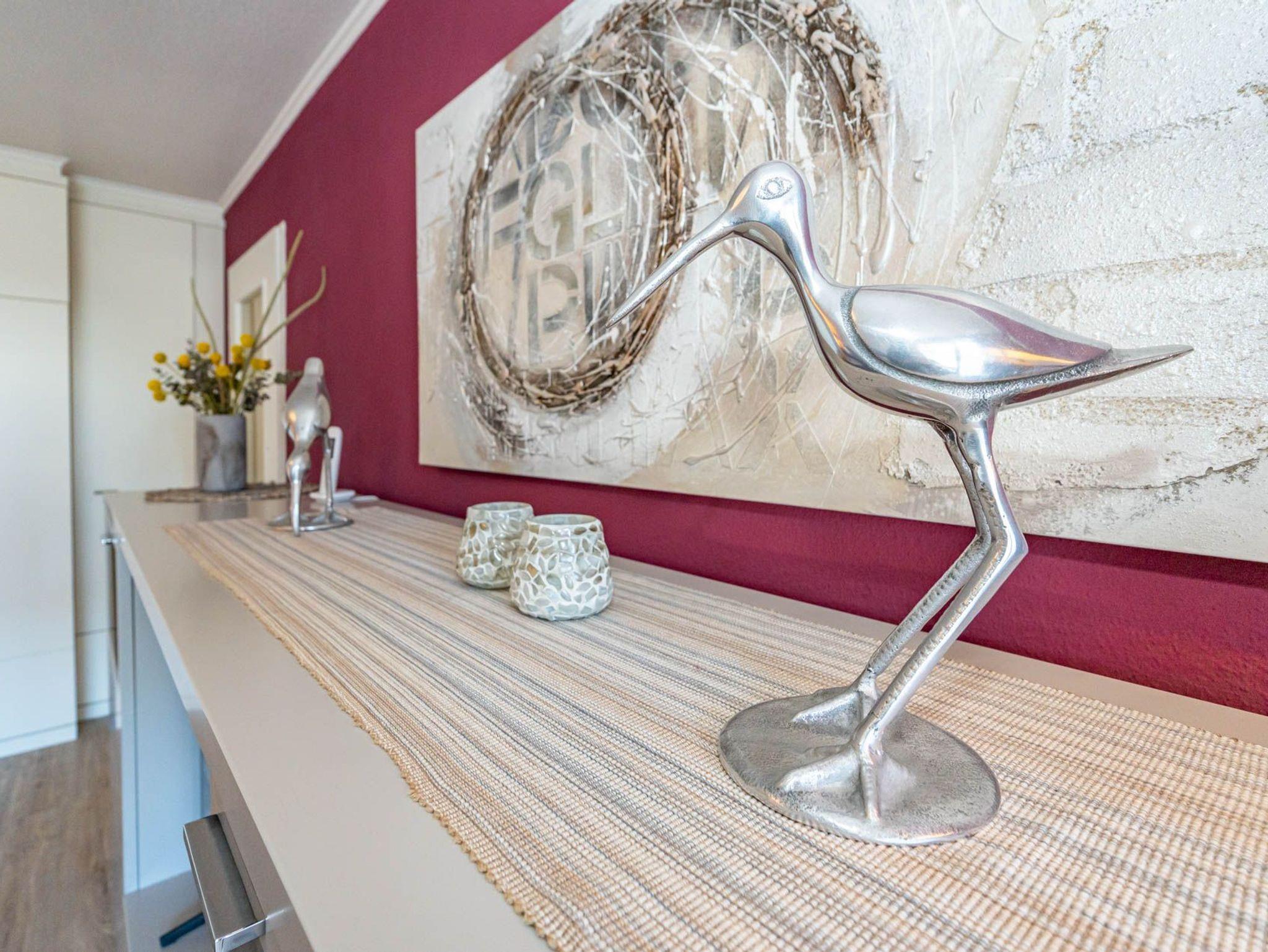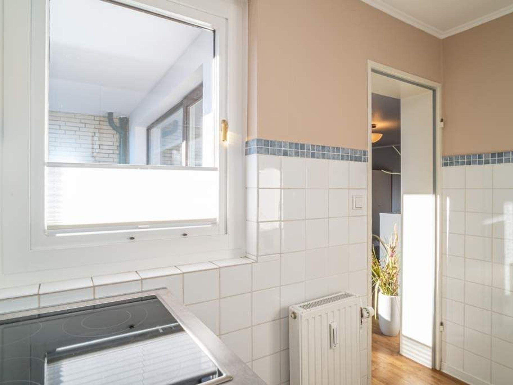 Diese moderne 2-Zimmer-Nichtraucher-Ferienwohnung (ca. 58 qm) in der 2. Etage bietet komfortablen Wohnraum für bis zu 4 Personen. Im Schlafzimmer erwartet Sie ein gemütliches Doppelbett, bestehend aus zwei Einzelmatratzen (je 0,90 x 2,00 m), ergänzt durch stilvolle Nachttische und einen eleganten Sessel in Loom-Ausführung. Das Wohnzimmer überzeugt mit Doppelschrankbetten (je mit Einzelmatratzen von 1,70 x 0,90 m), einem Sat-Flachbild-TV, Telefon und WLAN ideal für flexible Schlafmöglichkeiten und entspannte Abende. Die offene Küche, die ohne trennende Tür direkt in den Wohnbereich integriert ist und über ein Fenster verfügt, lässt keine Wünsche offen: Ausgestattet mit Backofen, Cerankochfeld, Kühlschrank mit Eisfach, Geschirrspüler, Kaffeemaschine, Wasserkocher und Toaster, bietet sie alles, was Sie für die Zubereitung Ihrer Lieblingsgerichte benötigen. Das moderne Duschbad/WC rundet das Raumkonzept ab.