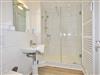 Das neue helle Duschbad ist mit einem Waschtisch, Handtuchtrockner, Dusche mit extraflachem Einstieg und WC ausgestattet.