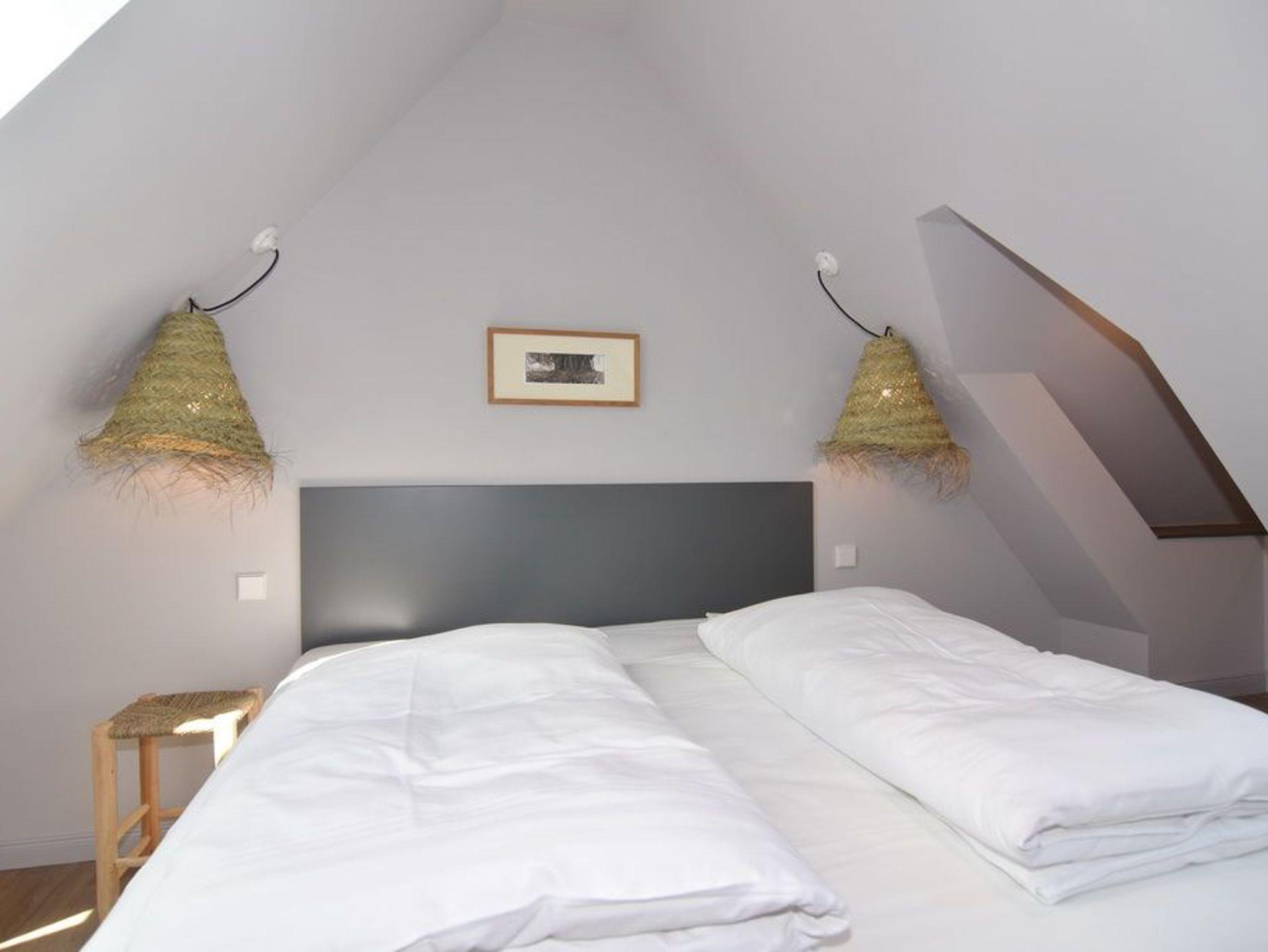 Direkt hinter den Dünen gelegen und dem Strand ganz nah. Hier wohnen Sie in einer 5-Zimmer-Maisonette-Wohnung mit ca. 88qm. Zentrum der Wohnung ist die wunderschöne Wohnküche mit einem Essplatz für bis zu 6 Personen. Die Küche verfügt über Geschirrspüler und Backofen. Auf selber Ebene befinden sich zwei Schlafzimmer jeweils mit Doppelbett (160x200), Kleiderschrank / Spint und TV. Auf dieser Ebene befindet sich ein Duschbad / WC, ein Duschbad /WC ensuite und ein großzügiger Eingangsbereich. Aus der Wohnküche geht eine offene Metalltreppe ins Dachgeschoß (Achtung: offenes Treppengeländer, für Kleinkinder nicht geeignet). Hier befindet sich ein weiterer Schlafraum mit Doppelbett (180x200), TV und Kommode, ein Gäste-WC und der Wohnbereich mit gemütlicher Sitzgruppe, TV und großen, bodentiefen Veluxfenstern. Waschmaschine, Internet ist vorhanden. Bettwäsche und Handtücher sind zur Anreise aufgezogen. Parken in der Straße möglich. Gemeinschaftlicher, kleiner Außenbereich vor dem Haus mit Sitzmöbeln. Tierhaltung und Rauchen sind im Objekt verboten.