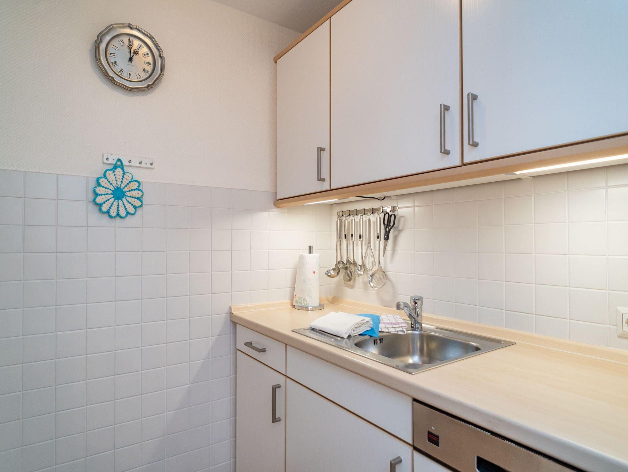 Die separate Küche hat einen Geschirrspüler, einen Herd mit Backofen und Cerankochfeld und einen Kühlschrank (3* Gefrierfach). Kaffeemaschine, Wasserkocher und Toaster gehören zur Grundausstattung.
